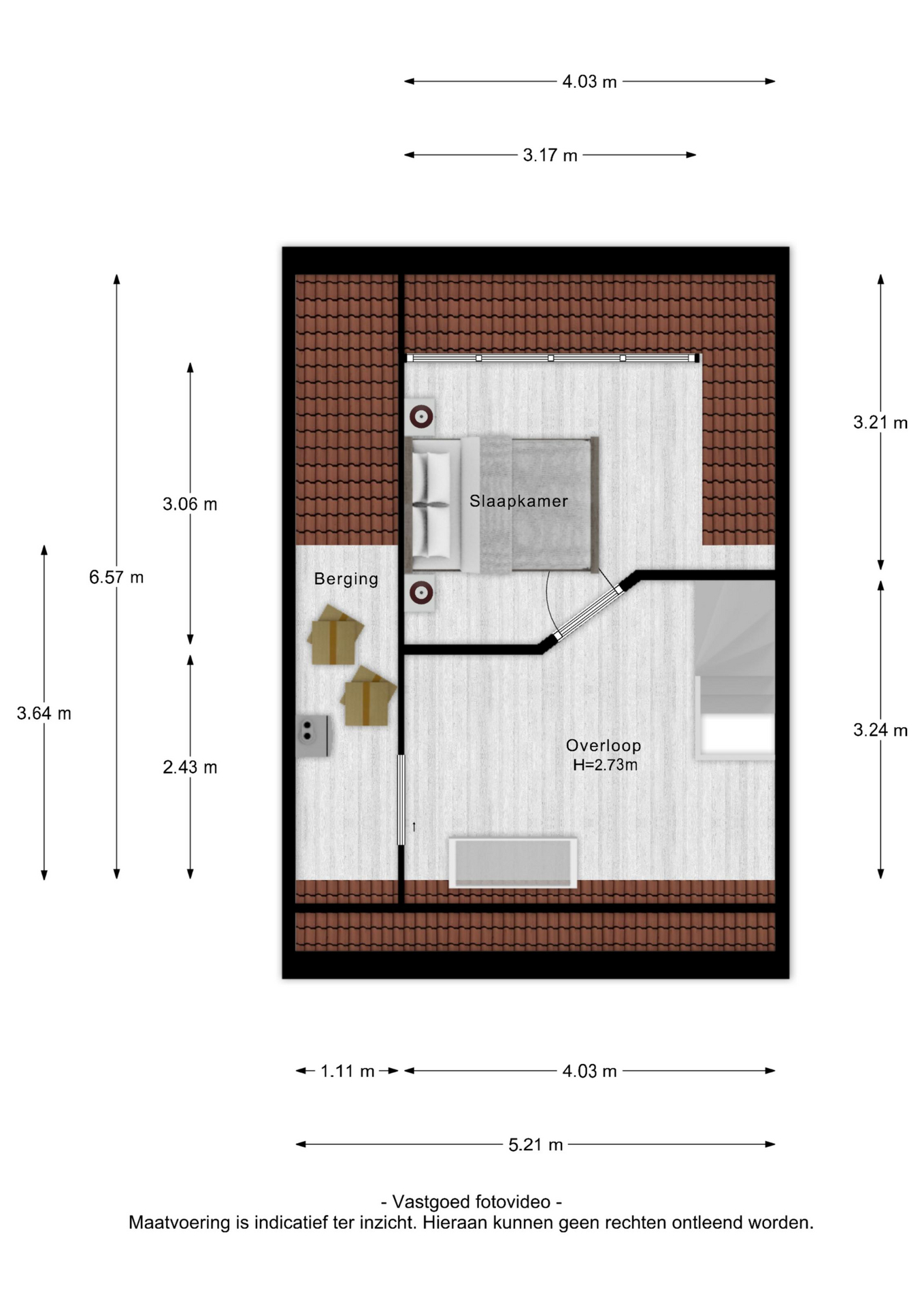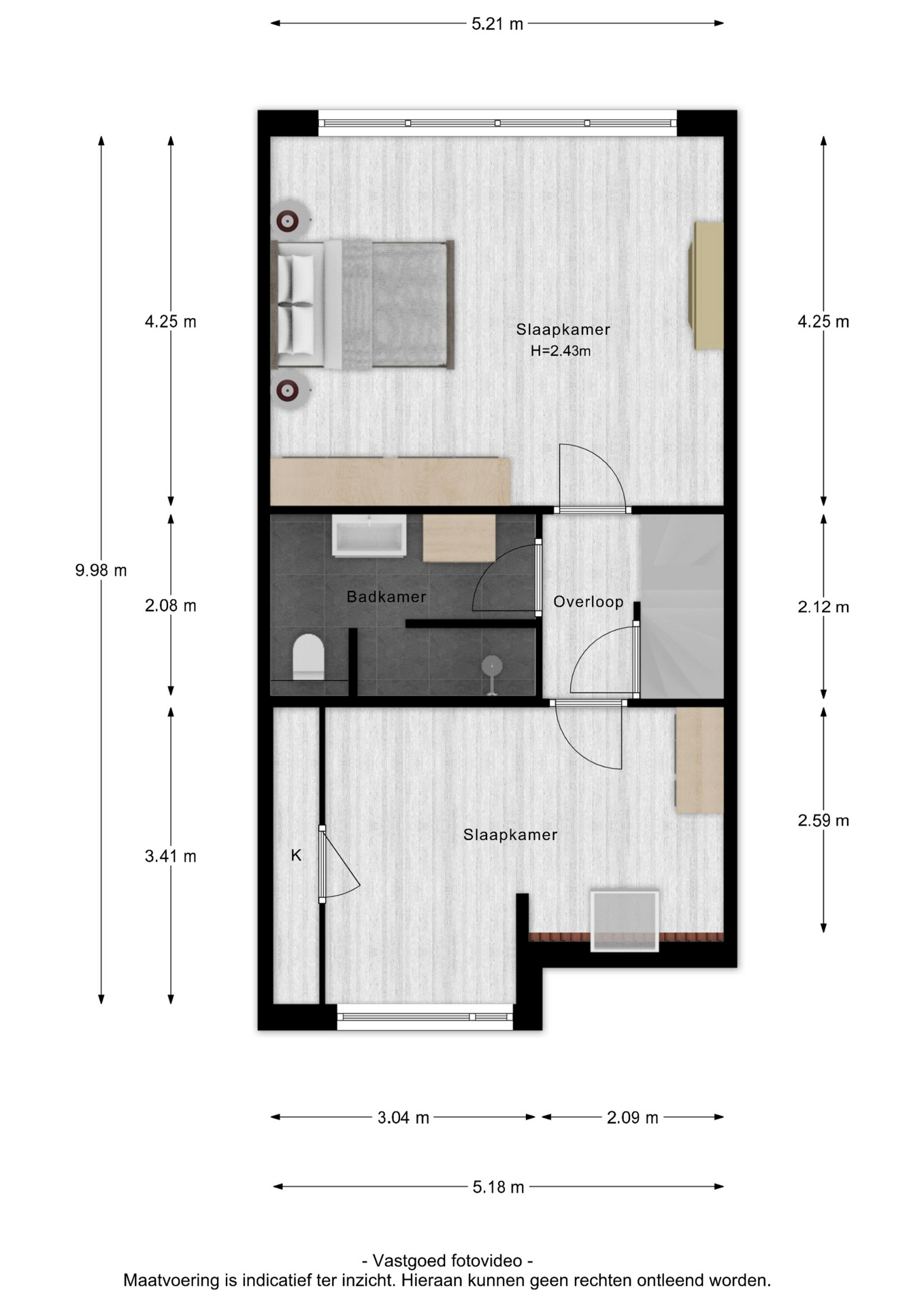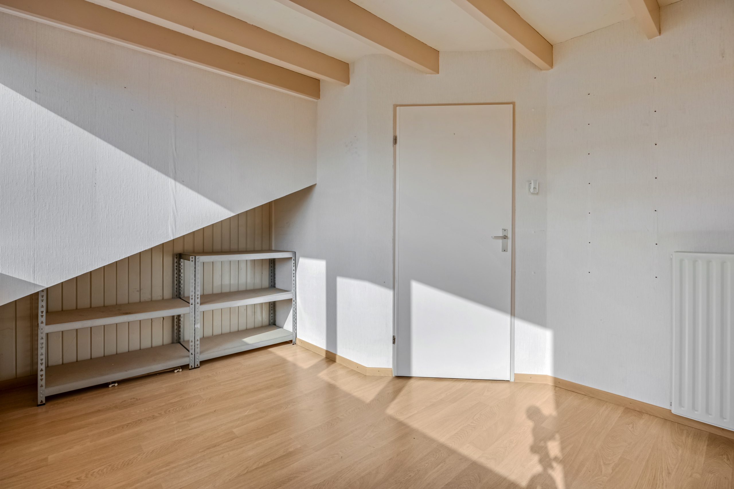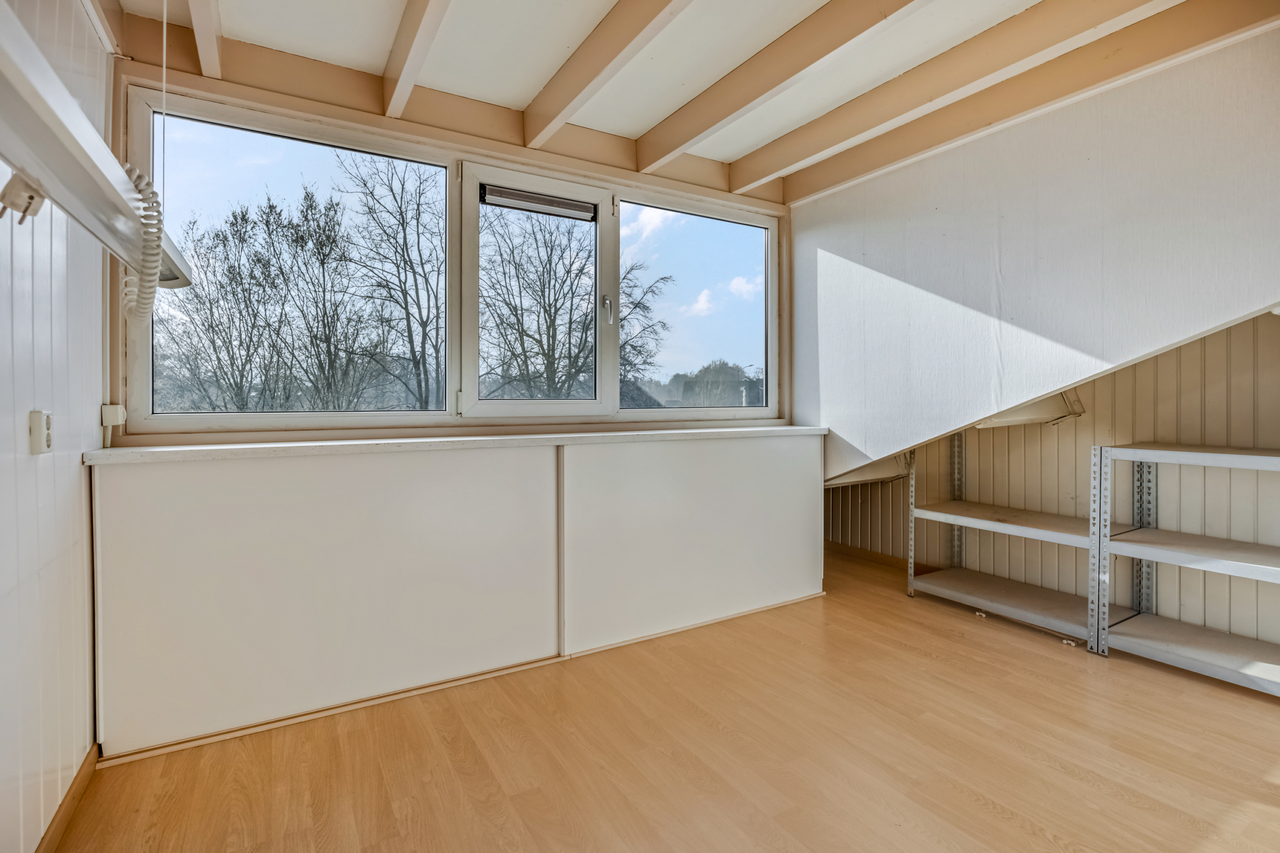 Via de vaste trap kom je op de voorzolder. Op de voorzolder vind je de aansluiting voor de wasmachine en de droger alsmede de CV-ketel. Daarnaast kan het droogrek hier ook gemakkelijk staan. Aan de voorzijde vind je de derde slaapkamer welke door de dakkapel een erg fijn formaat heeft.