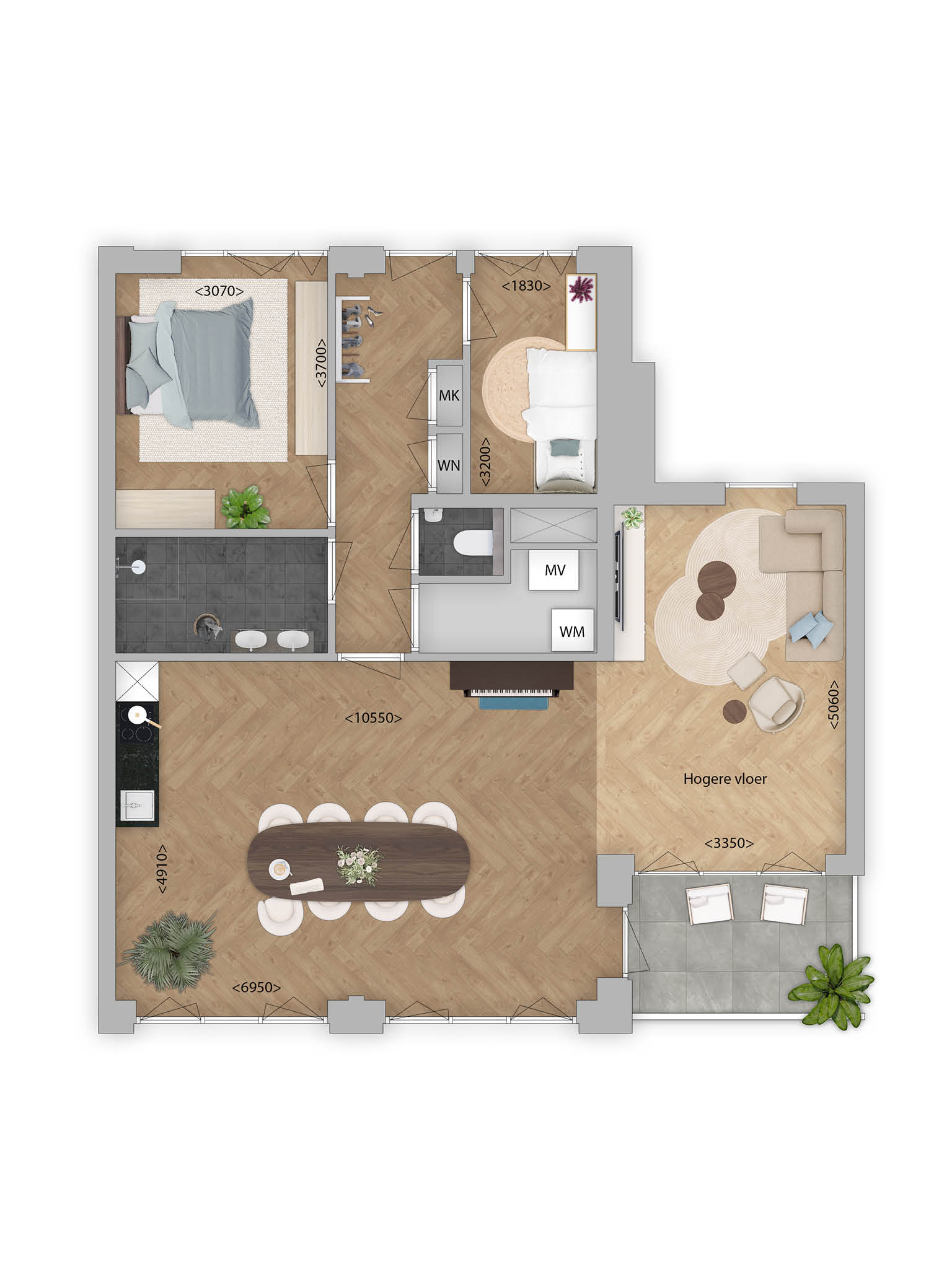 wasmachine en droger, badkamer voorzien van douche en 2 wastafels, de woonkamer en 2 slaapkamers. De open woonkamer is heerlijk ruim door de opkamer. Zo kun je de ruimte op meerdere manieren indelen. In de open woonkeuken start jij de dag met een koffie, kook jij heerlijke gerechten en geniet je van het uitzicht. Je stapt zo op je balkon namelijk. Een heerlijke plek om nieuwe herinneringen te maken!