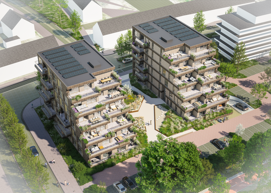 Wonen in Greunzicht betekent kiezen voor rust, ruimte en een toekomstbestendige leefomgeving. Greunzicht bestaat uit twee modern vormgegeven woongebouwen met in totaal 42 appartementen. De gebouwen zijn ondergronds met elkaar verbonden door een parkeergarage en worden omringd door groen. De gezamenlijke daktuin vormt het hart van het project: een plek om te ontspannen en elkaar te ontmoeten. De groene accenten aan de gevels versterken het natuurlijke karakter van het gebouw.