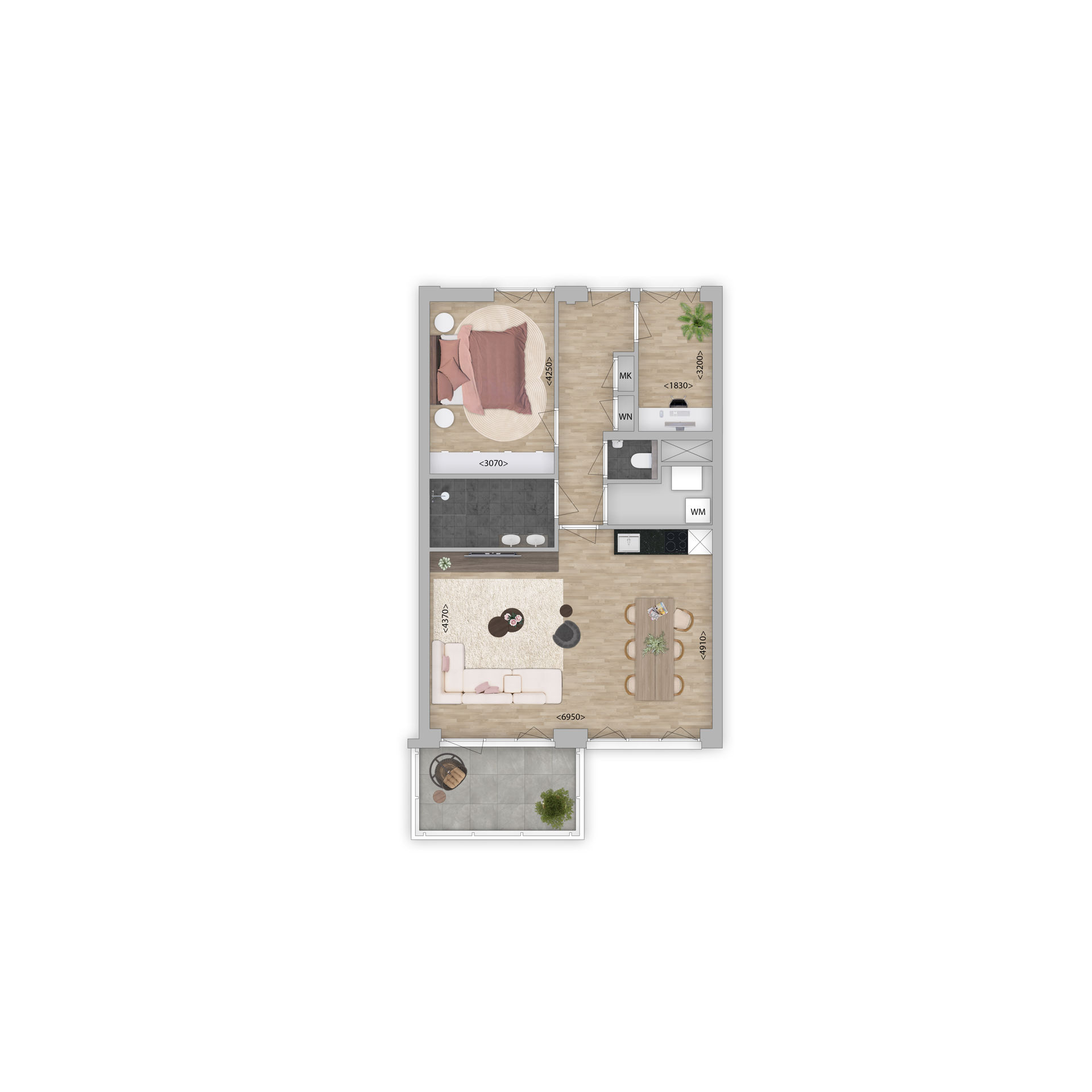 Dit 3-kamerappartement heeft een lichte living met open keuken en een deur naar het balkon. Eén gezellige ruimte dus, waar alles in verbinding staat. Verder zijn er 2 slaapkamers en een badkamer, voorzien van een dubbele wastafel en inloopdouche. Het toilet is apart en de wasmachine en droger kun je kwijt in de berging. Tot slot geniet je dankzij vloerverwarming het hele jaar door van een prettig binnenklimaat en stal je de (elektrische) fiets veilig in de berging, beneden in het gebouw.