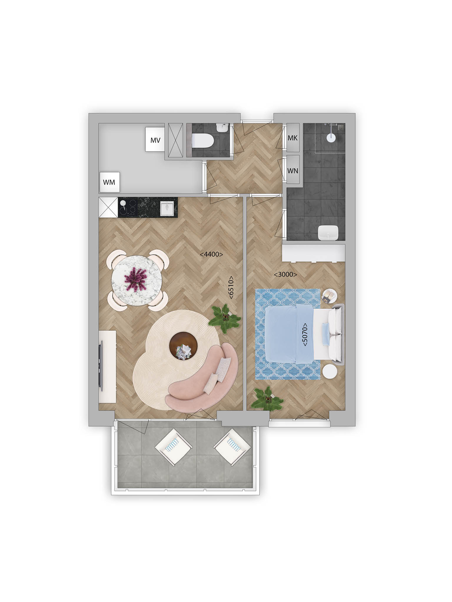 Kom binnen in dit appartement, waar de entreehal toegang biedt tot een lichte living met open keuken. Hier is genoeg ruimte voor een gezellige zithoek en eettafel, plus je gooit zo de deur naar je balkon open. Perfect voor een relaxmomentje of een borrel met vrienden. Verder biedt de woning 1 slaapkamer en een badkamer met wastafel en inloopdouche. Het toilet is apart en in de berging kun je mooi de wasmachine en droger kwijt. Tot slot geniet je dankzij vloerverwarming het hele jaar door van een prettig binnenklimaat en stal je de (elektrische) fiets veilig in de berging, beneden in het gebouw.