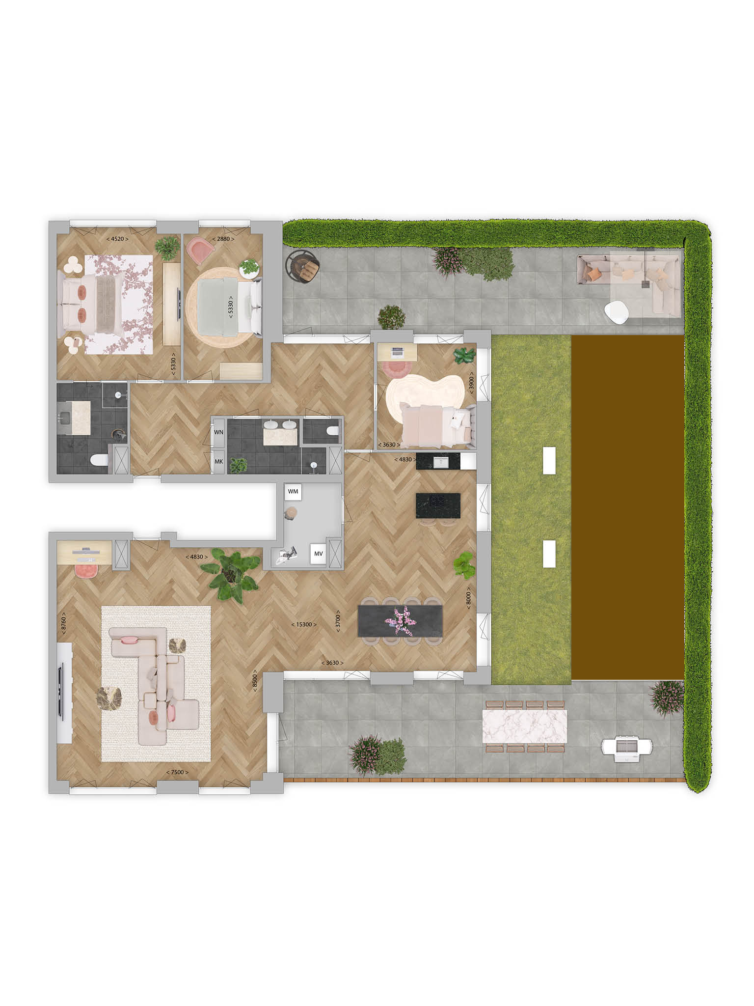 Wat een ruimte! Vanuit de entreehal bereik je alle ruimtes; het toilet, meterkast, de wasruimte met plek voor de wasmachine en droger, badkamer voorzien van douche en 2 wastafels, de woonkamer en 3 slaapkamers. Kers op de taart: de grote master bedroom heeft een 2e badkamer ensuite met douche, toilet en wastafel. De open leefruimte is gigantisch met toegang tot een groot dakterras dat meerdere ruimtes omringd. Hier kan je zonnen, dineren en borrelen met vrienden tot in de late uurtjes. Hier wil je nooit meer weg!
