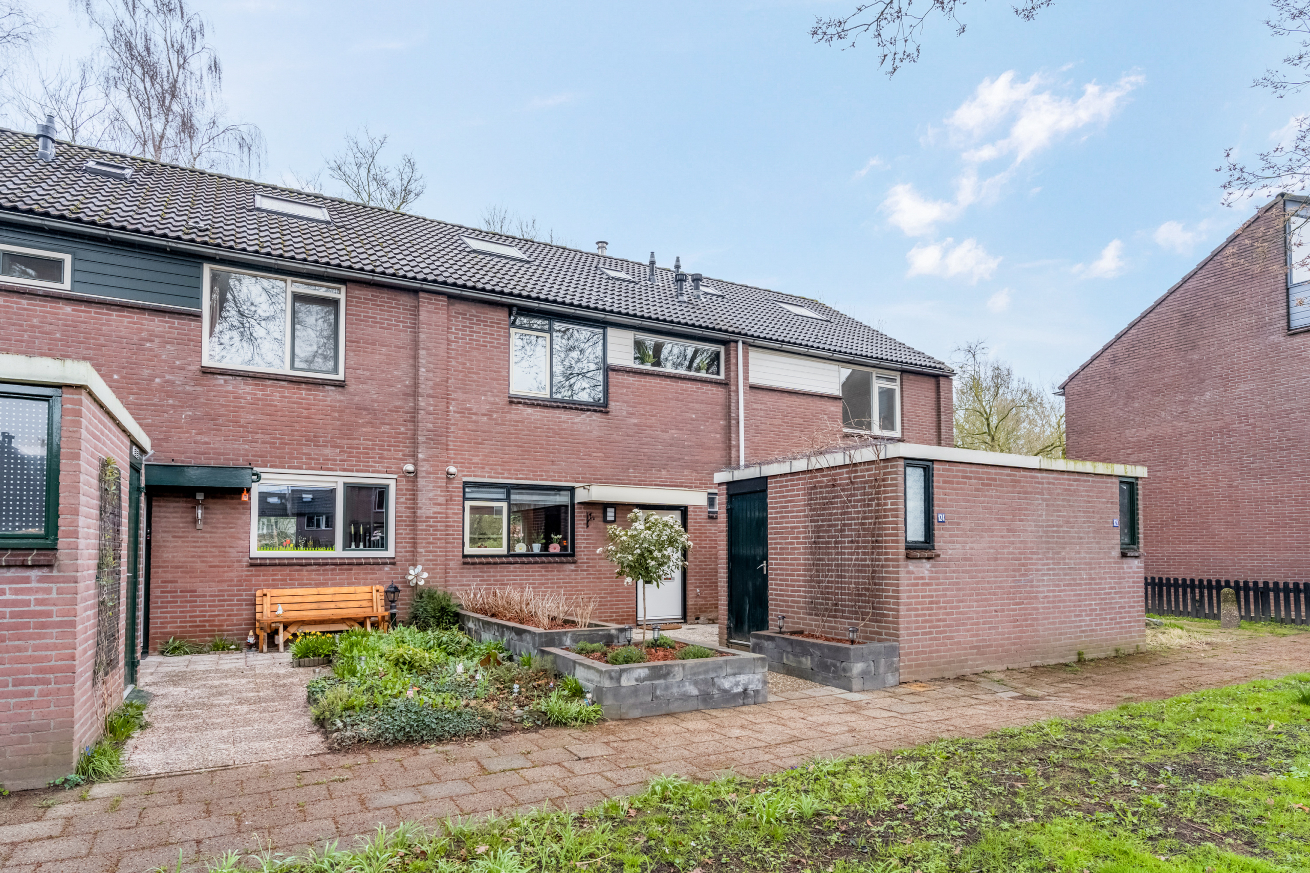 In de voortuin bevindt zich een praktische berging, ideaal voor het stallen van fietsen of het opbergen van tuinspullen. Ook is hier ruimte om de kliko’s netjes uit het zicht te plaatsen.