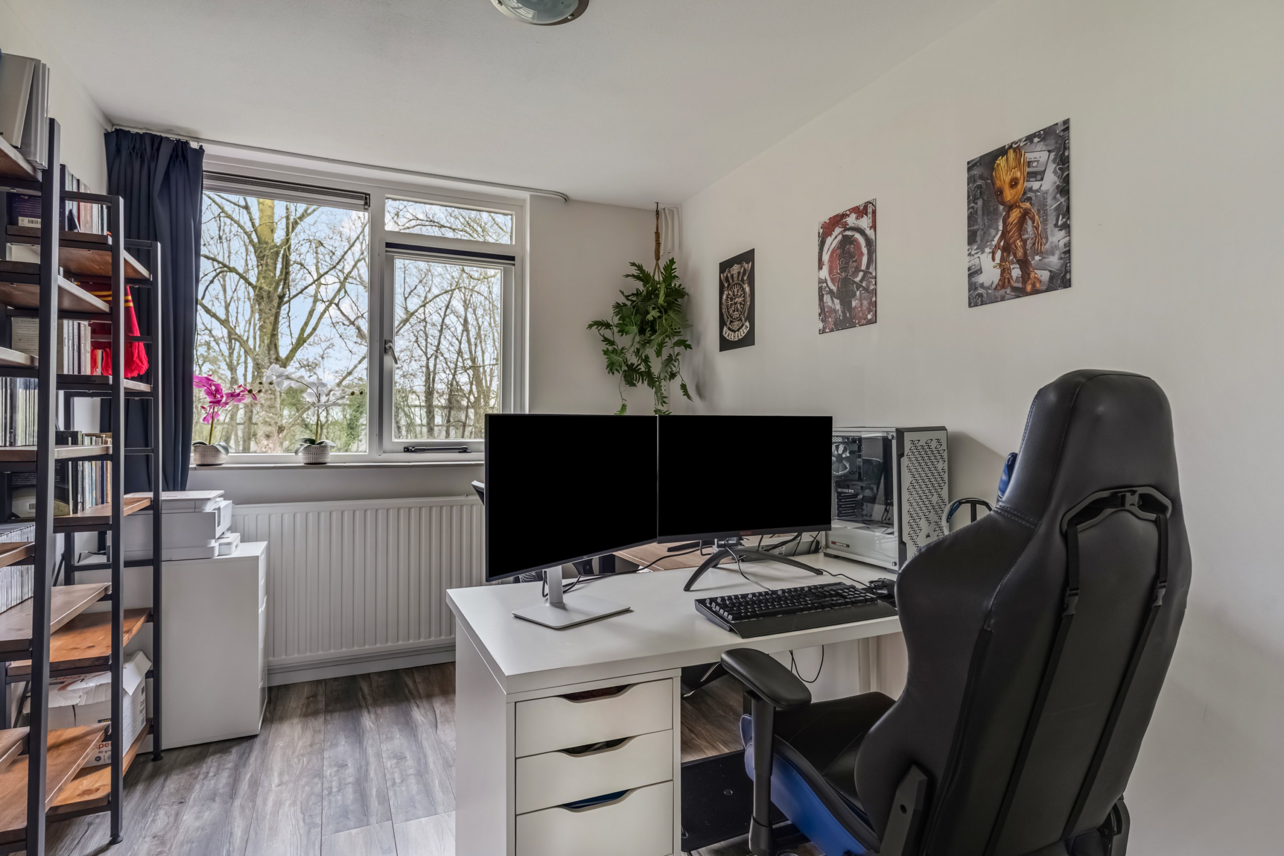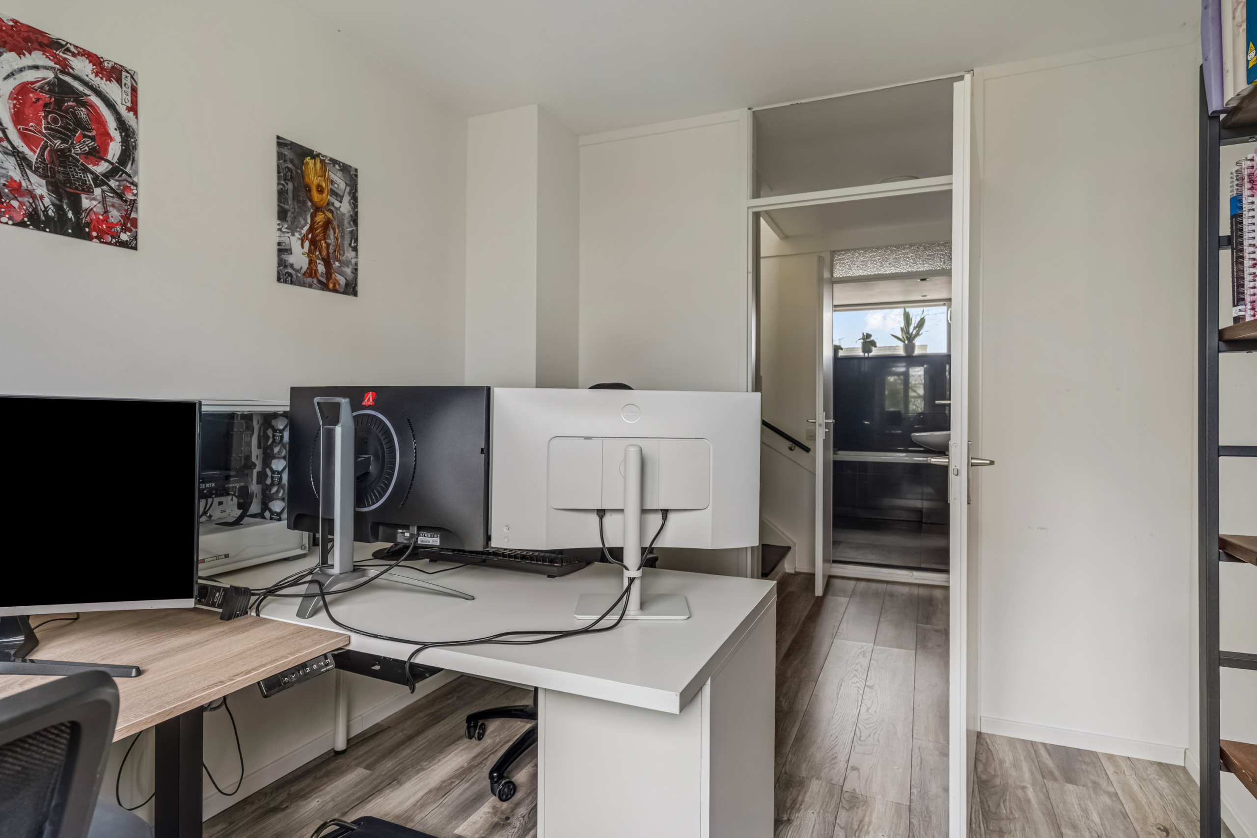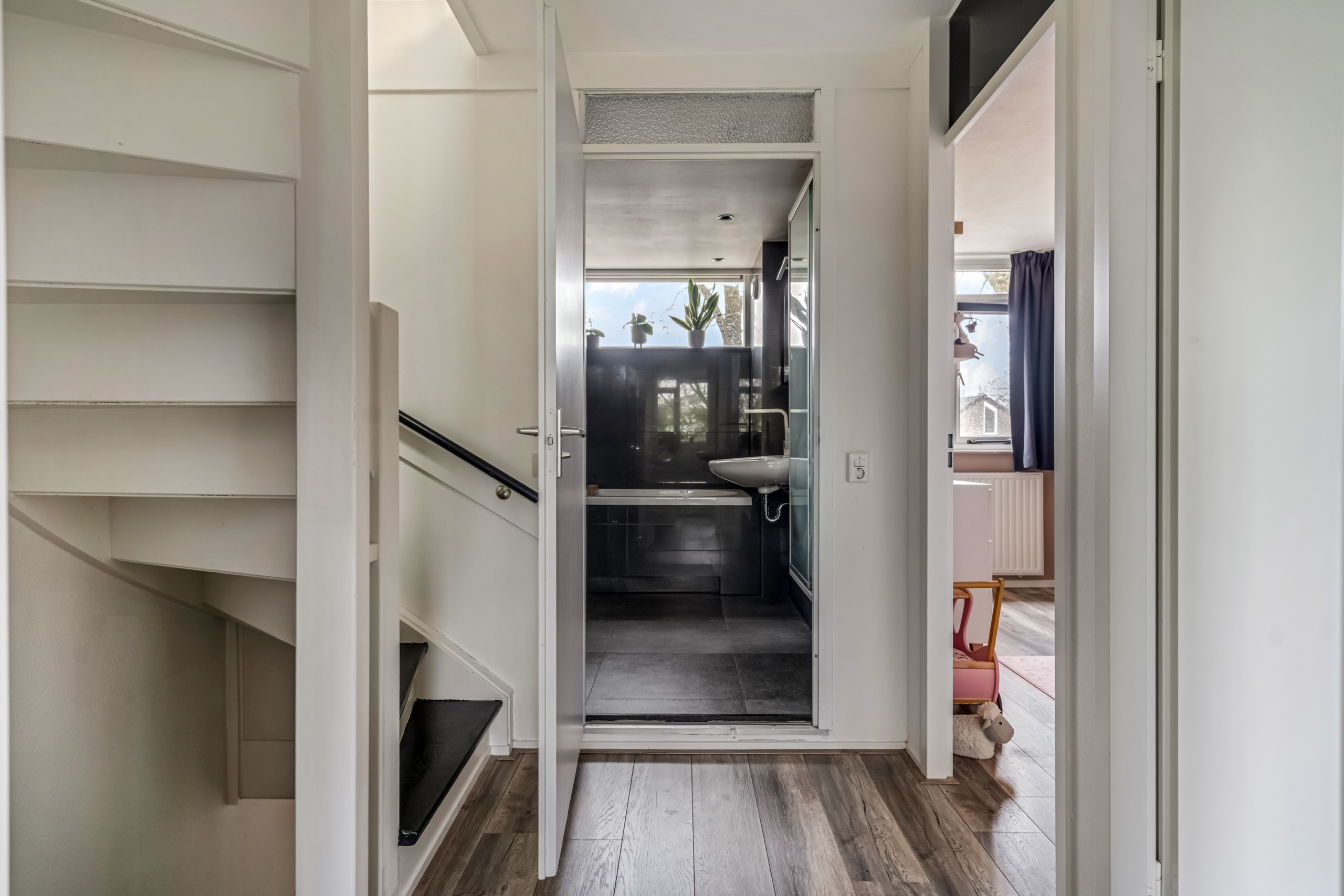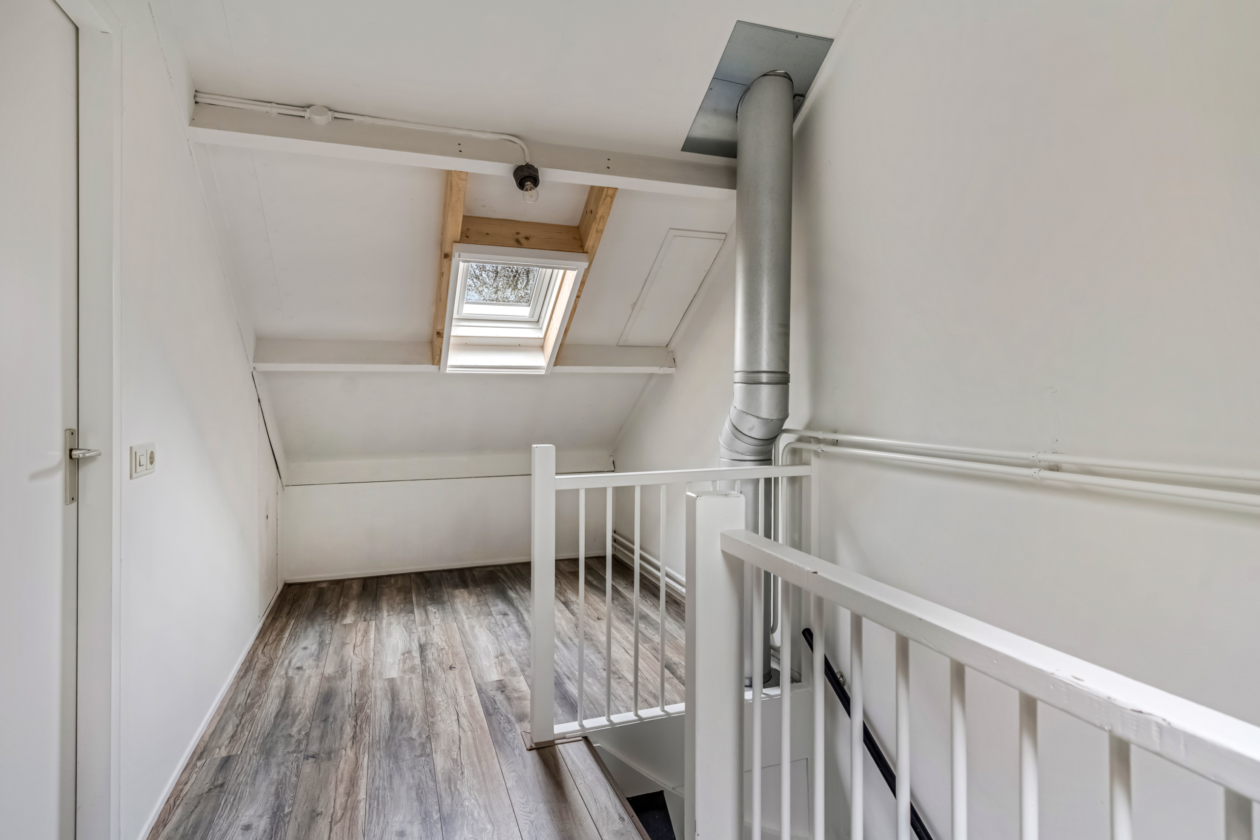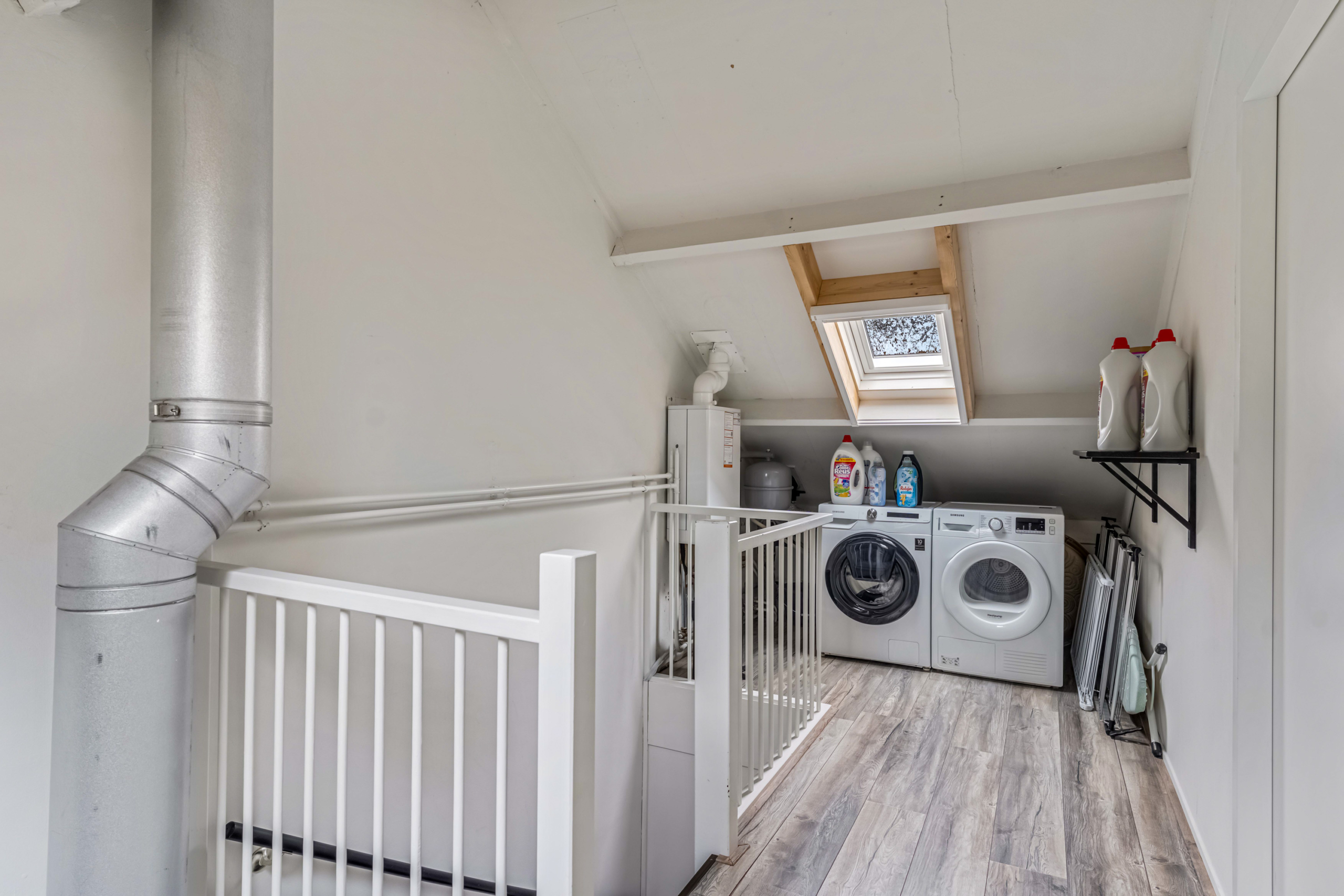 Via de vaste trap bereik je de tweede verdieping. Op de overloop vind je de opstelling van de CV-ketel en de aansluitingen voor de wasmachine en droger. Daarnaast bevindt zich op deze verdieping de vierde slaapkamer. Dankzij de praktische indeling is deze ruimte voor verschillende doeleinden geschikt, zoals een extra slaapkamer, een hobbyruimte of een fijne logeerkamer.