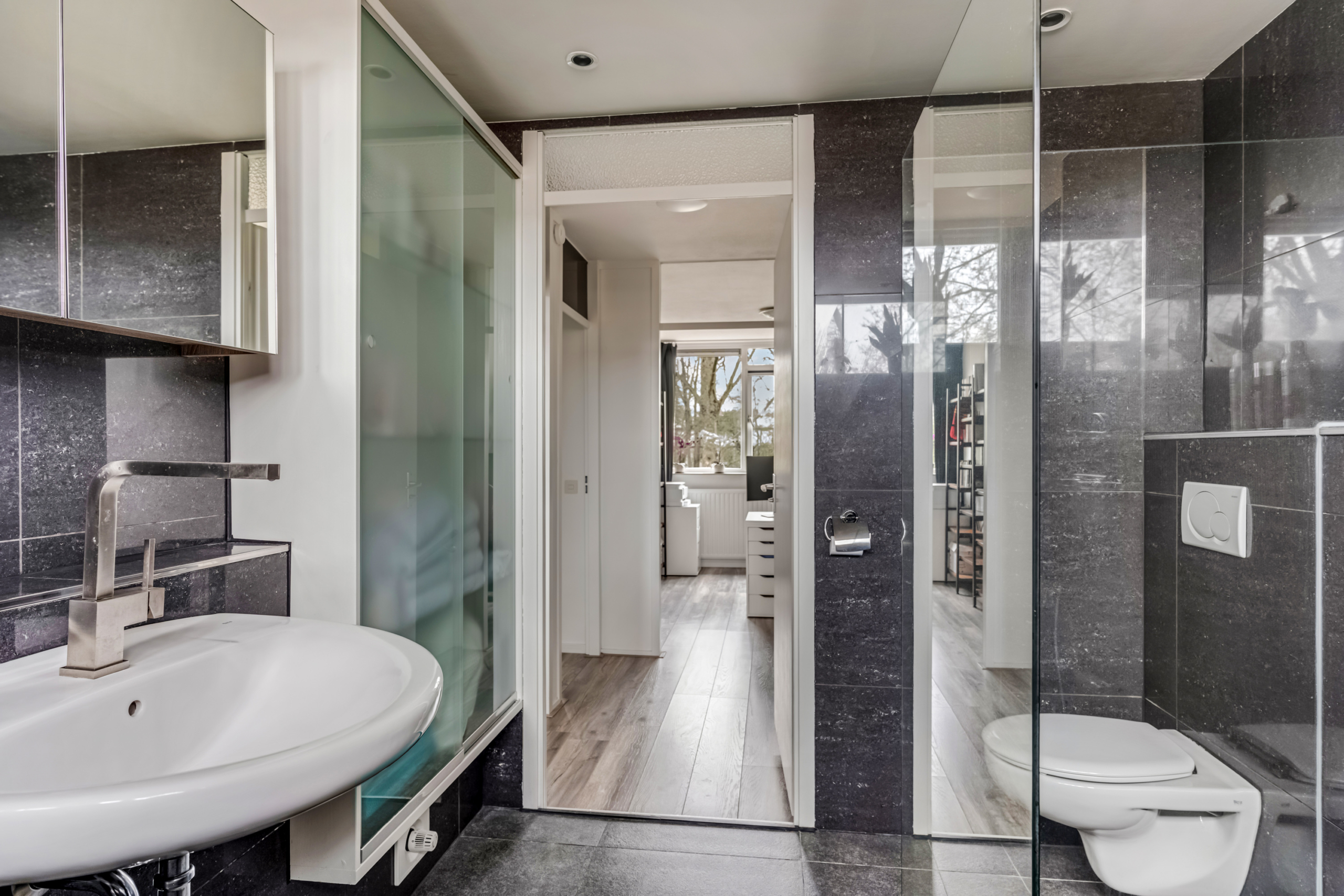 - Badkamer voorzieningen Ligbad, toilet, wastafel, inloopdouche, vloerverwarming