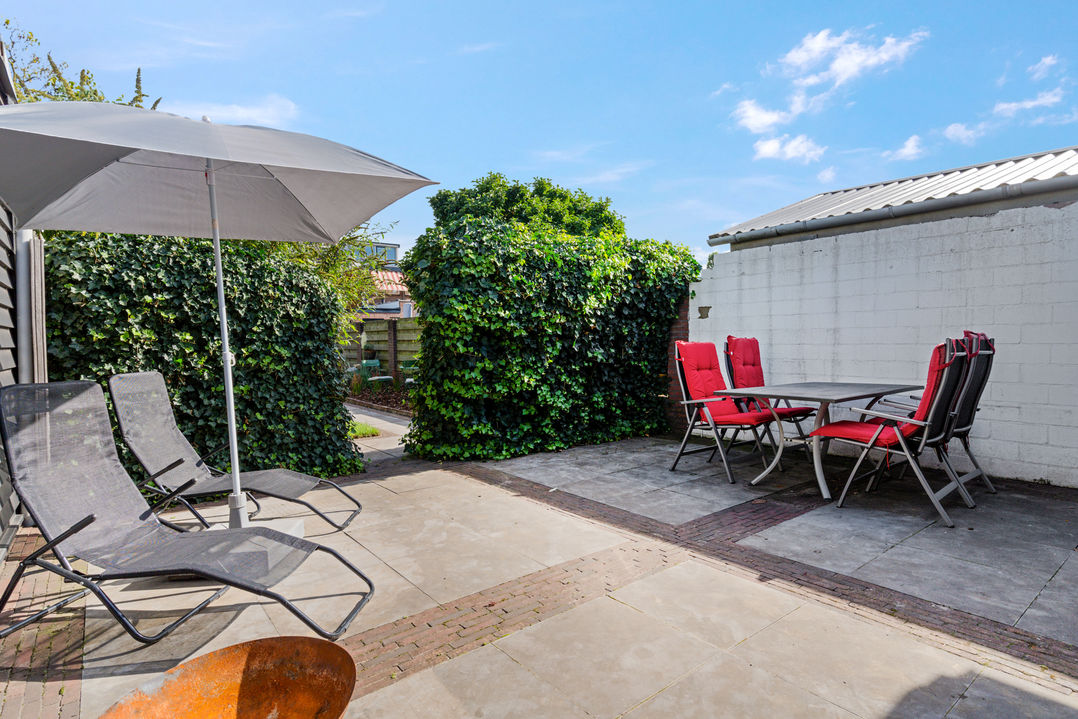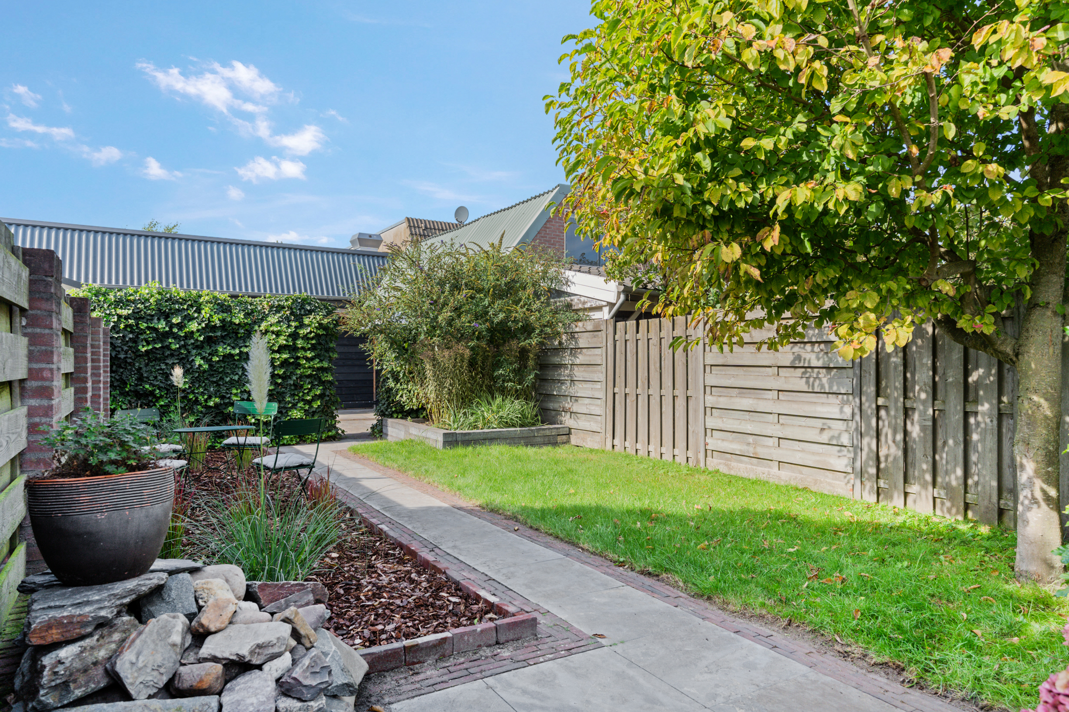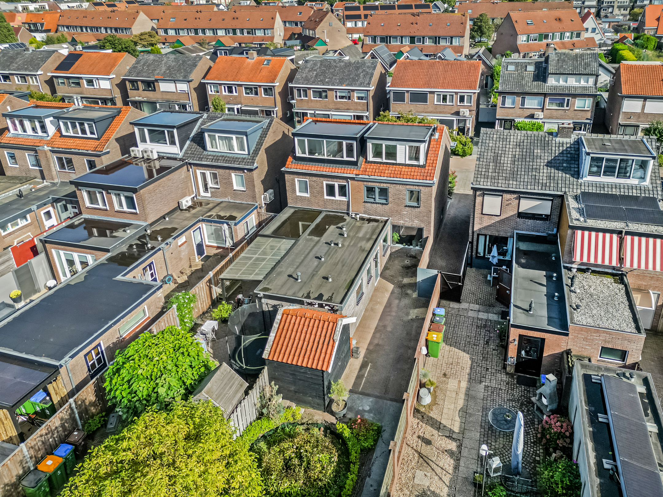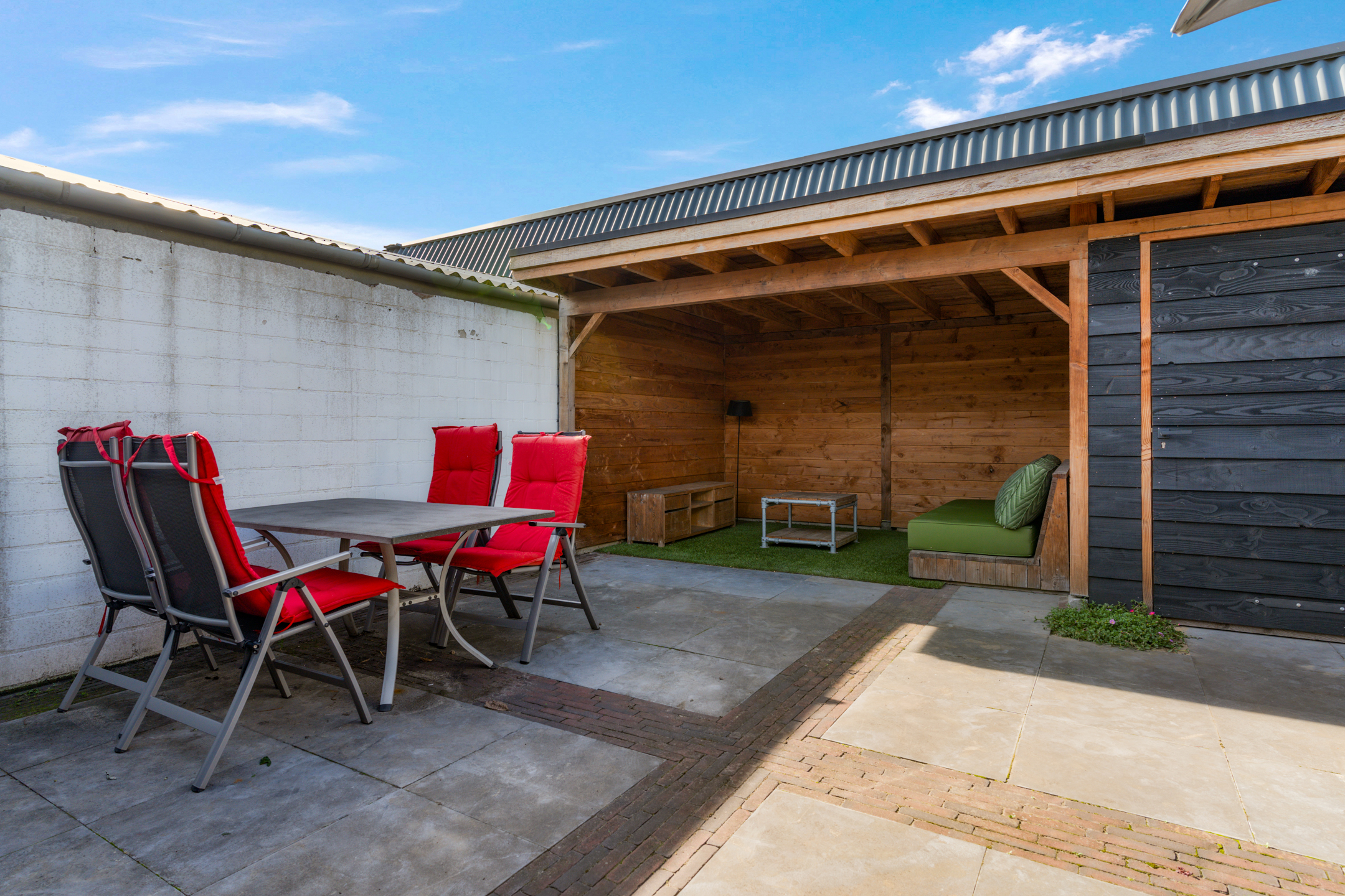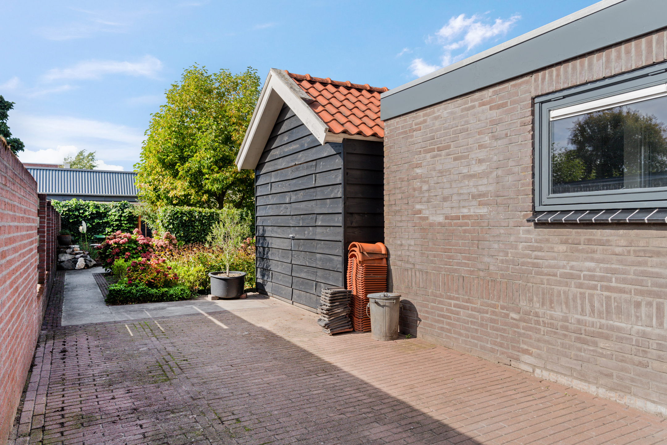 De achtertuin voelt als een verlengstuk van het huis. De houten veranda nodigt uit voor lange avonden buiten, zelfs als het weer niet meewerkt. Achterin staat een schuur, handig voor fietsen, tuingereedschap of je klusmateriaal. Dat is niet de enige berging, want direct achter de woning vind je nog een berging voor extra opslagruimte. De tuin is bovendien goed bereikbaar via de zijkant en vanuit de keuken. De tuin is gelegen op het noordwesten en biedt volop privacy – een plek om te ontspannen, te tuinieren of voor de kinderen om te spelen.