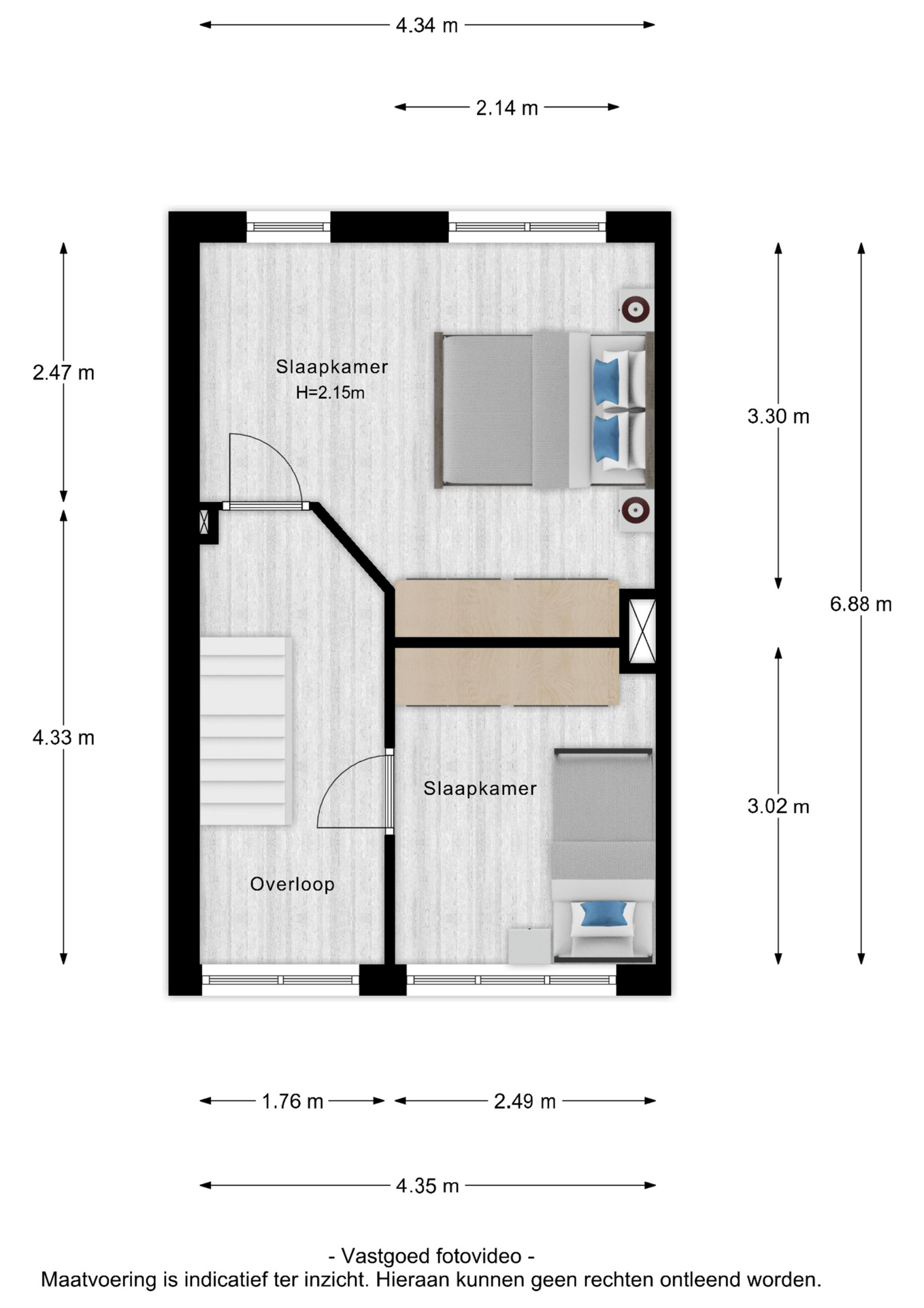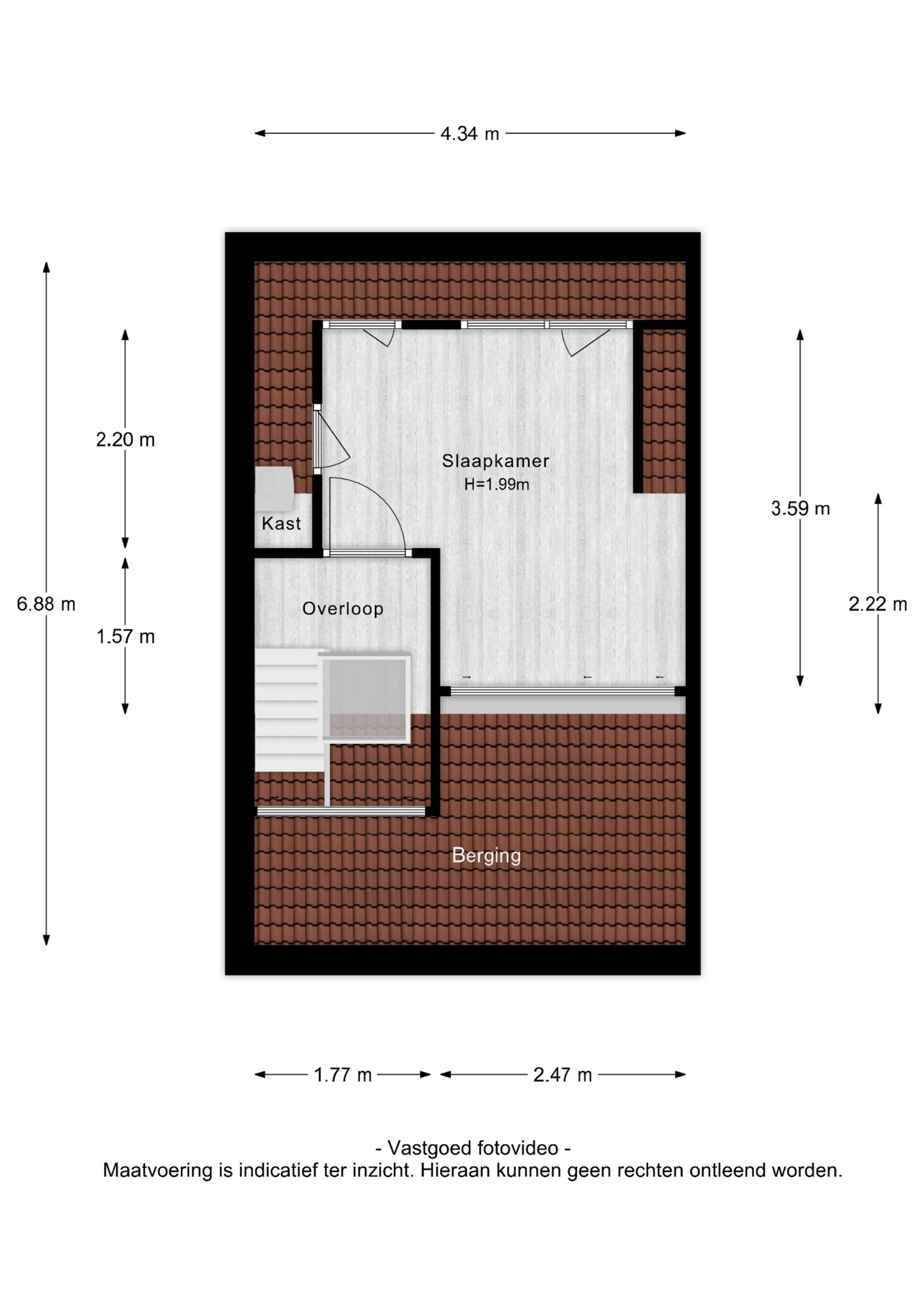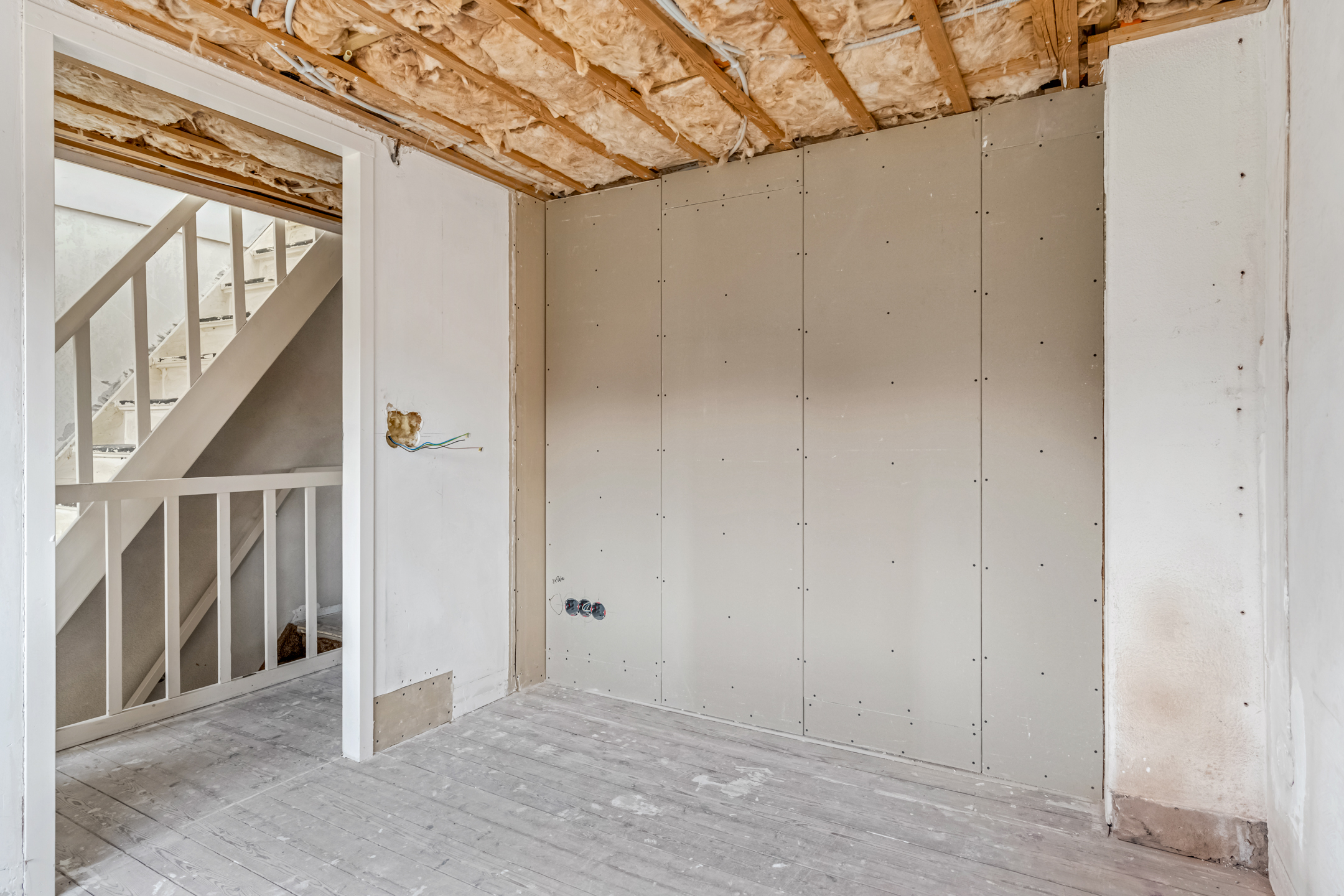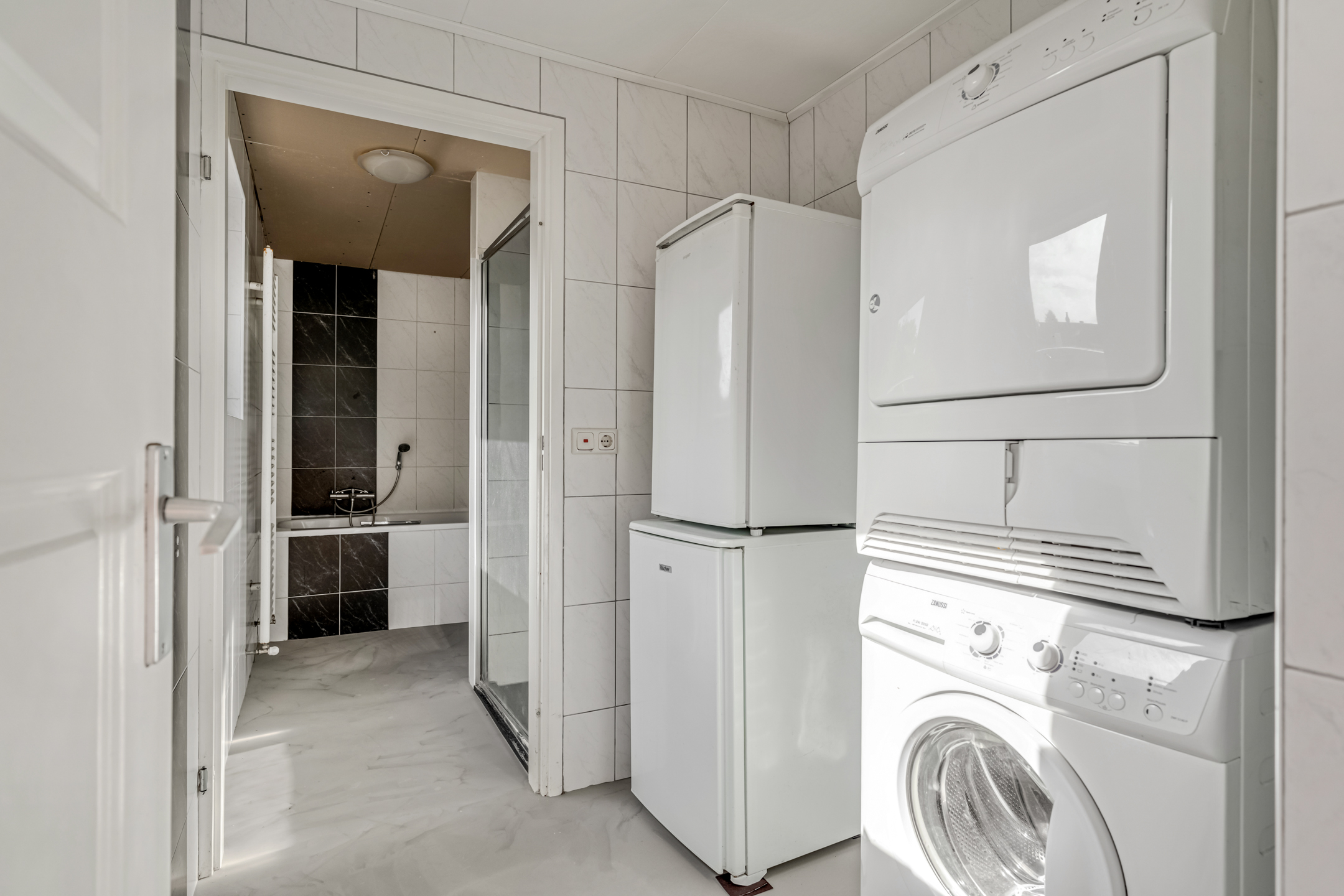De vaste trap naar de tweede verdieping brengt je bij nóg meer ruimte. Vanaf de overloop kom je in de slaapkamer terecht. In deze kamer vind je knieschotten en een deur naar de cv-ketel die uit het zicht is opgesteld. Deze kamer is ook te gebruiken als bergruimte of werkplek.