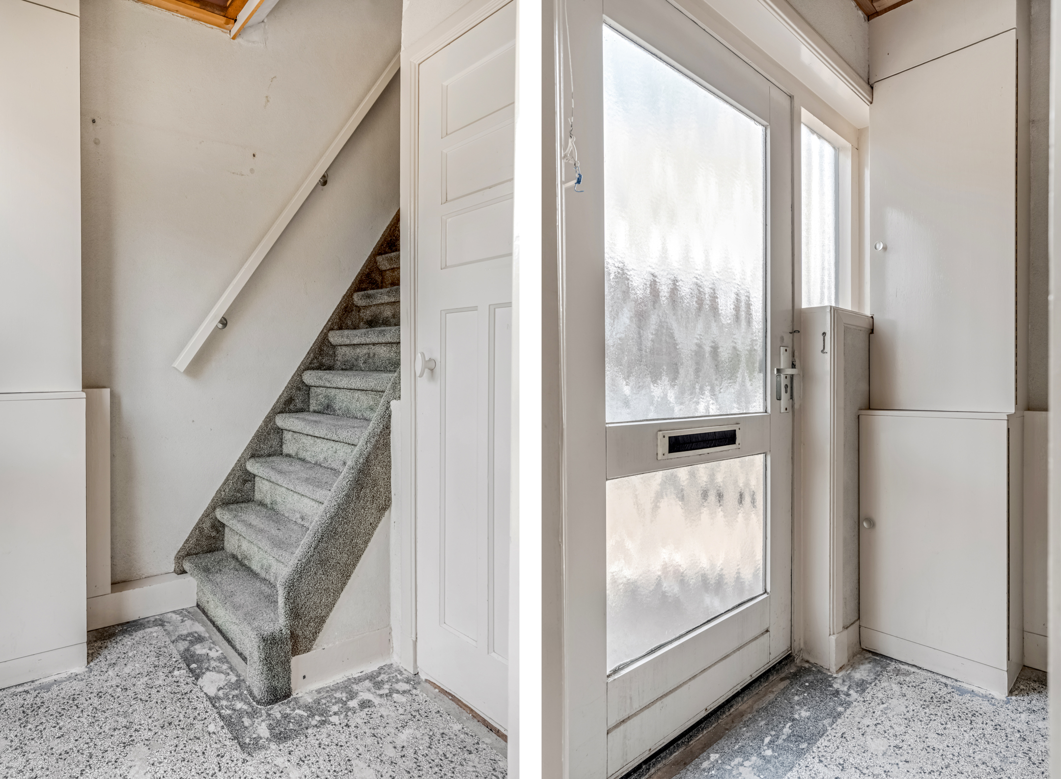 Je stapt binnen via de lichte hal, waar ruimte is voor een garderobe en waar je meteen de sfeer van de jaren ’30 proeft. In de hal vind je de meterkast, de vaste trapopgang naar de eerste verdieping, een trapkast en de toegangsdeur naar de living toe. Als je de living binnen stapt vallen gelijk de authentieke details op. Aan de voorzijde van de woning vind je de eethoek, hier kan je genieten van je maaltijden met vrienden of familie. De grote ramen zorgen voor veel licht en een prettige sfeer, zelfs op een grijze dag. De keuken is praktisch ingedeeld en voorzien van een oven, vaatwasser en voldoende werkruimte. Perfect om alvast in te koken terwijl je nadenkt over de keuken van je dromen. De badkamer is een fijne verrassing. De badkamer is compleet met ligbad, ideaal voor een moment van ontspanning na een dag klussen. Ook vind je in de badkamer nog een wastafelmeubel en ruime douche.