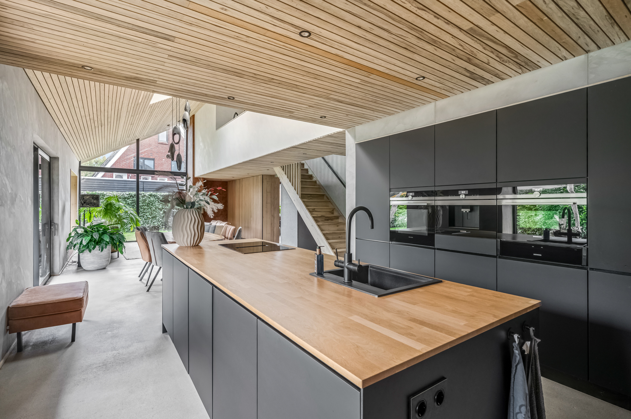 De keuken sluit direct aan op de living en is van alle luxe gemakken voorzien. Zo beschikt deze over een inductiekookplaat, oven, kokendwaterkraan, vaatwasser, vrieskast, koelkast, stoomoven, warmhoudlade en een ingebouwd koffiezetapparaat. Alle apparatuur is van Siemens Studioline. Kortom: voor wie van koken en bakken houdt, is dit de ideale plek om zich uit te leven met professionele apparatuur. Een gezellig detail is de zitvensterbank (Window Seat), perfect om tijdens het koken bij te praten met familie of de gasten.