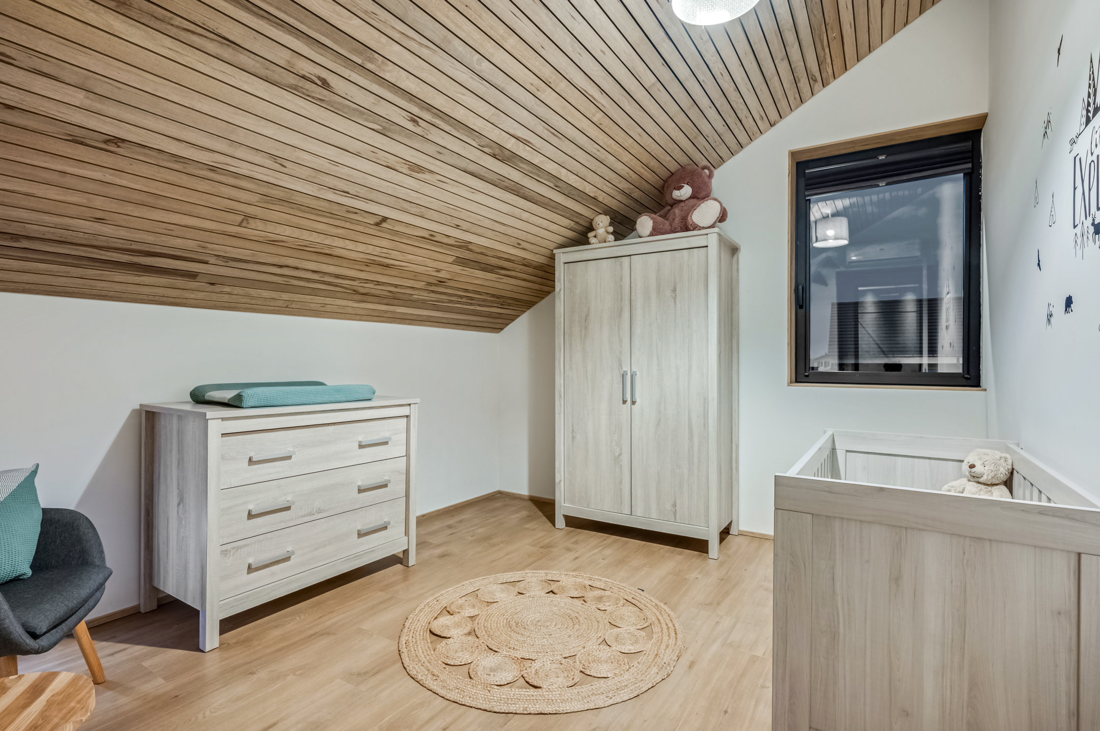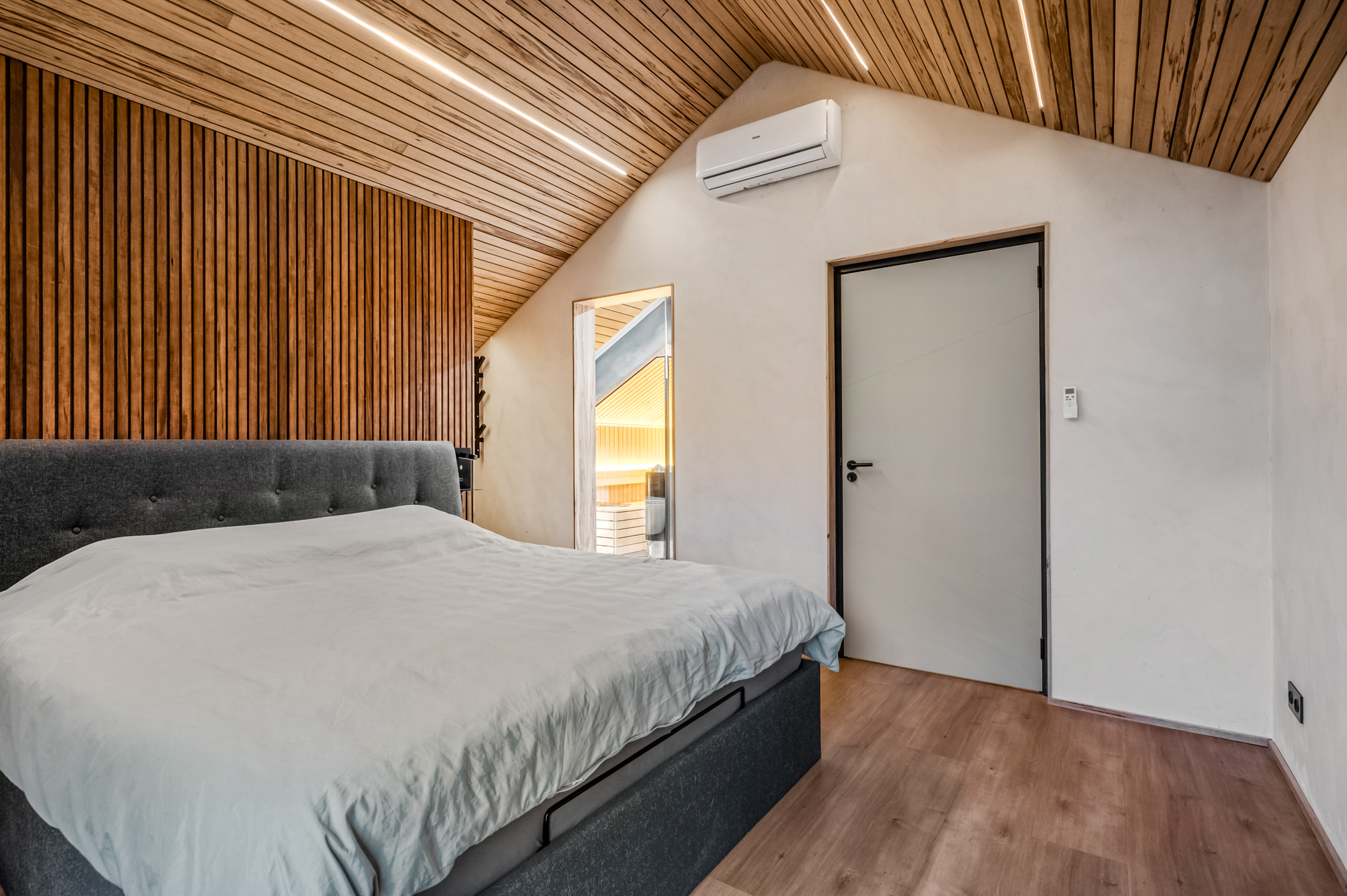 Via de vaste trap bereik je de eerste verdieping, waar de overloop toegang biedt tot drie ruime slaapkamers en twee badkamers. De masterbedroom is zeer ruim en beschikt over een inloopkast en een deur naar de badkamer. Deze exclusieve wellness-badkamer is uitgerust met een dubbele wastafel, een tweede toilet, een sauna, een dubbele regendouche met een Sunshower van het merk Xenz en een designradiator.