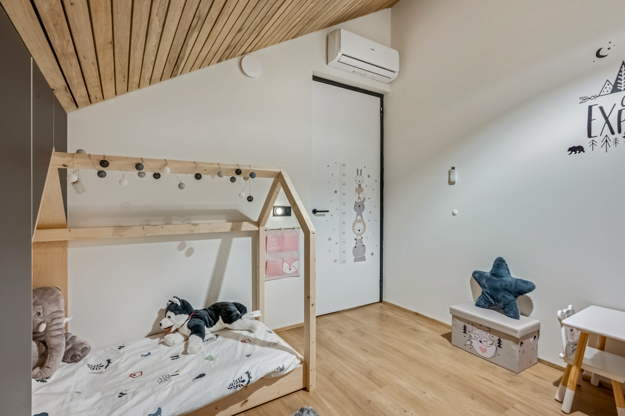 Aan de andere kant van de overloop liggen de andere twee slaapkamers. De andere twee slaapkamers zijn eveneens ruim en licht, waarvan één met extra bergruimte. De tweede badkamer is stijlvol en compleet en geheel in de stijl van de eerste badkamer afgewerkt, voorzien van een inloopdouche met regendouche, waskommeubel, derde toilet en aansluitingen voor wasmachine en droger. Alle slaapkamers zijn voorzien van airconditioning voor een optimaal slaapklimaat.