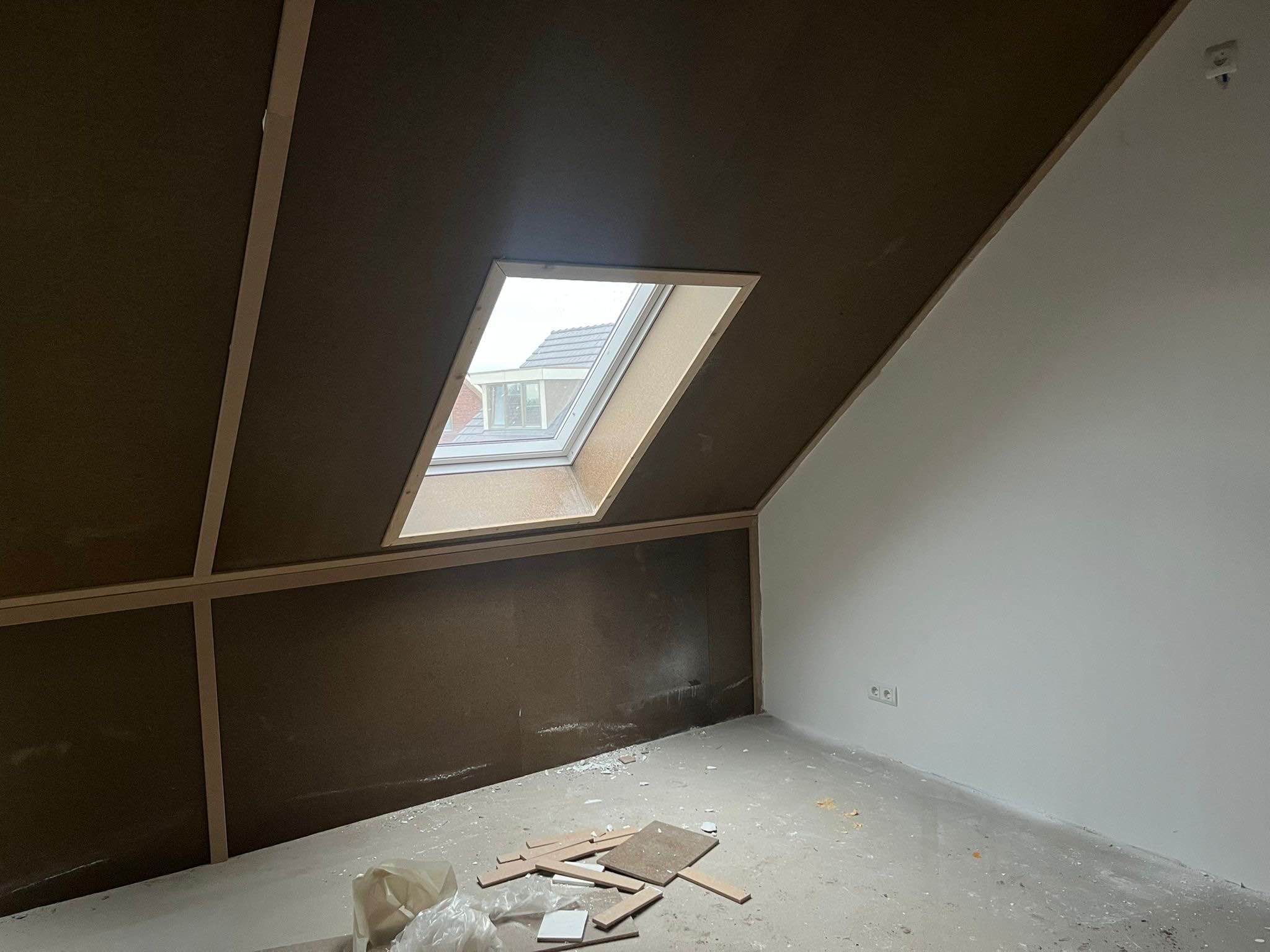 – Volledig voorzien van renovlies behang en witte zolderplaten (Easy-Stuc);
