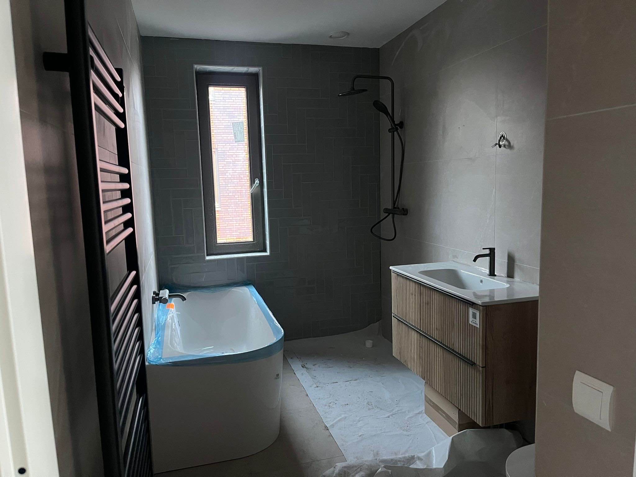 - Badkamer voorzieningen Ligbad, toilet, wastafel, wastafelmeubel, inloopdouche