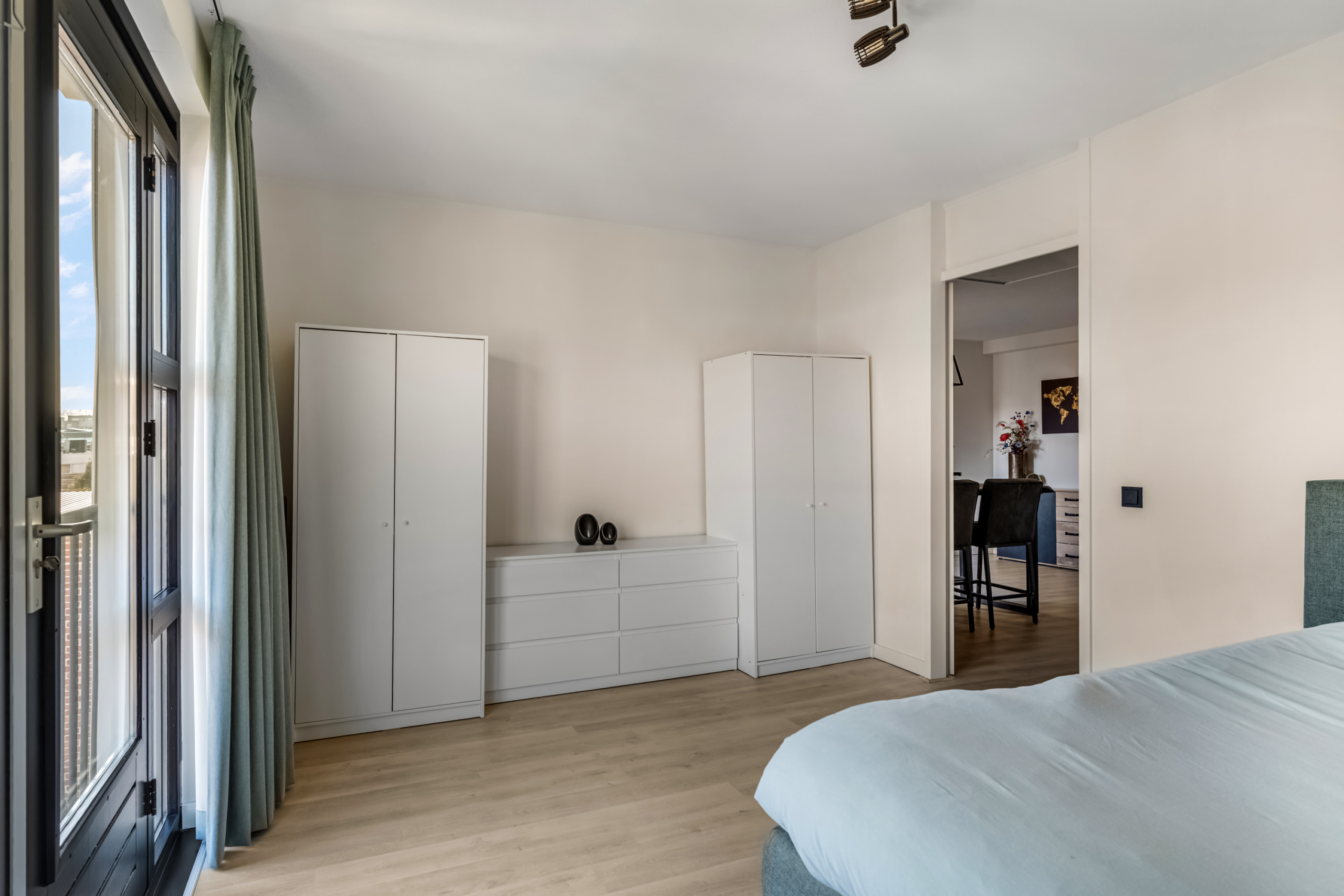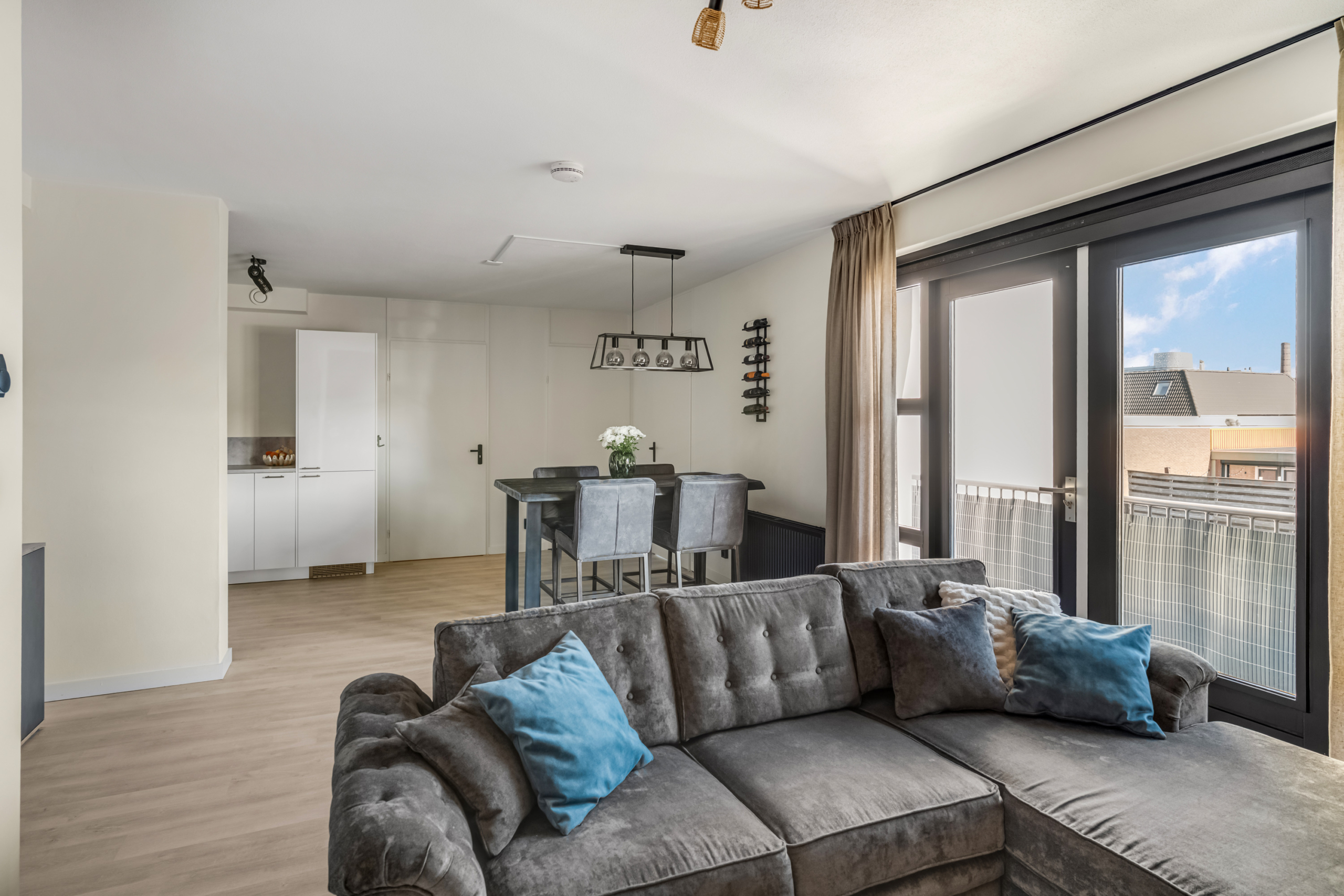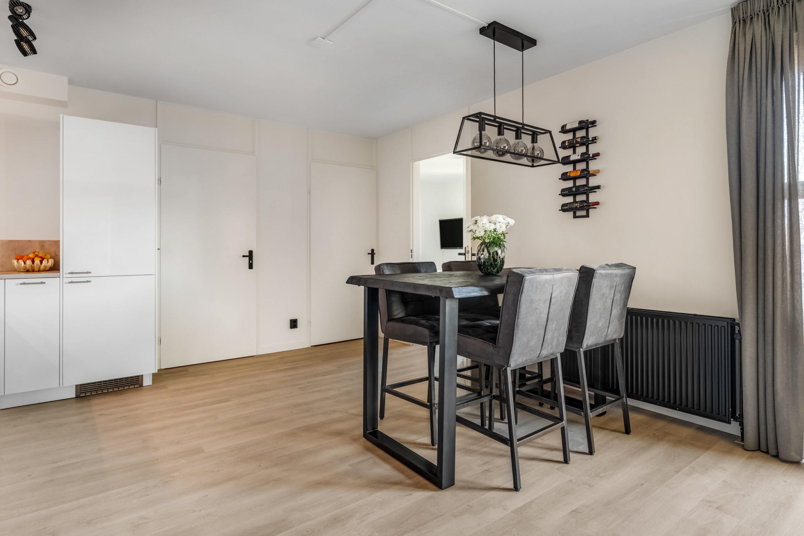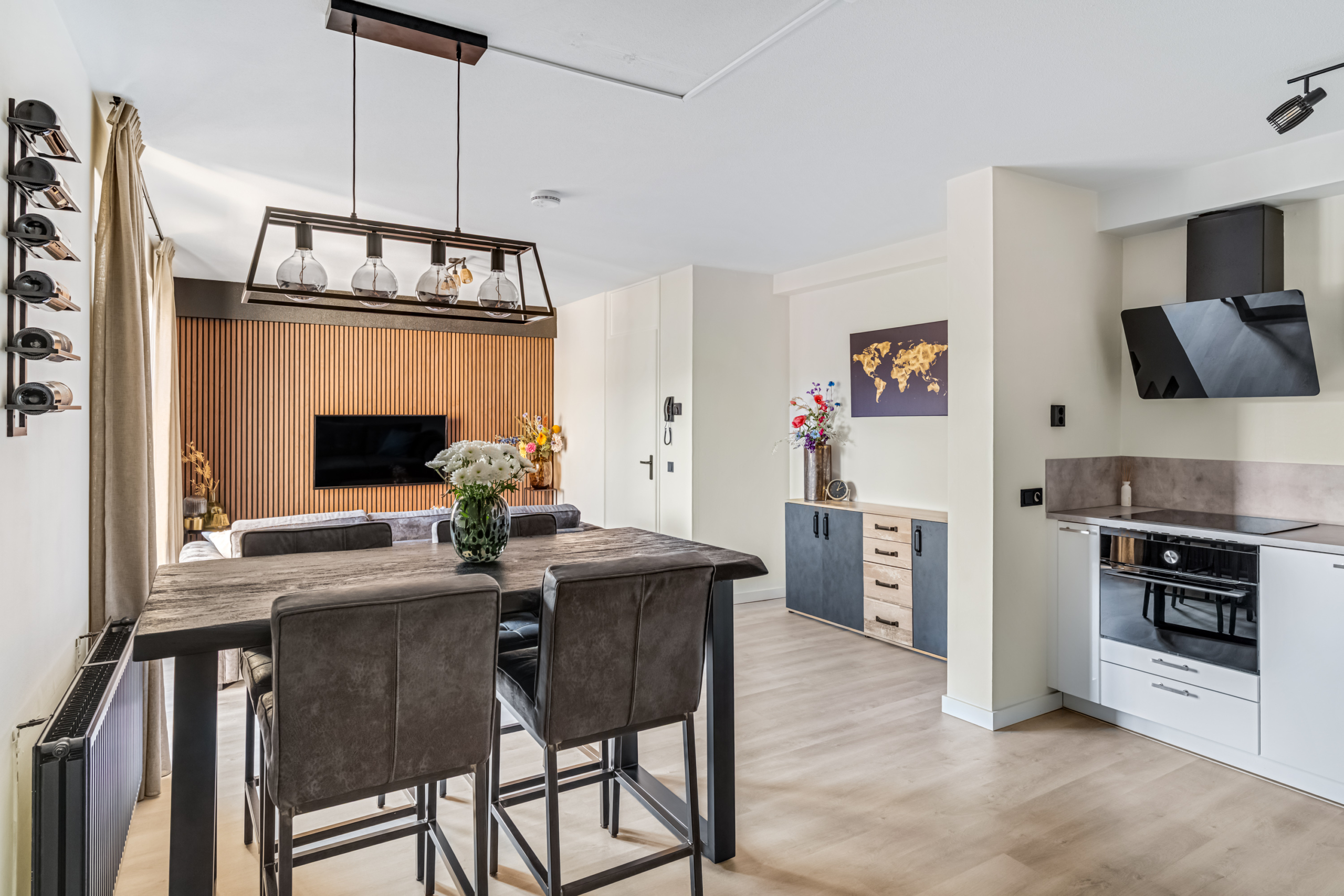 De lichte woonkamer vormt het hart van de woning. Dankzij de grote raampartijen geniet je hier van een prettige lichtinval en een fijne sfeer. De woonkamer staat in directe verbinding met de luxe open keuken, wat zorgt voor een ruimtelijk en modern geheel. De keuken is uitgevoerd in een eigentijdse stijl en voorzien van diverse inbouwapparatuur, waardoor koken hier een waar plezier wordt. Er is voldoende ruimte voor het plaatsen van een gezellige zithoek én een eethoek, perfect voor zowel ontspannen avonden als het ontvangen van gasten. Vanuit de woonkamer heb je direct toegang tot het balkon welke is gelegen op het zuidoosten, waardoor je hier heerlijk kunt genieten van de ochtend- en middagzon. Een fijne plek om de dag te beginnen met een kop koffie of om na het werk nog even buiten te ontspannen.
