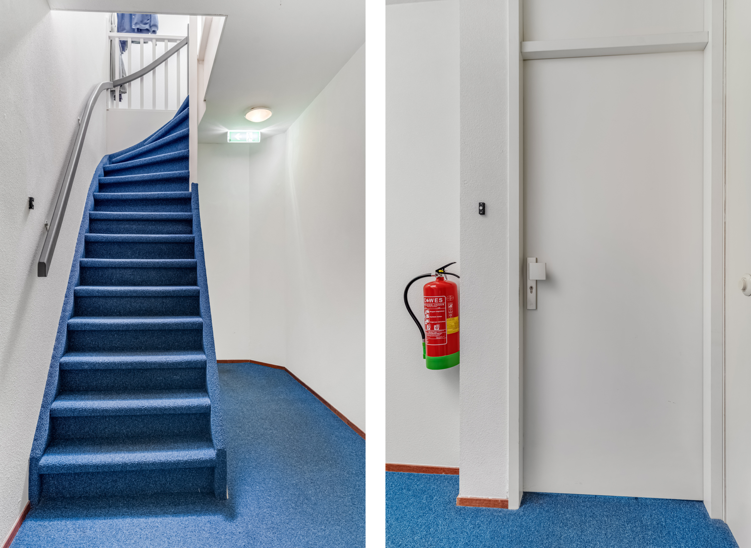 Het appartementencomplex beschikt over een verzorgde en afgesloten entree met intercominstallatie, wat zorgt voor extra veiligheid en privacy. Via de nette centrale hal en het trappenhuis bereik je de verschillende verdiepingen van het appartementencomplex.