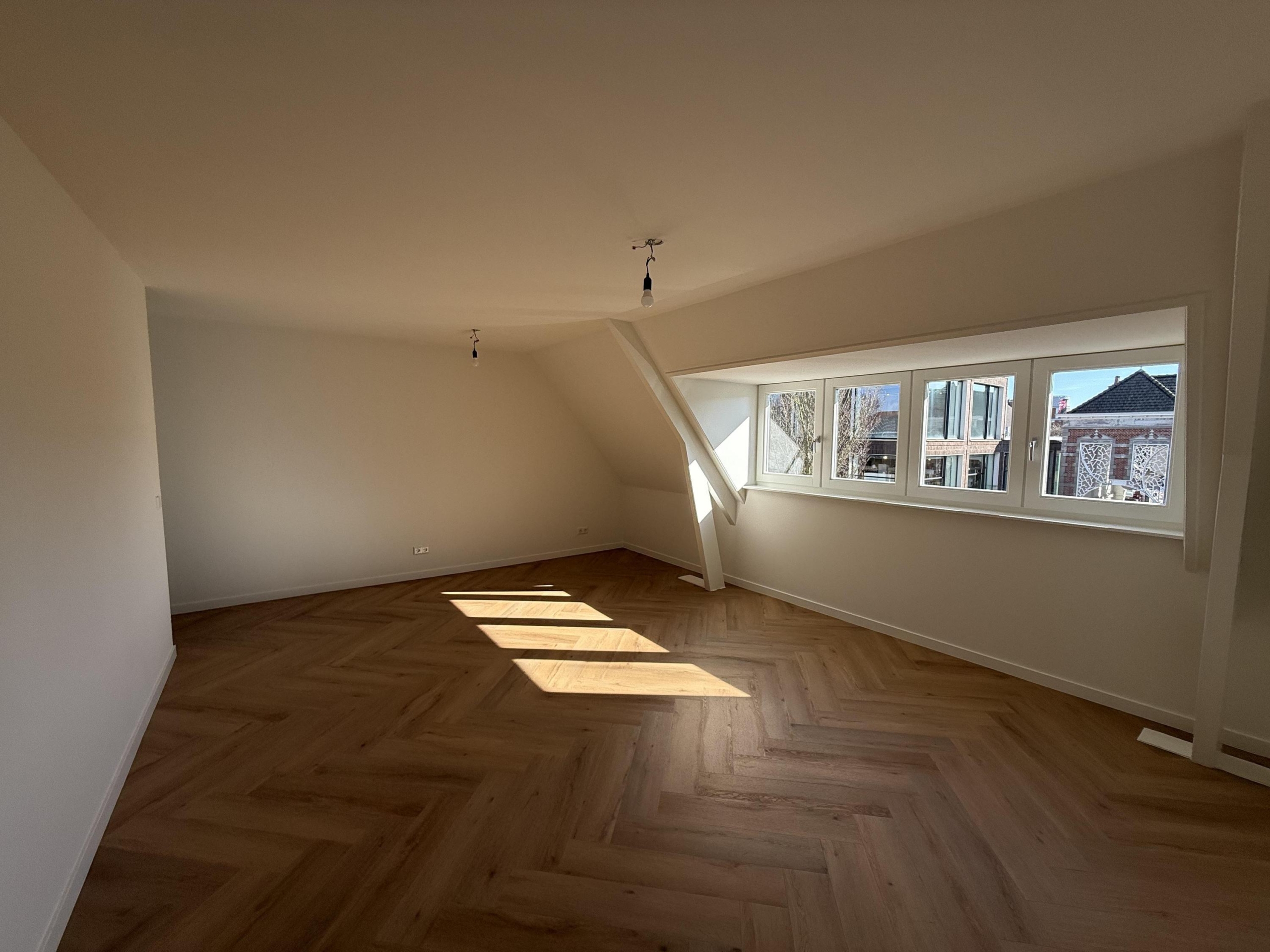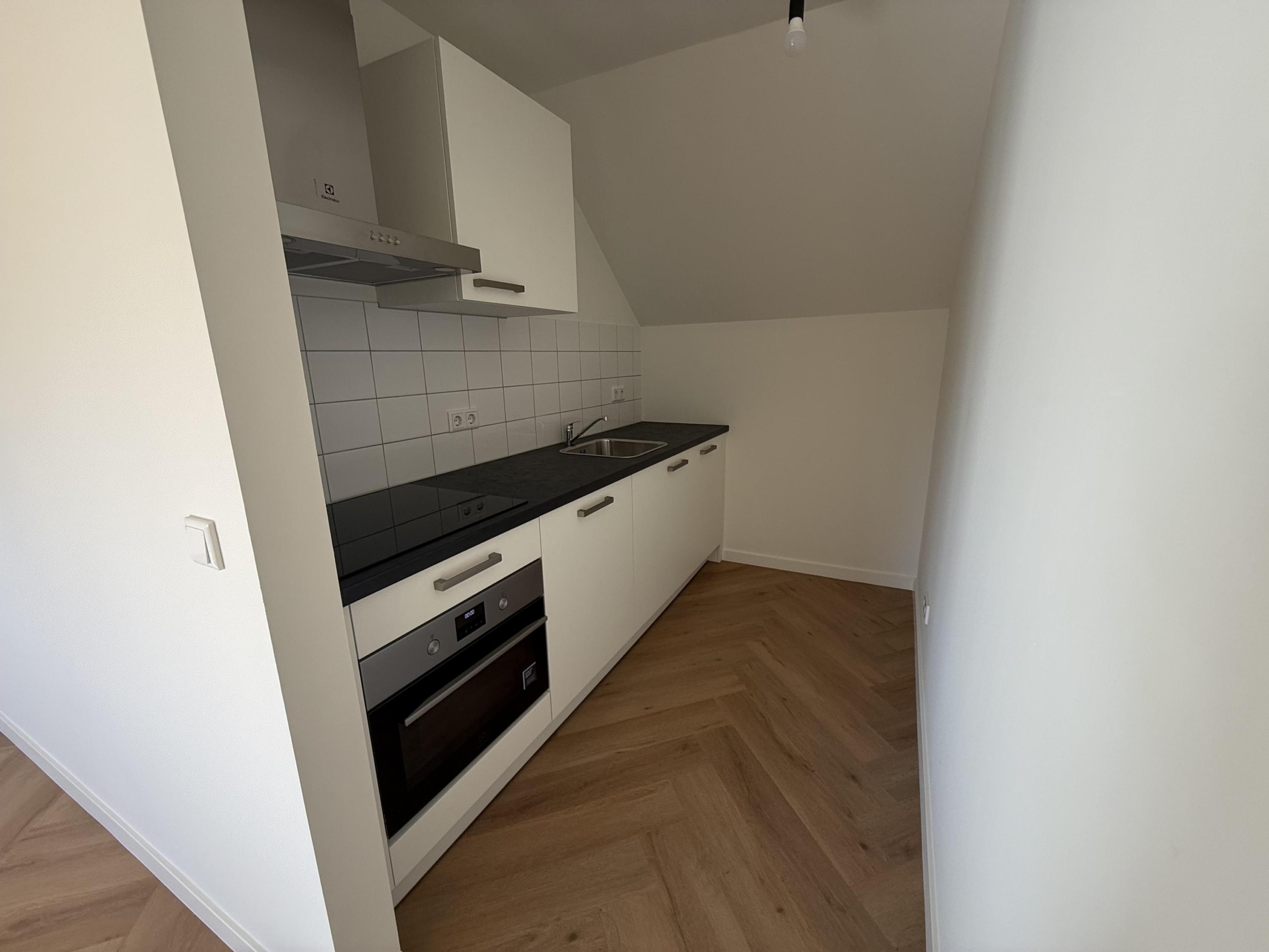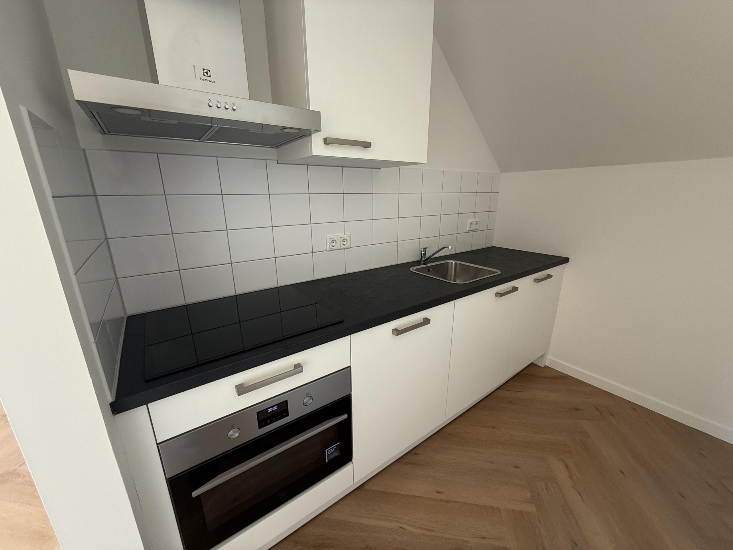 De lichte gezellige woonkamer is voorzien van een dakkapel met uitzicht op de Bernhard van Kreelpoort. Aansluitend aan de woonkamer vind je de half open keuken welke is uitgerust met een elektrische kookplaat, oven, koelkast, vaatwasser en een afzuigkap.