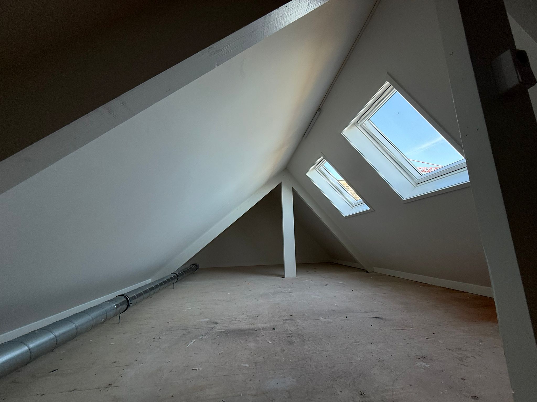 Middels een vlizotrap heb je toegang tot de zolderverdieping. Dankzij de dakramen en de hoogte is dit een ideale plek voor extra opslag of bijvoorbeeld een kinderkamer of thuiswerkplek.