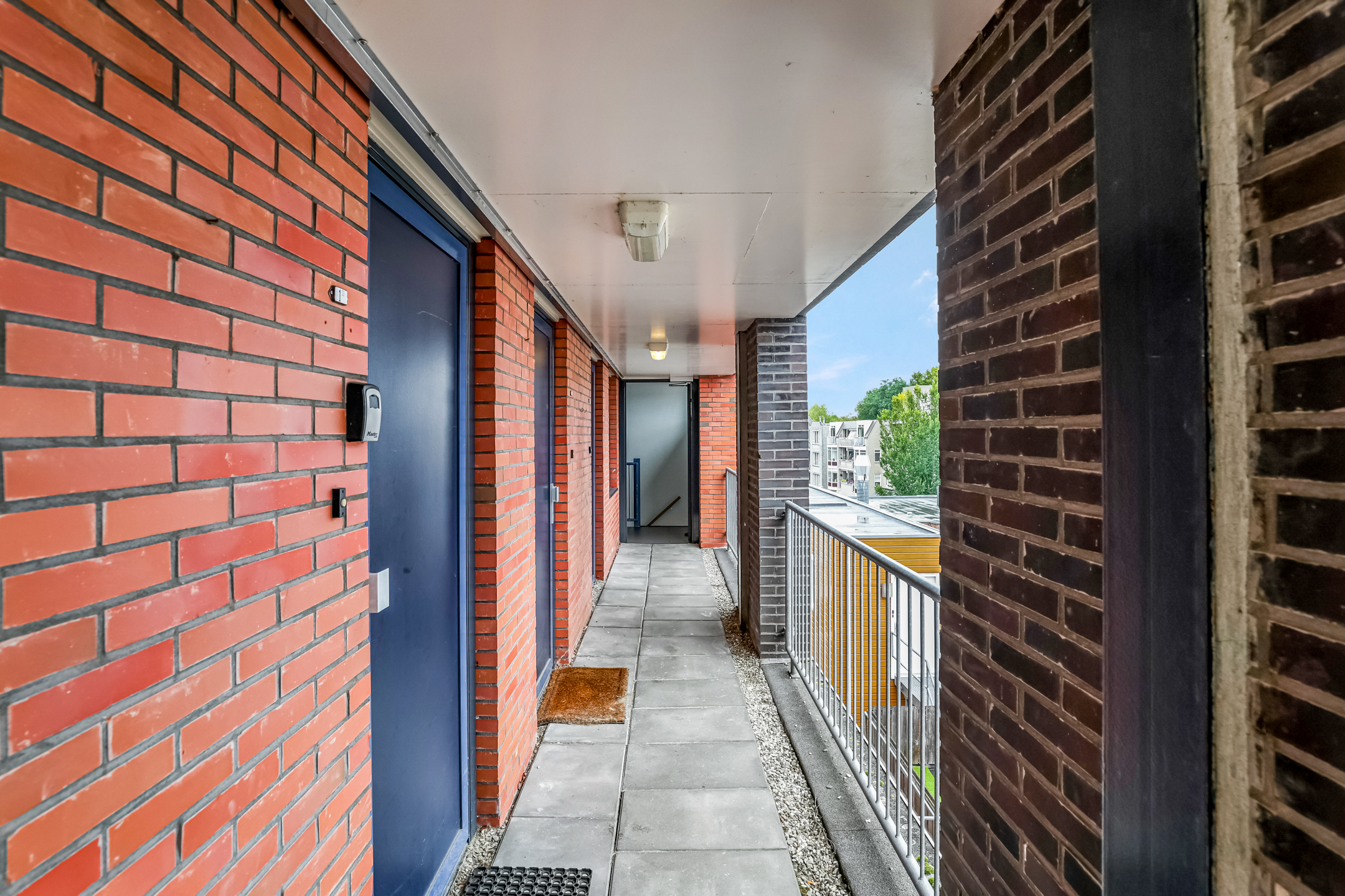 Via de gezellige straat bereik je de entree van het complex. In de straat rijd je zo in de autolift om jouw auto veilig in de parkeerkelder te zetten en plaats je de fiets in de eigen berging. De gezamenlijke entree is voorzien van een intercominstallatie en biedt toegang tot de centrale hal met brievenbussen. Met de lift of vaste trap kom je uit bij de galerij op de derde verdieping.