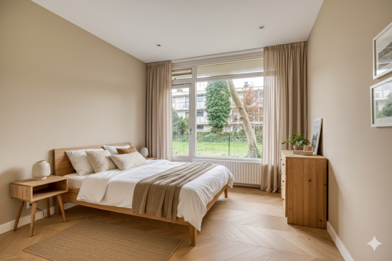 Het appartement is voorzien van twee slaapkamers. Beide slaapkamers grenzen aan de tuin. Zo kun je niet alleen vanuit de woonkamer maar ook vanuit de slaapkamers zo de tuin in stappen. Een luxe die je niet vaak ziet in een appartement. Beide kamers hebben een prettig formaat en bieden volop mogelijkheden, denk hierbij aan een logeerkamer, werkkamer, slaapkamer of nou net wat jij nodig hebt.