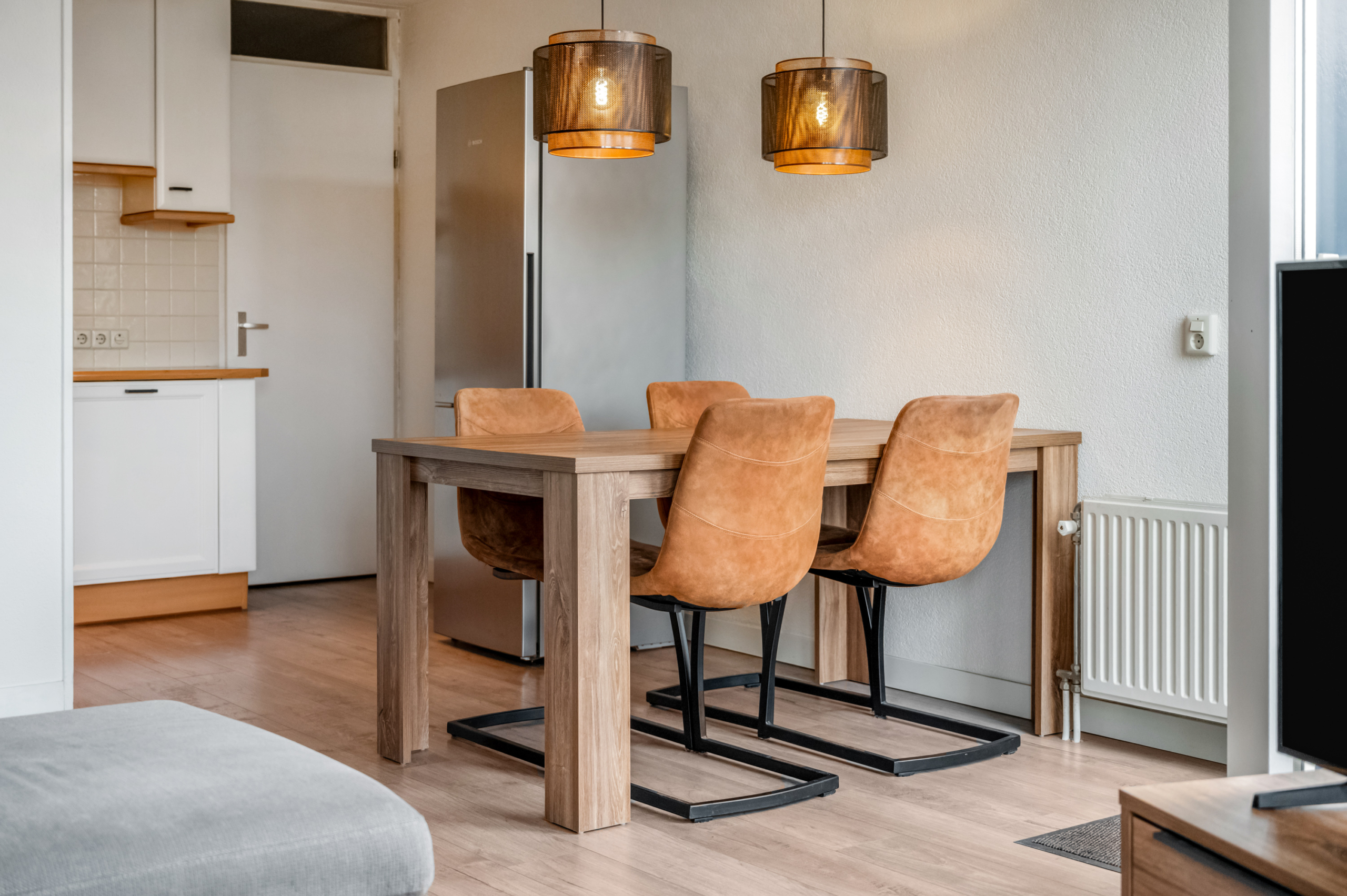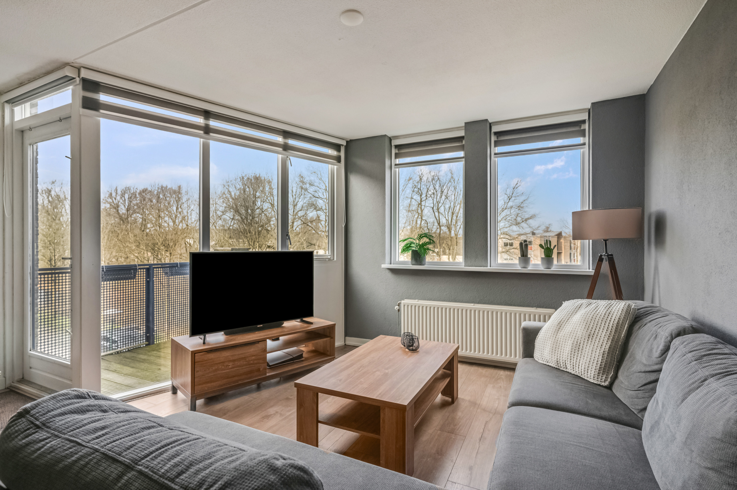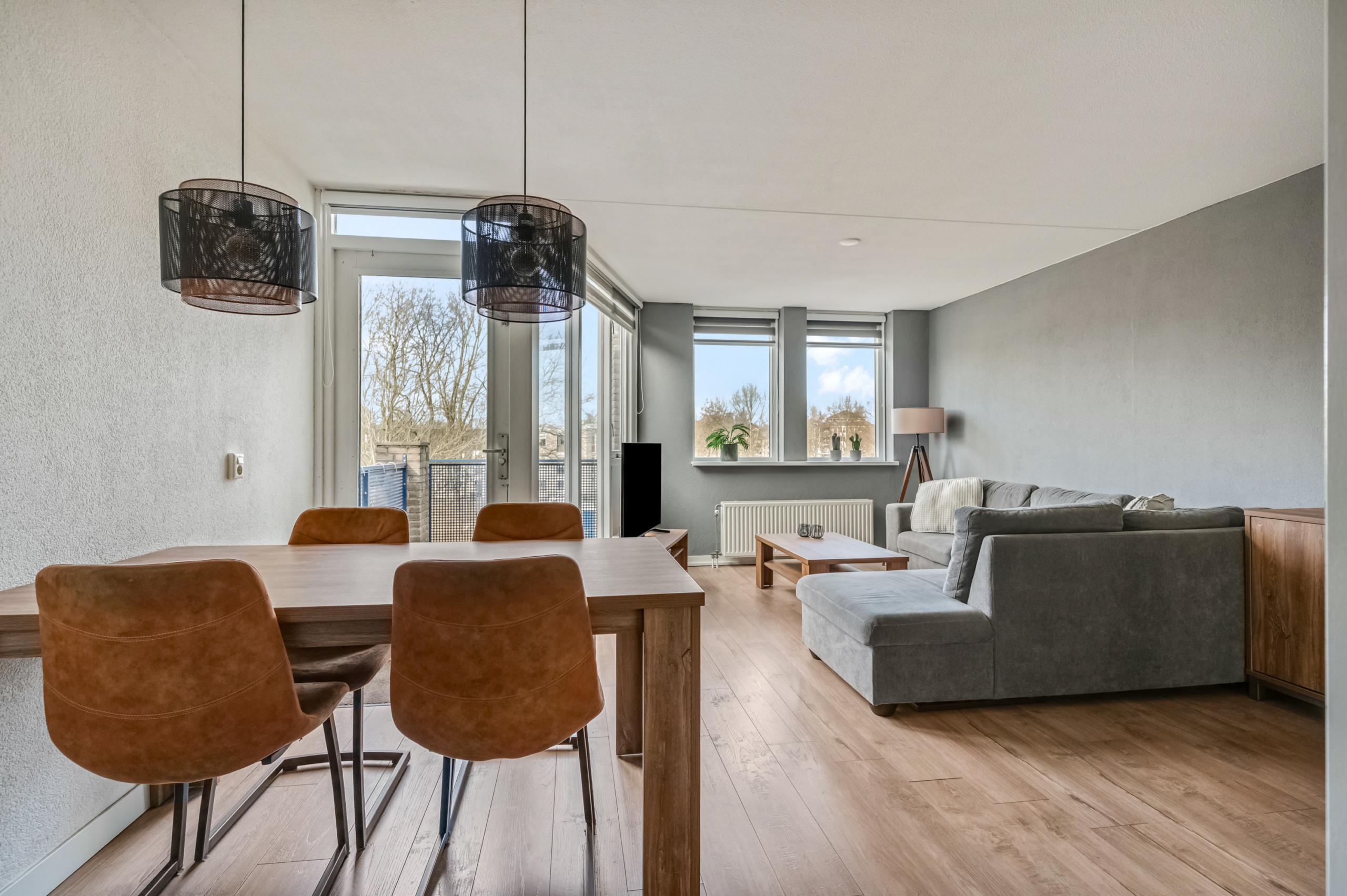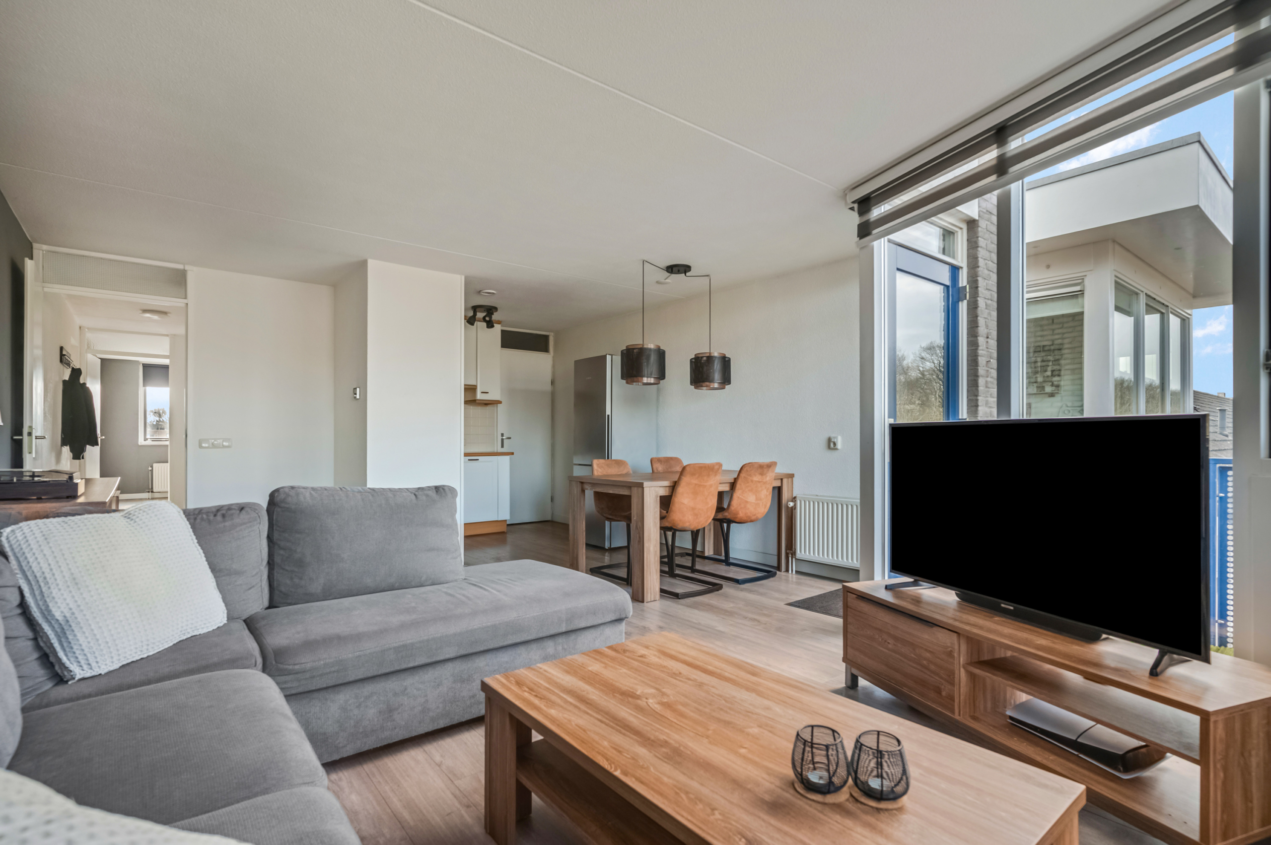 De ruime woonkamer vormt het hart van de woning. Dankzij de grote raampartijen is dit een heerlijk lichte leefruimte met voldoende plek voor een royale zithoek én een gezellige eethoek. Vanuit de woonkamer stap je zo het balkon op, gelegen op het noordwesten. Met een comfortabele loungeset creëer je hier jouw eigen buitenplek met vrij uitzicht. Hier geniet je van de middag- en avondzon, perfect om na een lange werkdag nog even buiten te ontspannen.