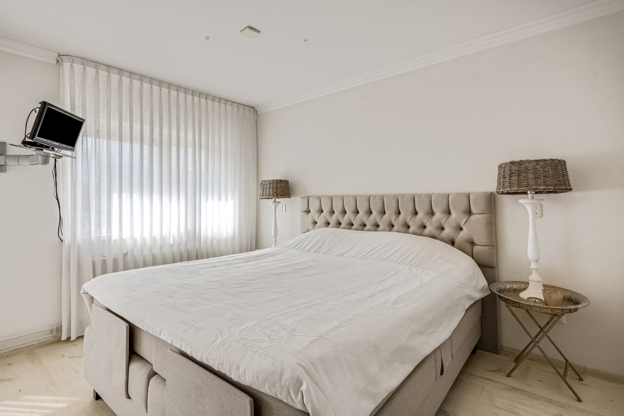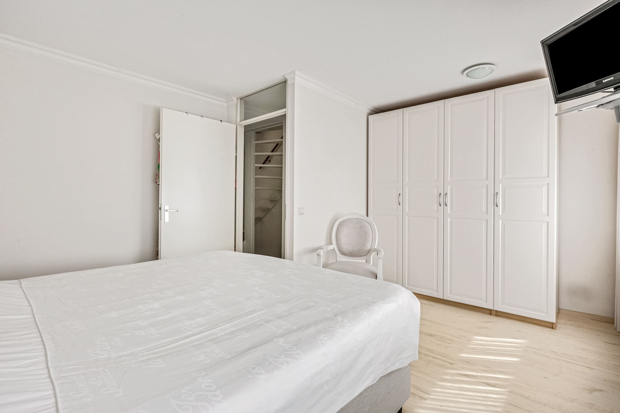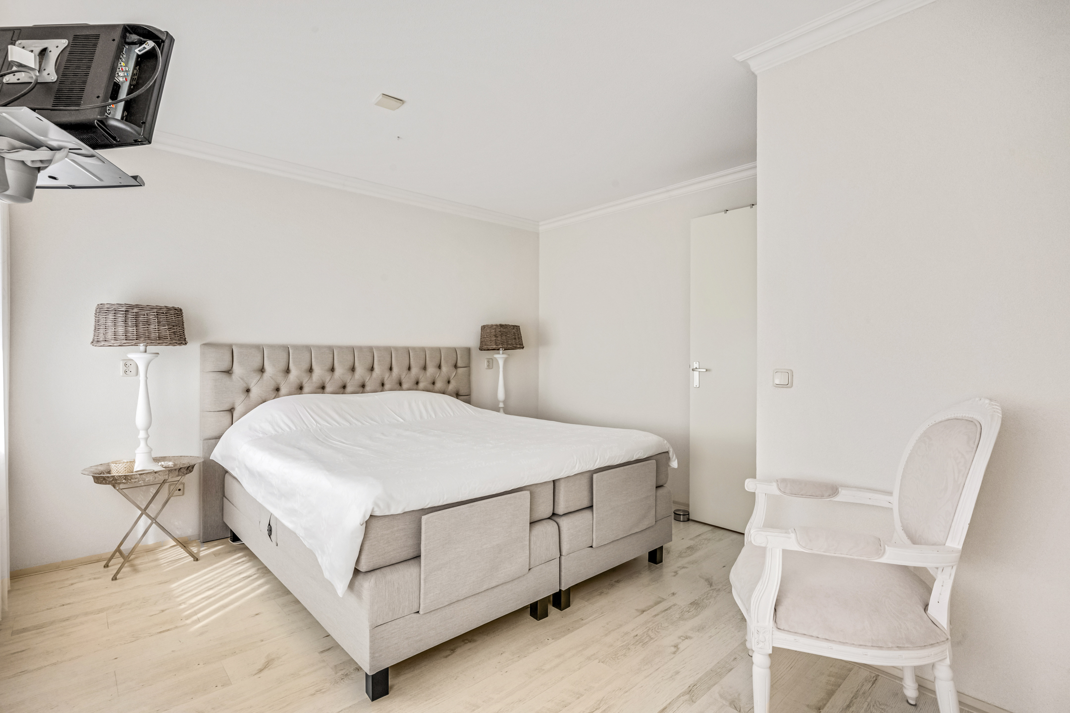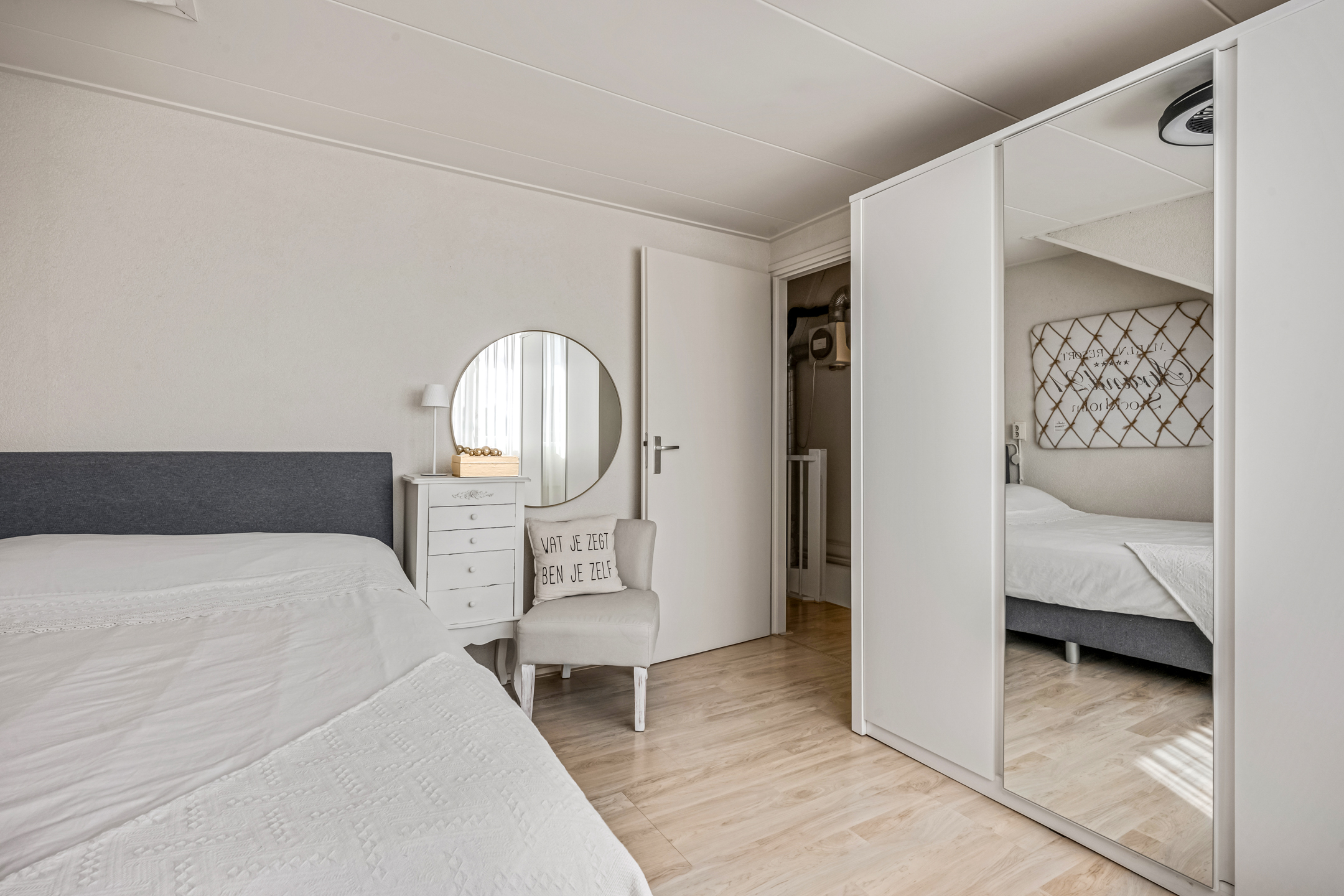 Middels de vaste trap bereik je de overloop met toegang tot twee slaapkamers, de badkamer en een tweede, apart toilet. De masterbedroom aan de voorzijde is erg ruim en heeft voldoende plek voor een grote kledingkast en een kingsize bed. Deze kamer heeft ook genoeg daglicht. Aan de achterzijde is de tweede slaapkamer te vinden. Deze is ook erg ruim.