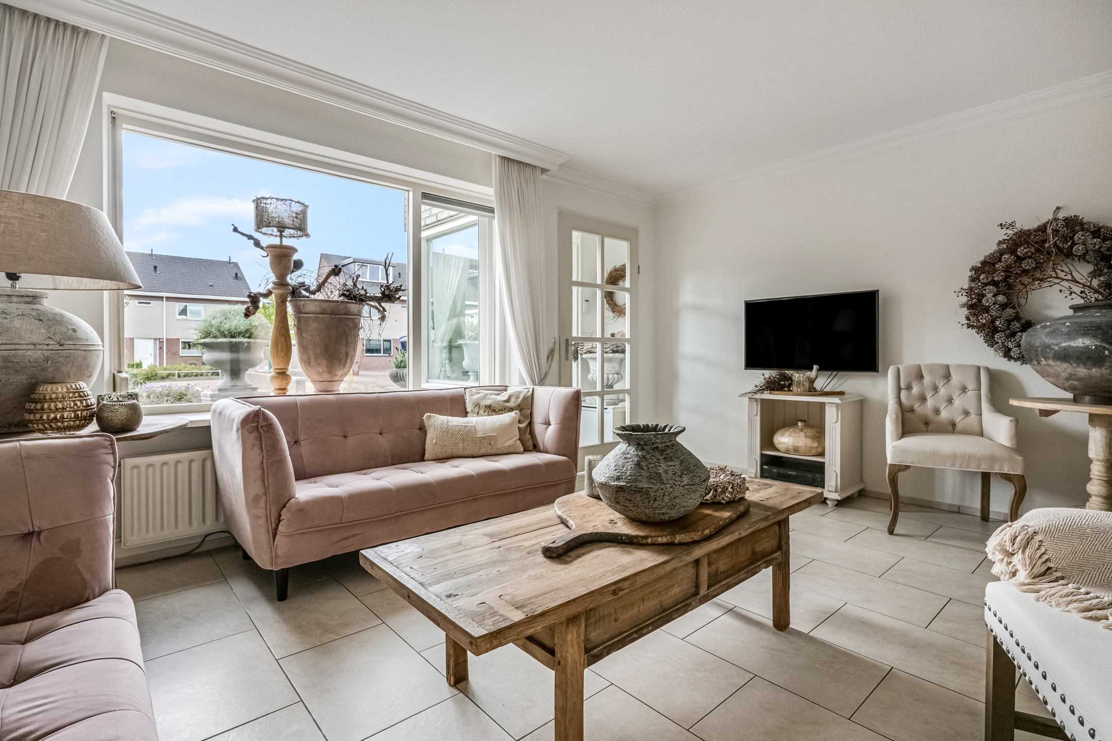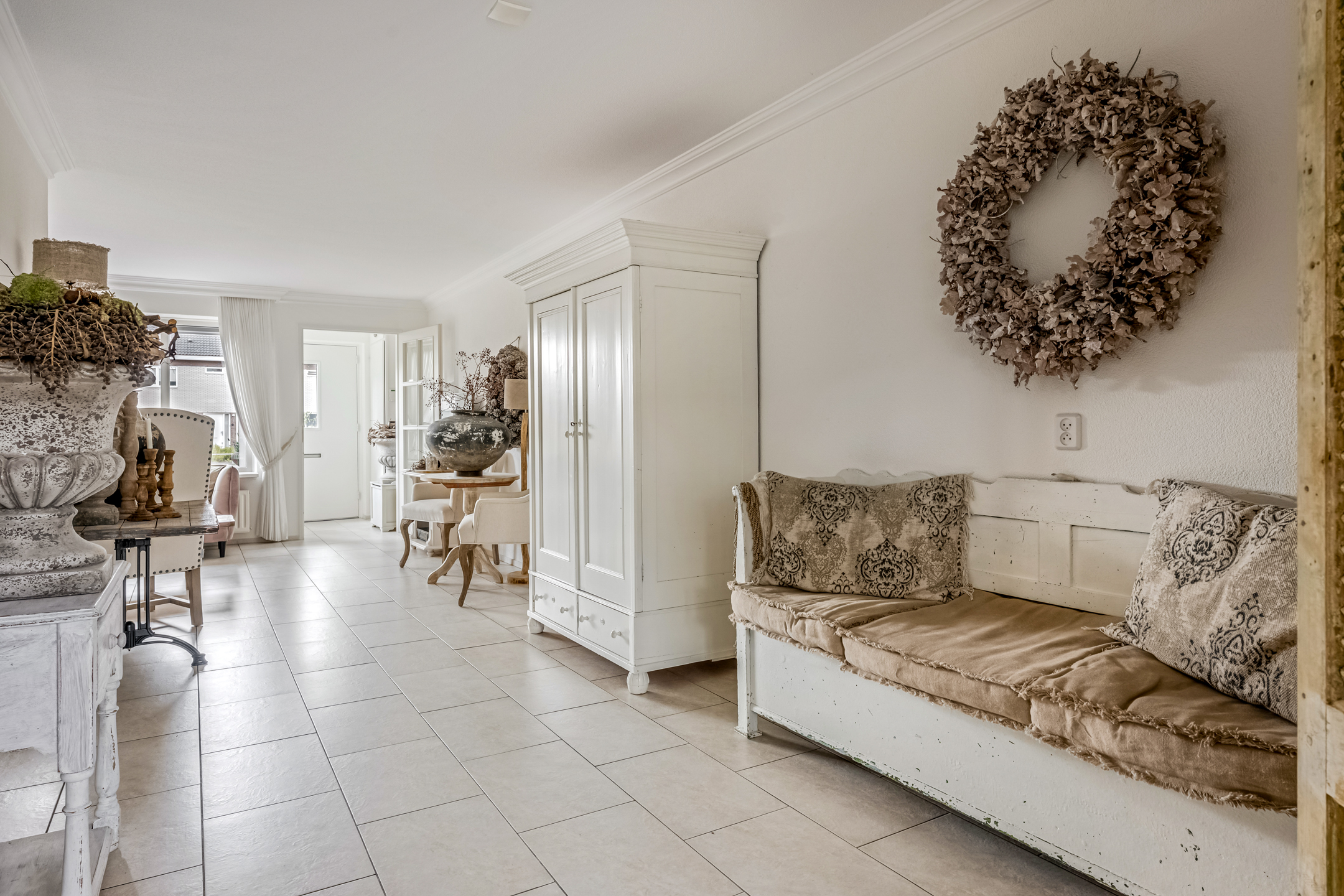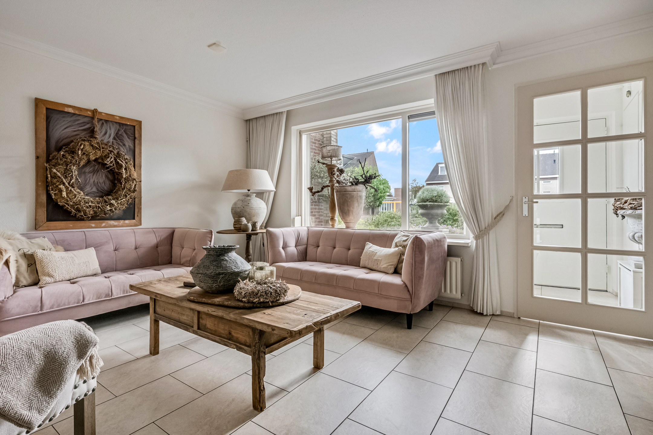 Via de goed verzorgde voortuin kom je bij de entree van de woning. Je komt de woning binnen in de hal met de meterkast en de toegangsdeur naar de living. Zodra je door de toegangsdeur loopt, kom je in de zithoek. Hier is ruimte voor een grote loungebank en vanaf hier kijken je door de raampartijen ook lekker uit op de straat. Dit raam is voorzien van een rolluik zodat je hier in de zomermaanden ook fijn kunt zitten met een aangename temperatuur. In de zithoek vind je ook nog een toegangsdeur naar de praktische trapkast.