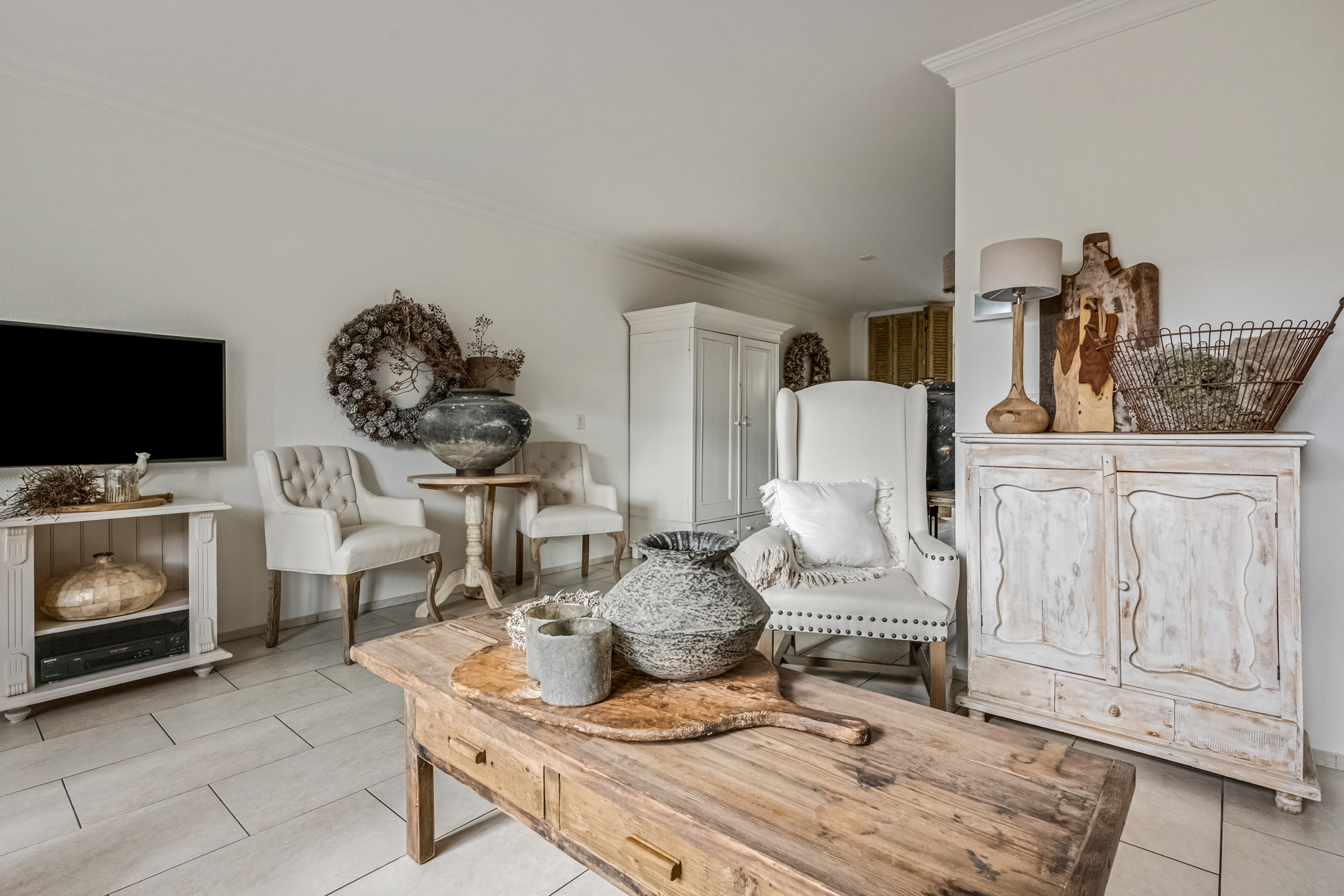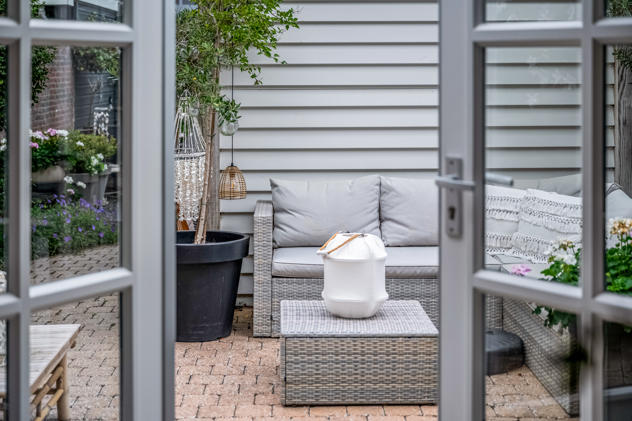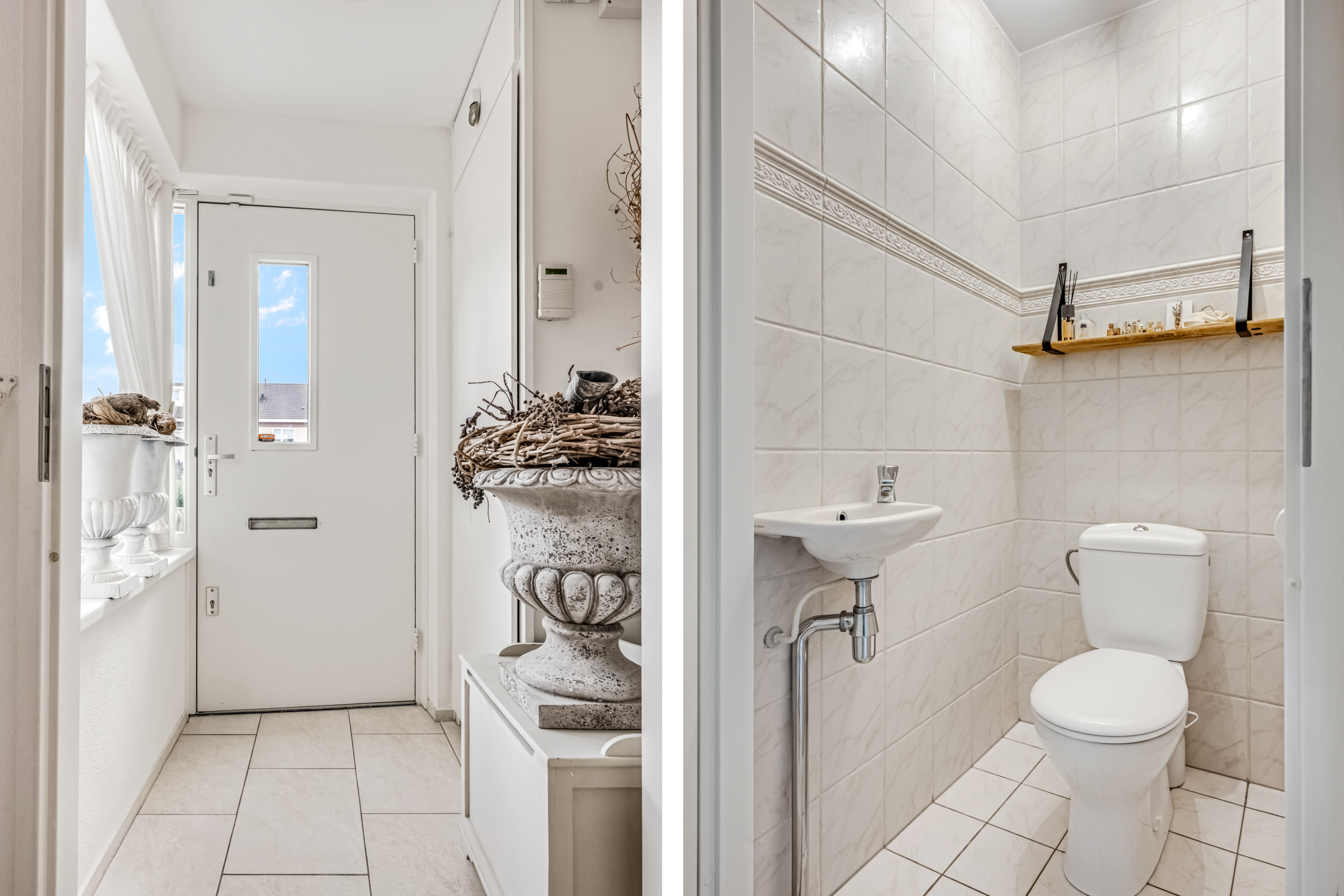 Via de goed verzorgde voortuin kom je bij de entree van de woning. Je komt de woning binnen in de hal met de meterkast en de toegangsdeur naar de living. Zodra je door de toegangsdeur loopt, kom je in de zithoek. Hier is ruimte voor een grote loungebank en vanaf hier kijken je door de raampartijen ook lekker uit op de straat. Dit raam is voorzien van een rolluik zodat je hier in de zomermaanden ook fijn kunt zitten met een aangename temperatuur. In de zithoek vind je ook nog een toegangsdeur naar de praktische trapkast.