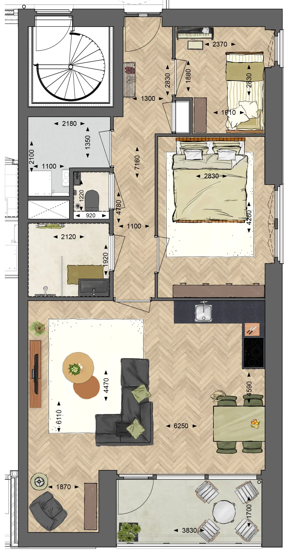 – Terras (6,5 m²) op het zuidwesten;