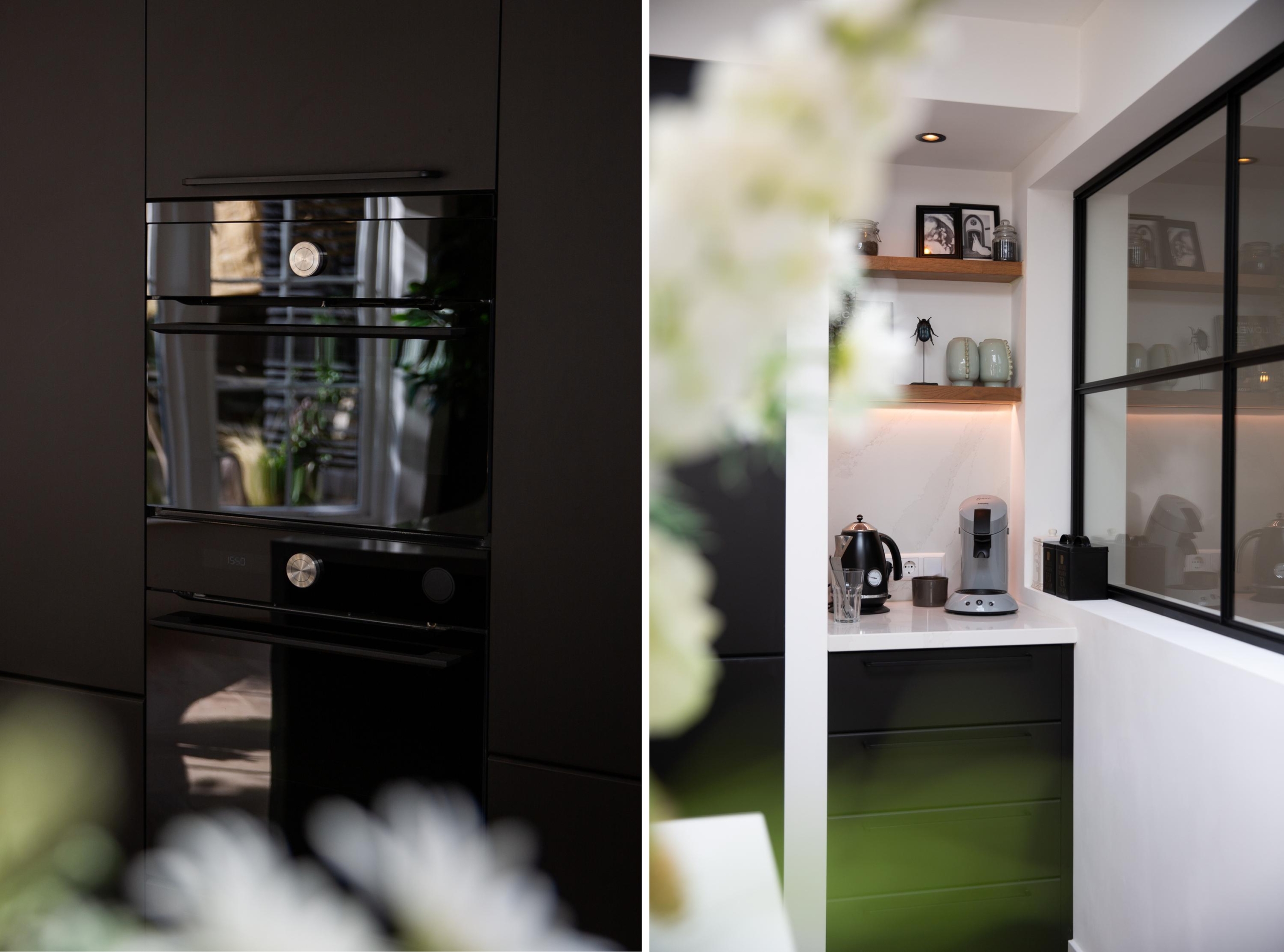 De woonkeuken vormt écht het hart van de woning. Hier kook en leef je met alle luxe die je je kunt wensen: een oven met stoomfunctie, een combimagnetron met ovenfunctie, dubbele vaatwassers, een kokend waterkraan van Selsiuz, een Insinkerator, een ingebouwde afzuiging die is gekoppeld aan de inductiekookplaat. Strakke ledverlichting maakt de ruimte helemaal af. Met uitzicht op de groene tuin is de keuken een plek waar je ontspannen kookt en geniet van momenten aan de eettafel. In deze woonkeuken is veel ruimte voor een grote eettafel, ideaal voor lange diners en gezellig samenzijn!