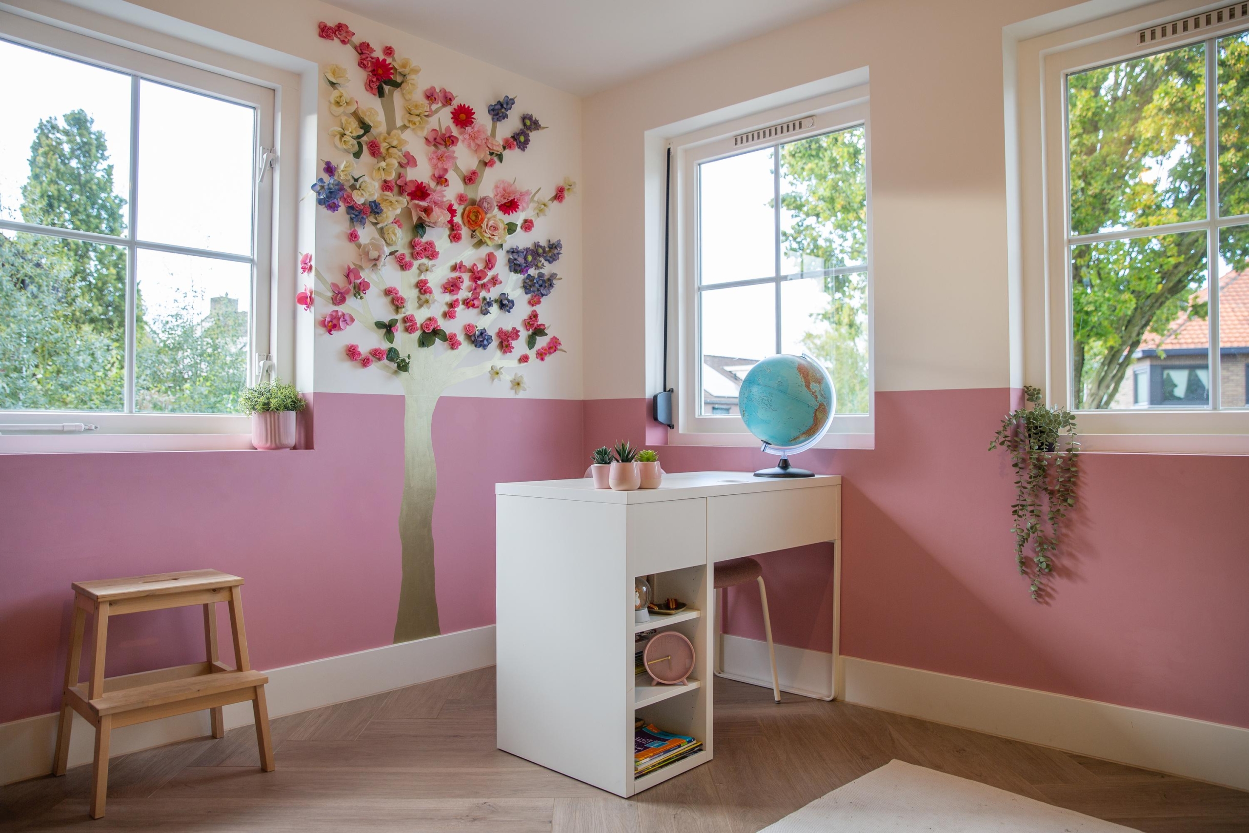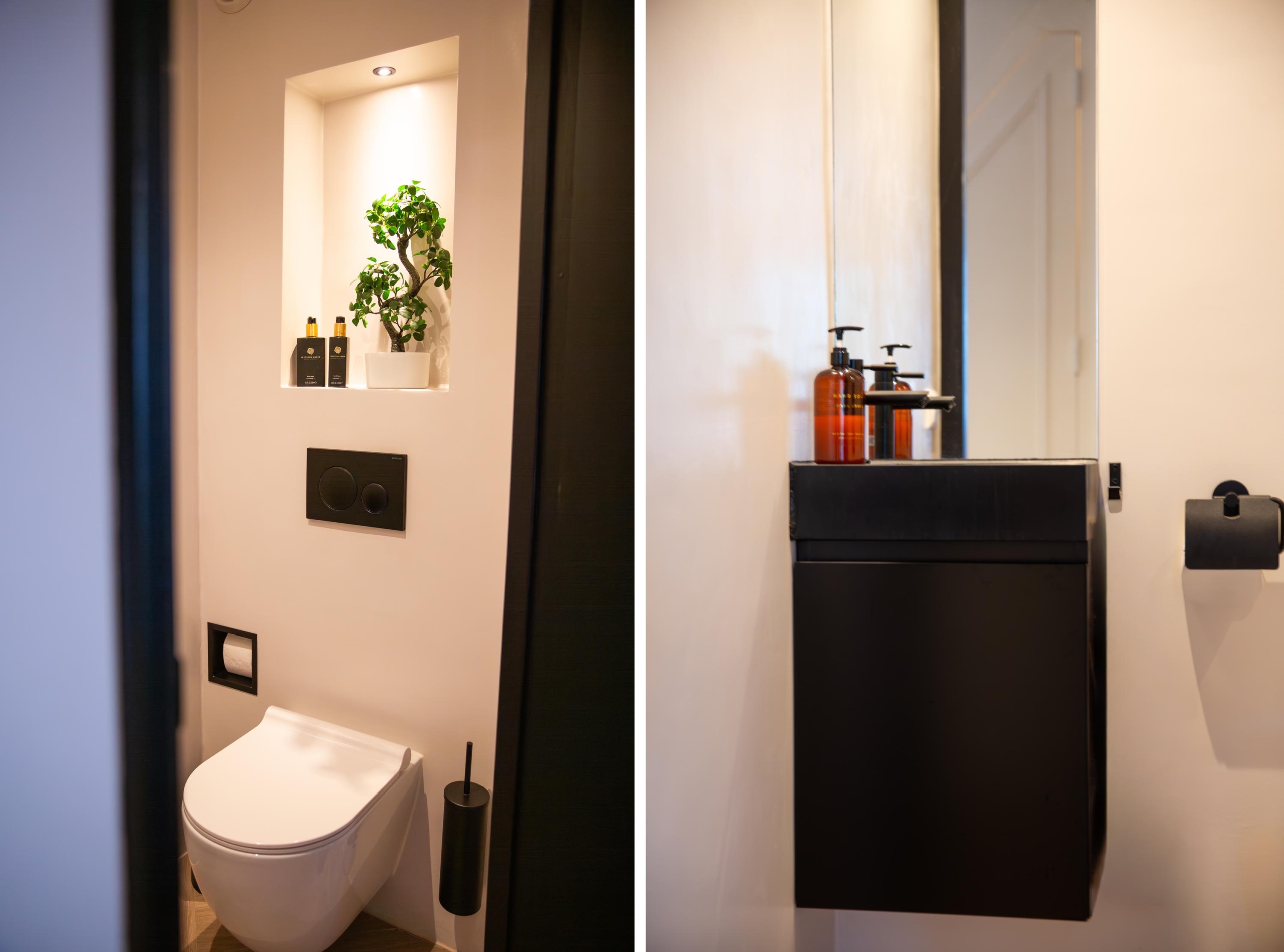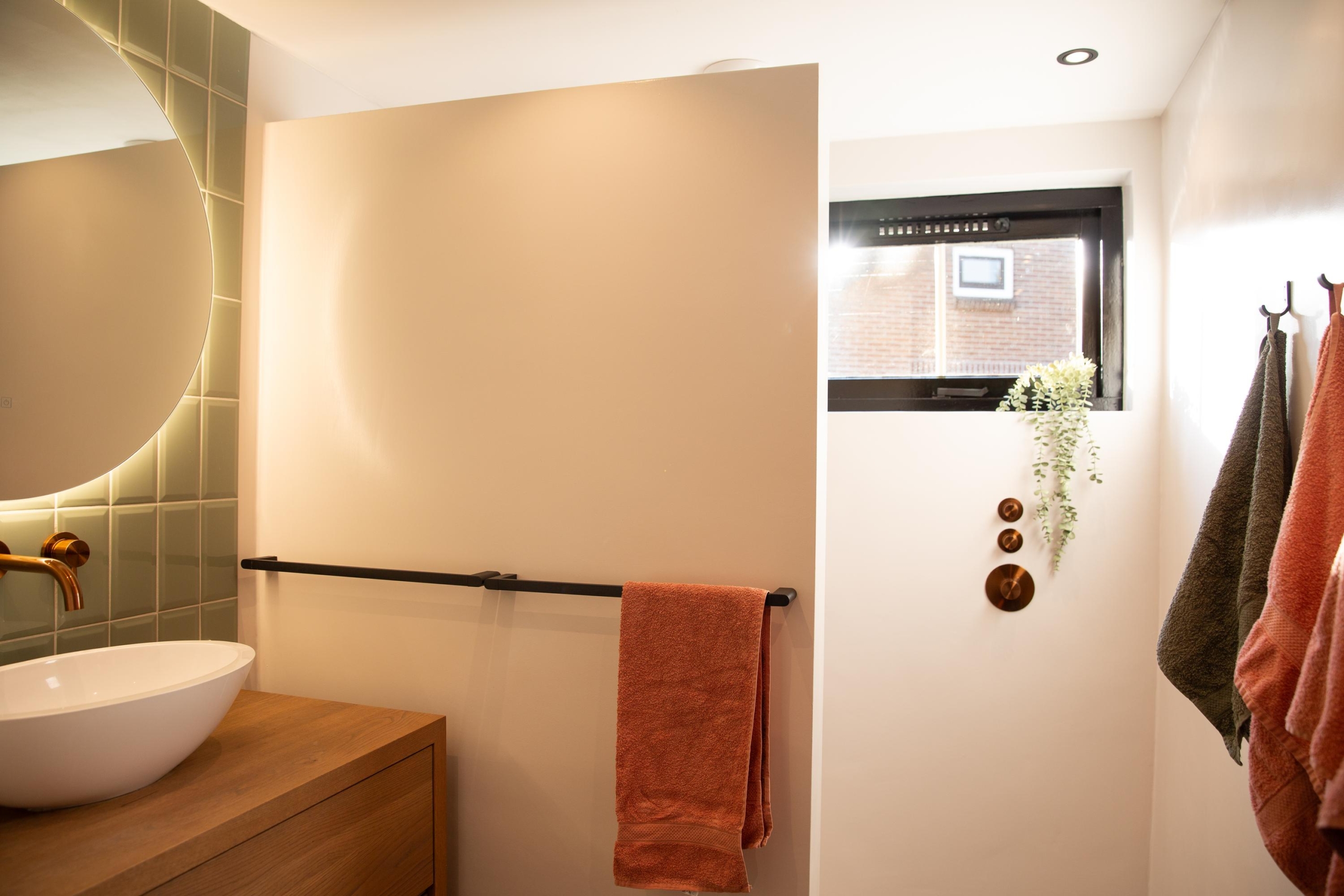 De tweede badkamer met veel licht biedt volop comfort met een inbouwdouche, een eiken meubel en slimme details zoals de losse knoppen waarmee je kinderen eenvoudig kunt douchen zonder zelf nat te worden. Daarnaast is deze heerlijke badkamer ook weer volledig voorzien van vloerverwarming!