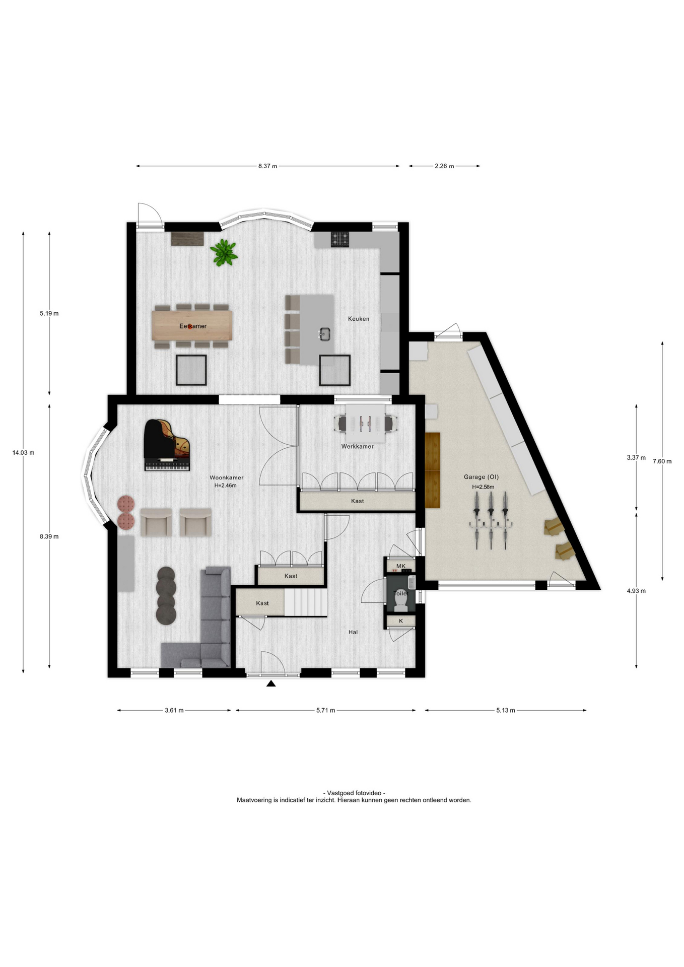 • Werkkamer op de begane grond;