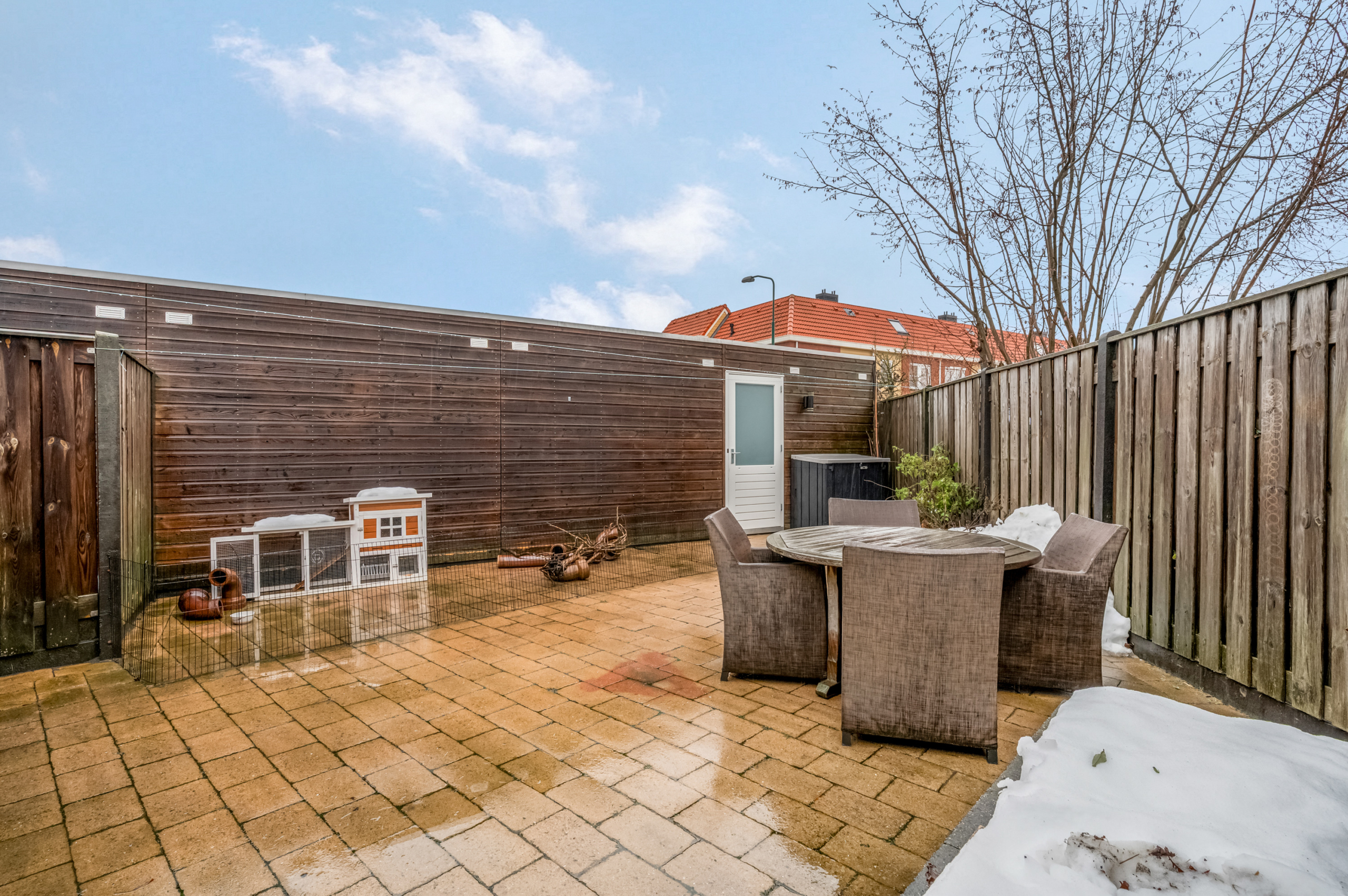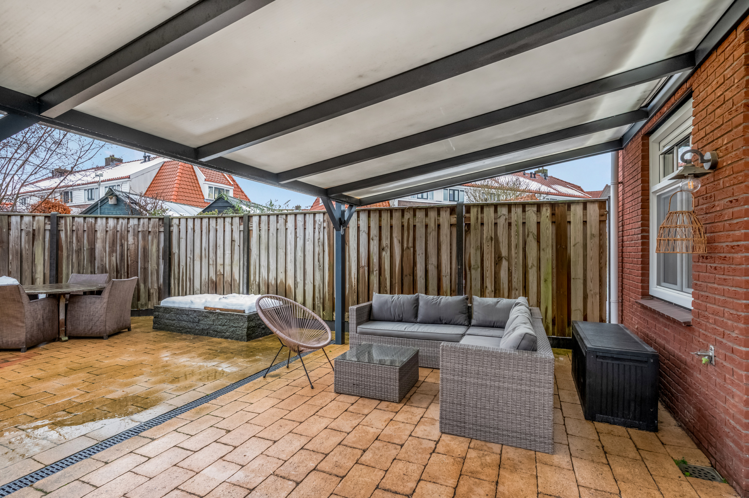 De royale tuin met overkapping is zonder twijfel één van de grote pluspunten van deze benedenwoning. De tuin is fraai aangelegd met bestrating en borders en biedt voldoende ruimte voor zowel een loungeset als een eettafel. Op zonnige dagen is er zelfs plek voor bijvoorbeeld een zwembad.