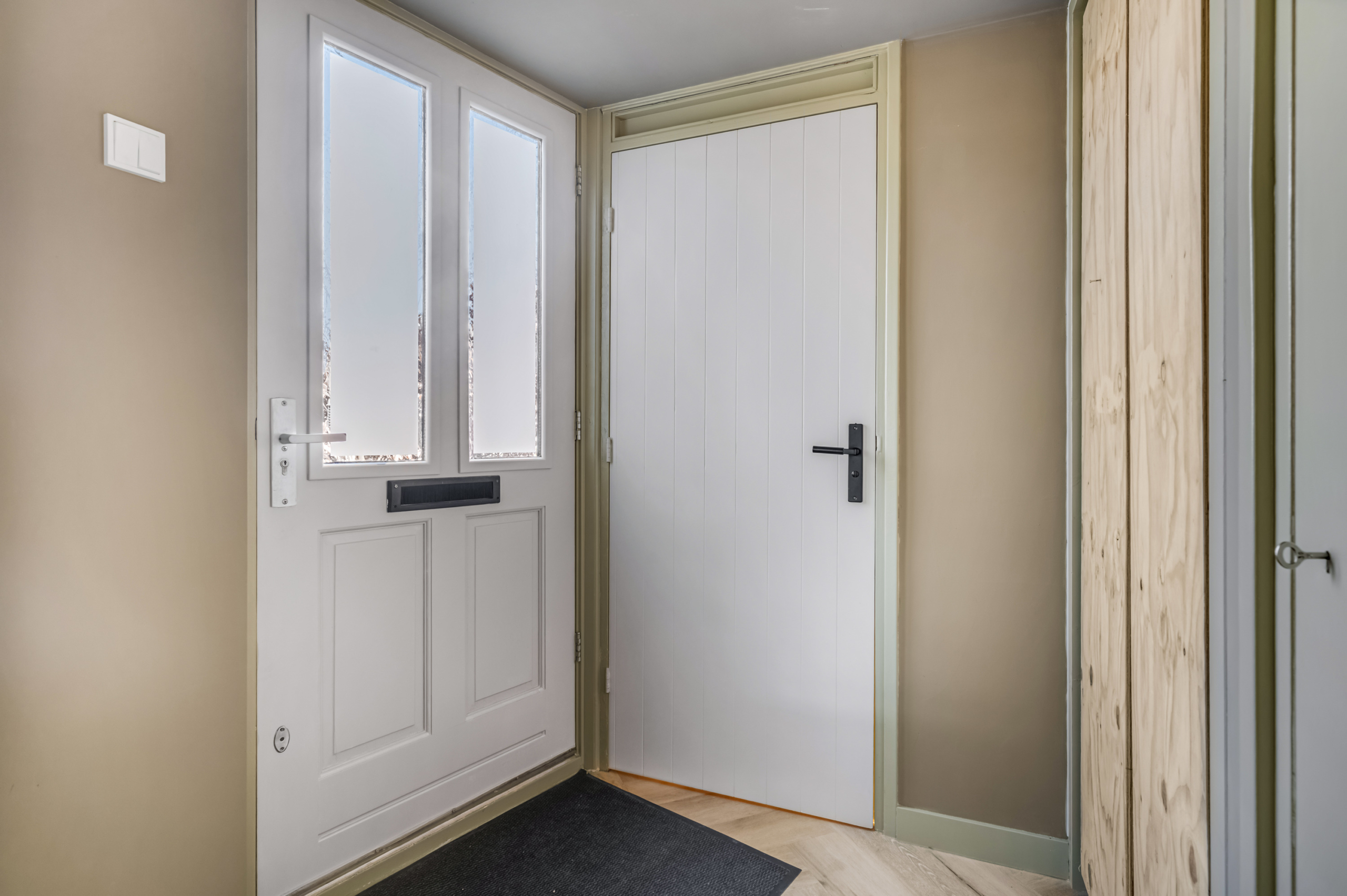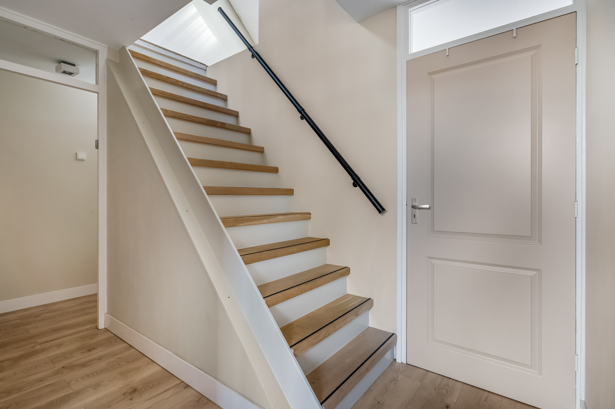 Via de entree kom je binnen in een verzorgde hal met toegang tot het toilet, de meterkast en de woonkamer. De trapopgang is stijlvol in de woonkamer geïntegreerd.