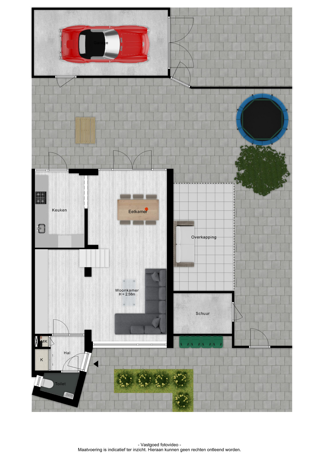 – Vrijstaande stenen garage met eigen oprit;