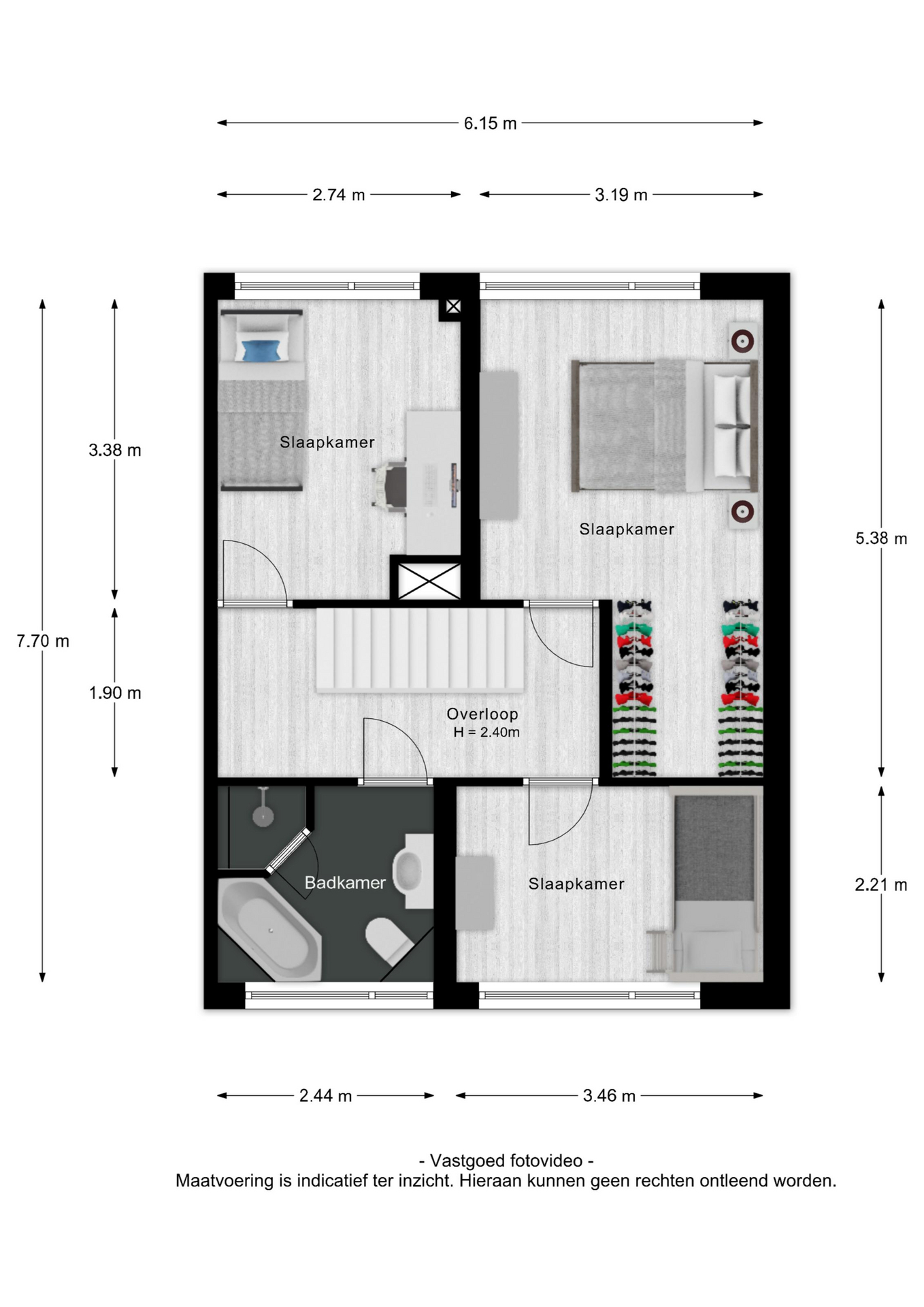 Hier bevinden zich drie goed bemeten slaapkamers, stuk voor stuk licht en praktisch in te delen. Ideaal als slaap-, werk- of hobbykamer.