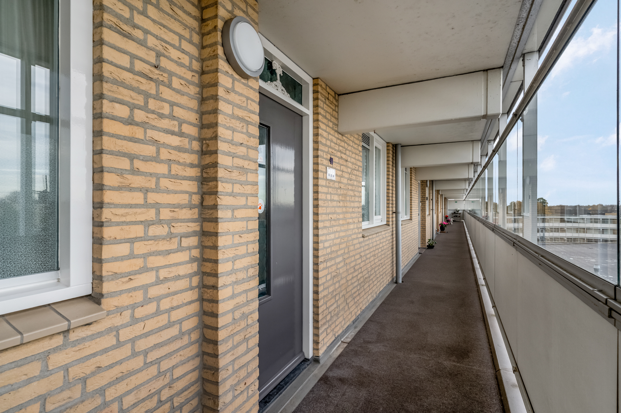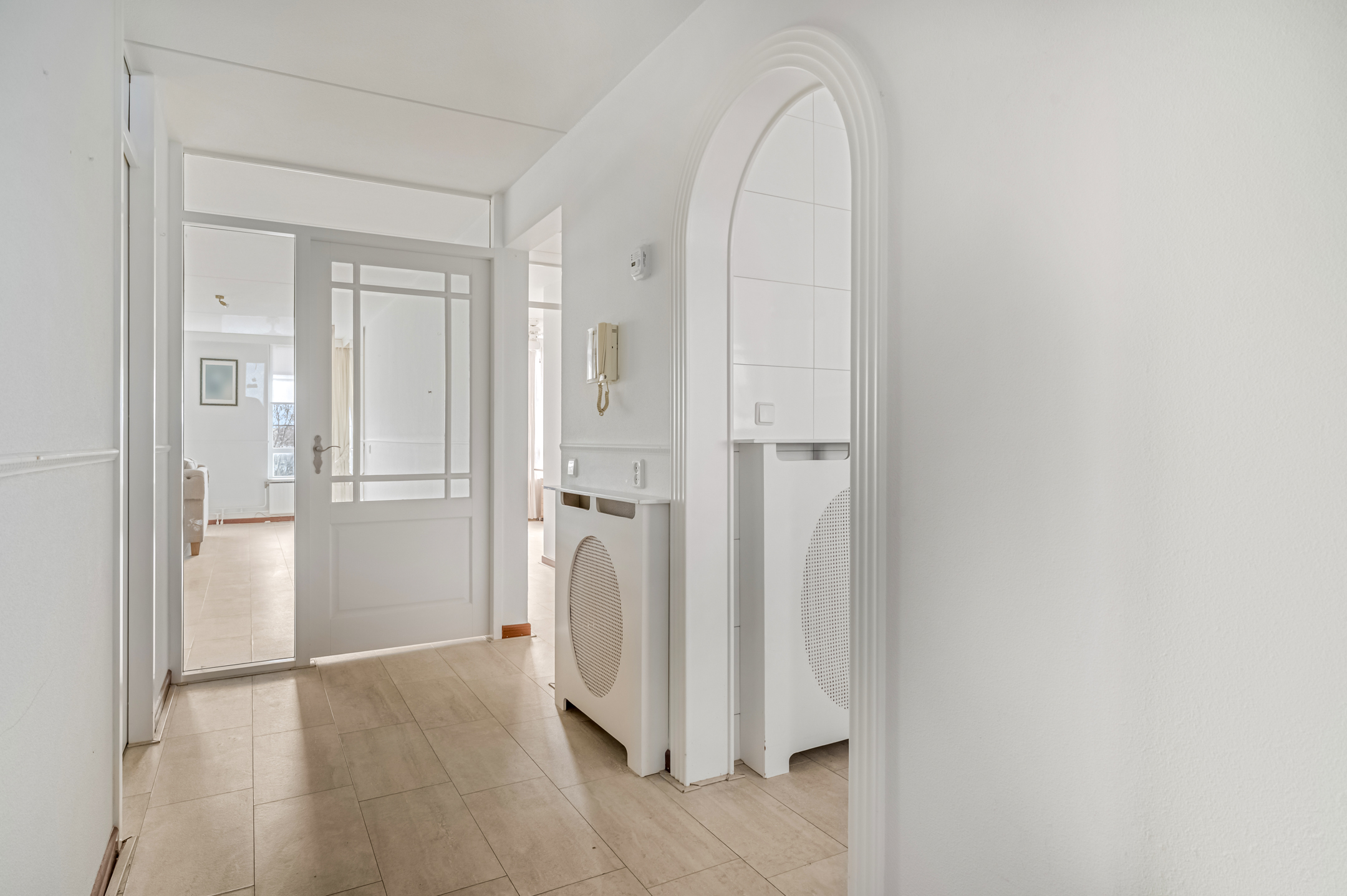 Via de lift of trap bereik je de galerij van het appartement. Je komt binnen in een ruime hal met video-intercom.