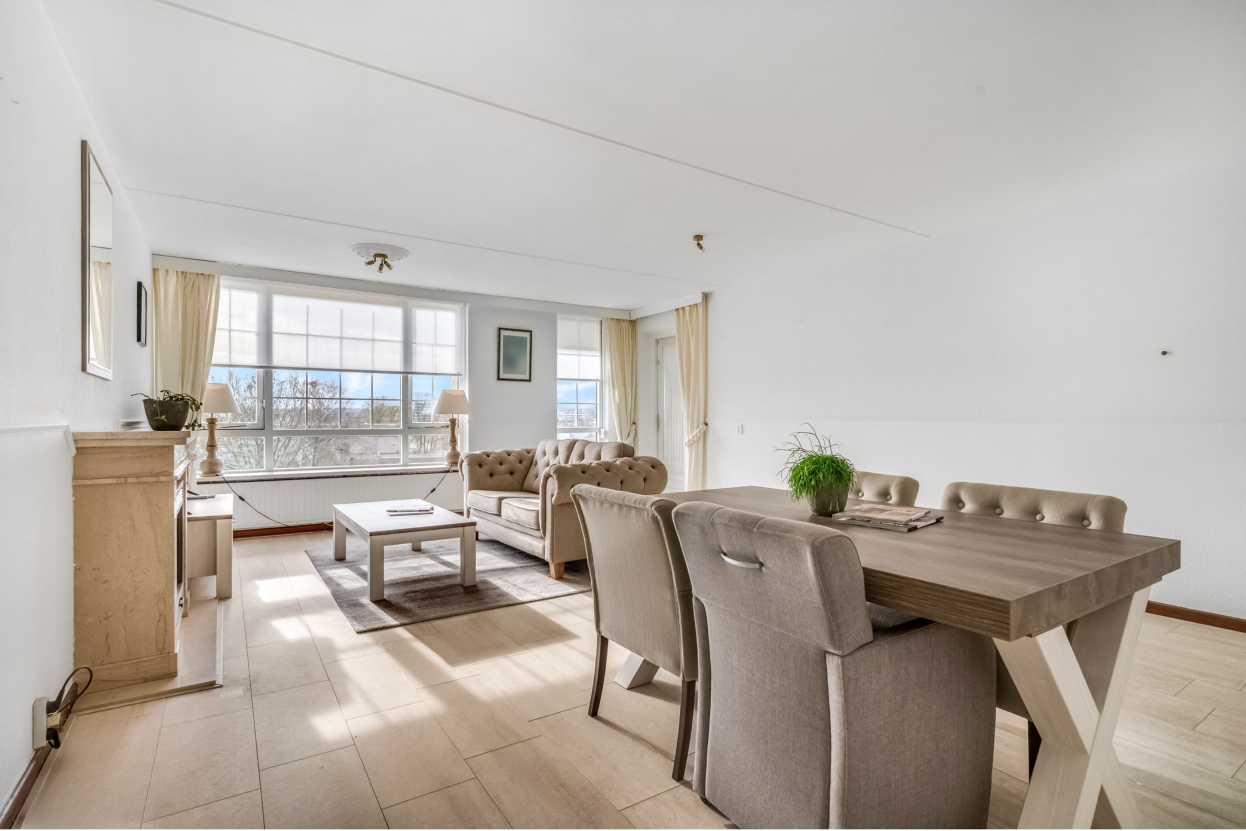 De lichte en royale woonkamer is het hart van de woning. Grote raampartijen zorgen voor een prettige lichtinval. Dankzij de ruime opzet is er voldoende plek voor zowel een comfortabele zithoek als een ruime eethoek. De kamer is verder voorzien van elektrisch bedienbare zonneschermen. Vanuit de woonkamer heb je toegang tot het zonnige balkon gelegen op het zuiden. Dankzij de ligging geniet je hier van veel middag- en avondzon.
