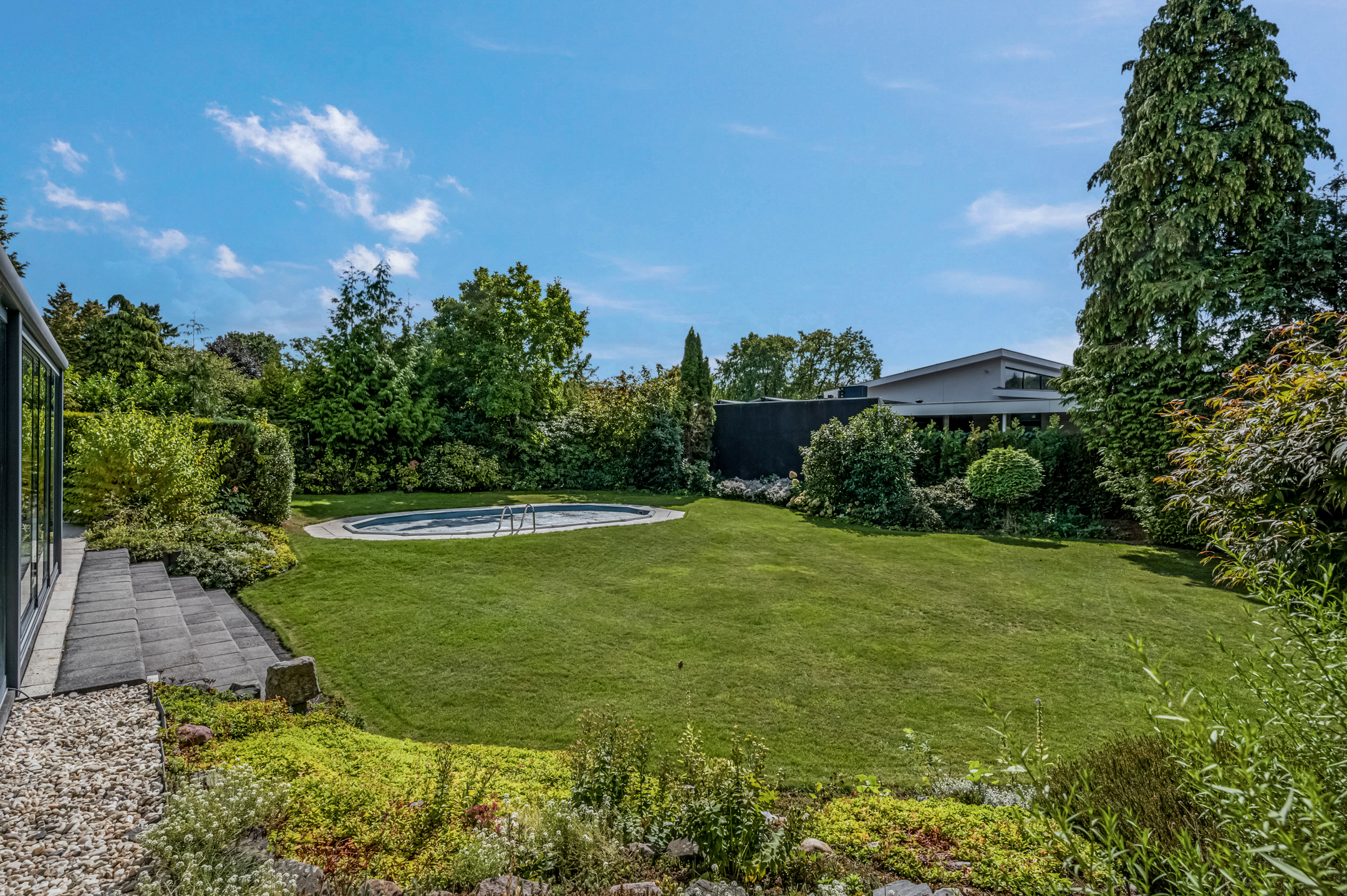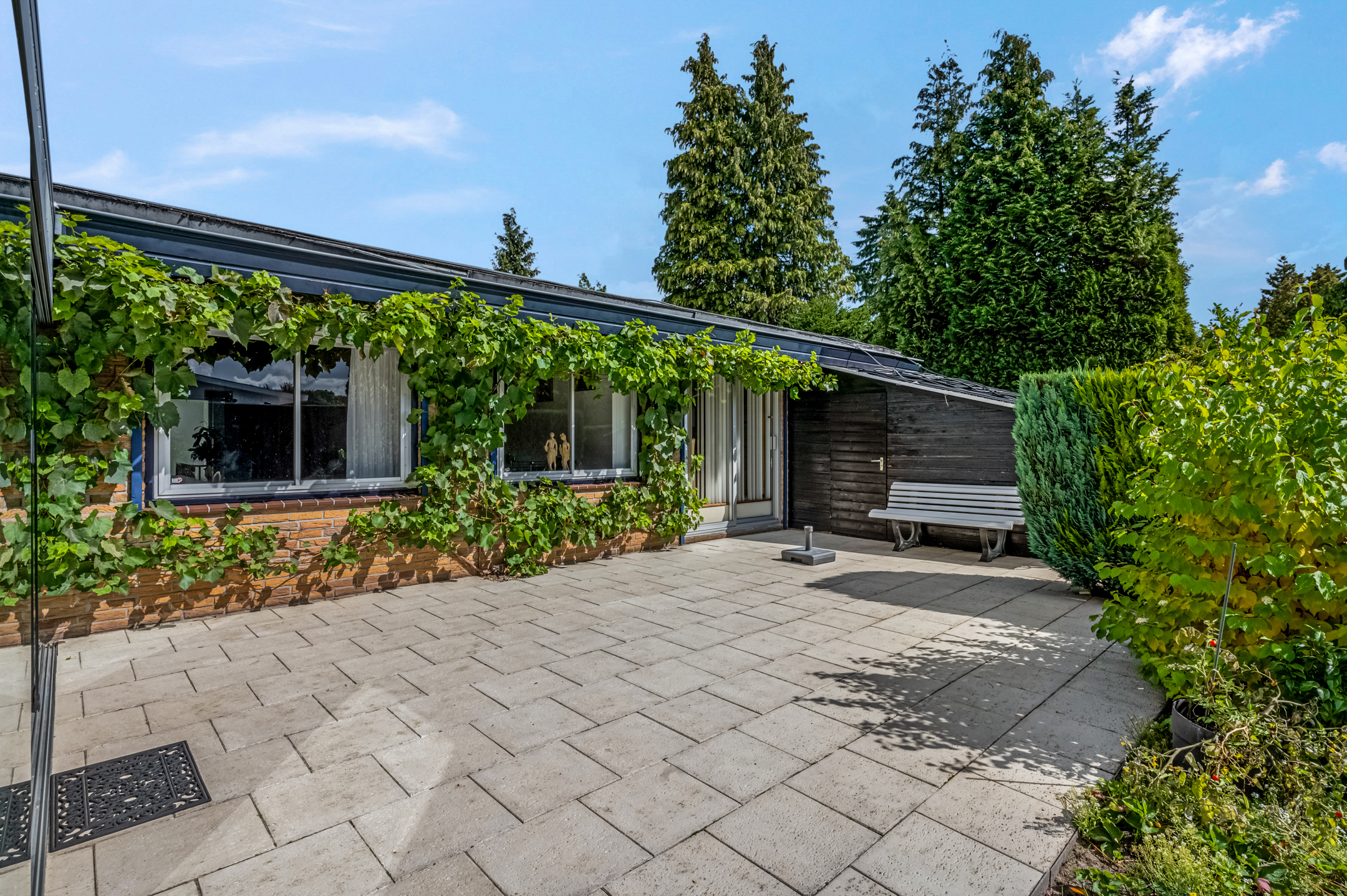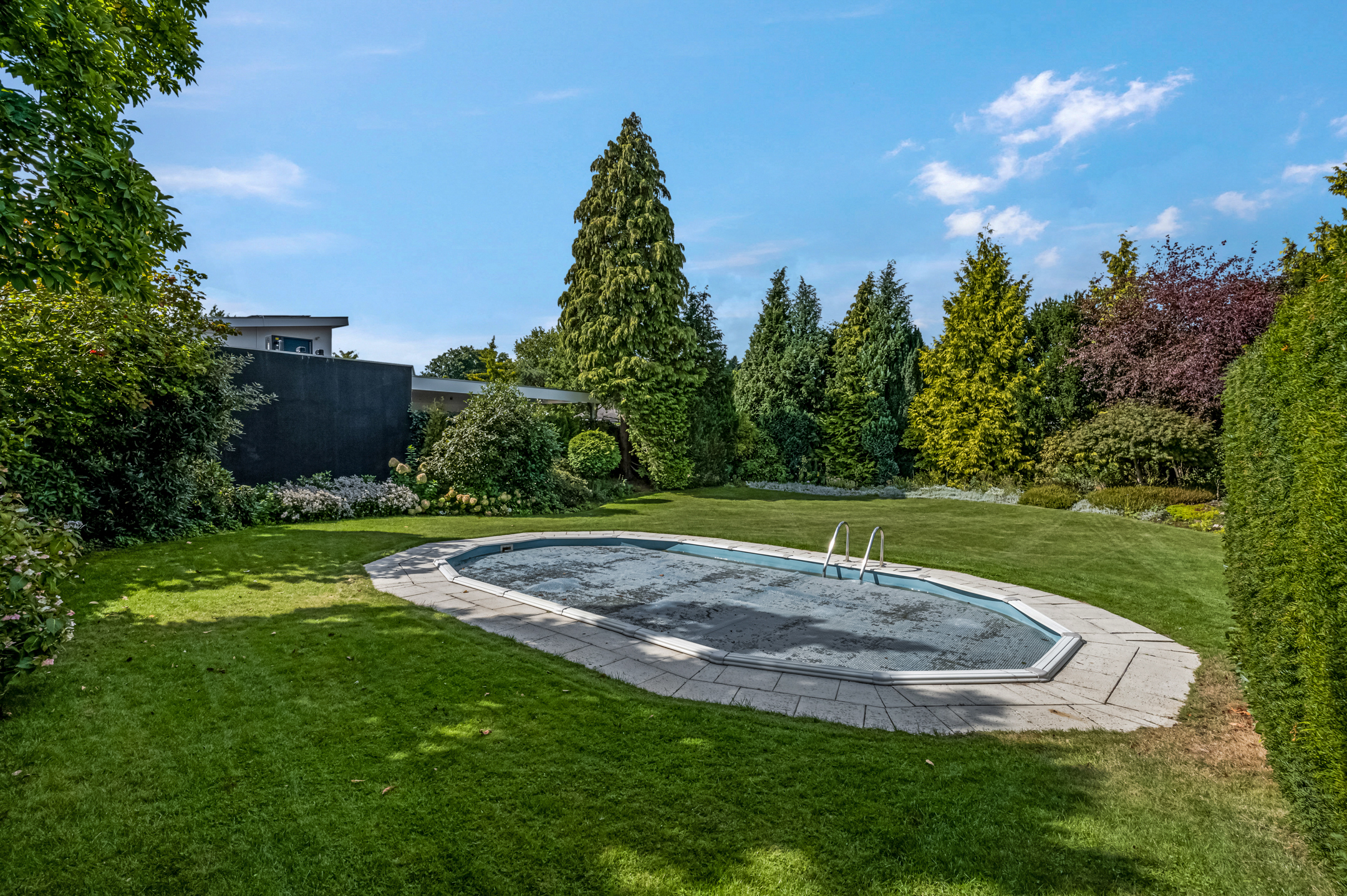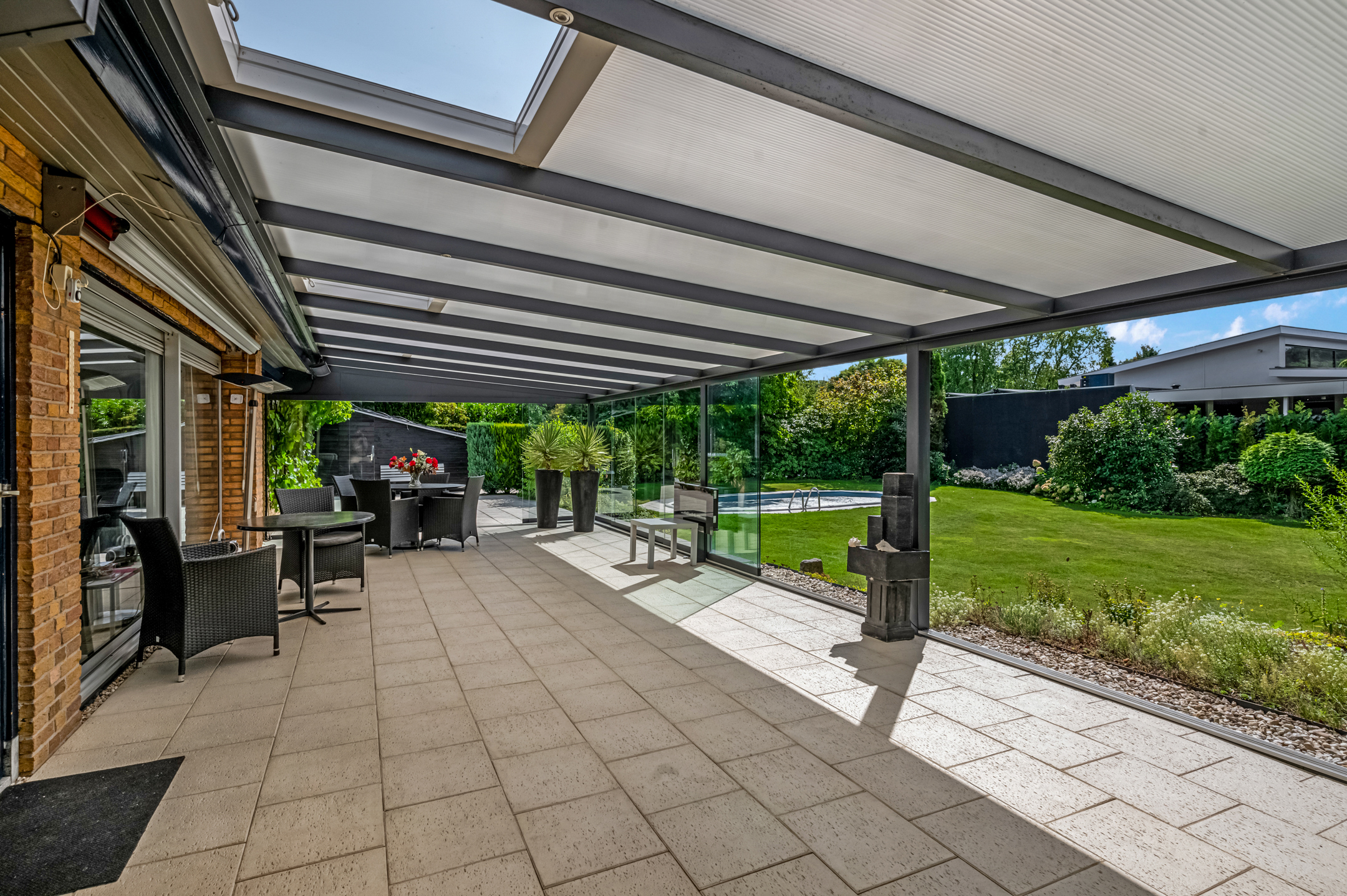 De tuin is een heerlijke plek. Dankzij de ligging op het zuidwesten vindt je altijd wel een plek in de zon. Aan de woning vast bevindt zich een fijne serre, waar je in alle seizoenen comfortabel kunt zitten met zicht op de tuin. Vanuit hier loop je via een paar tredes zo het royale grasveld op. Daar wacht de absolute eyecatcher: een ingebouwd zwembad. Een heerlijke plek om in de zomer af te koelen en dat echte vakantiegevoel te ervaren, gewoon in je eigen achtertuin. Aan de woning vind je nog een handige berging, voor bijvoorbeeld je seizoensspullen of andere tuin-/ en opbergspullen.
