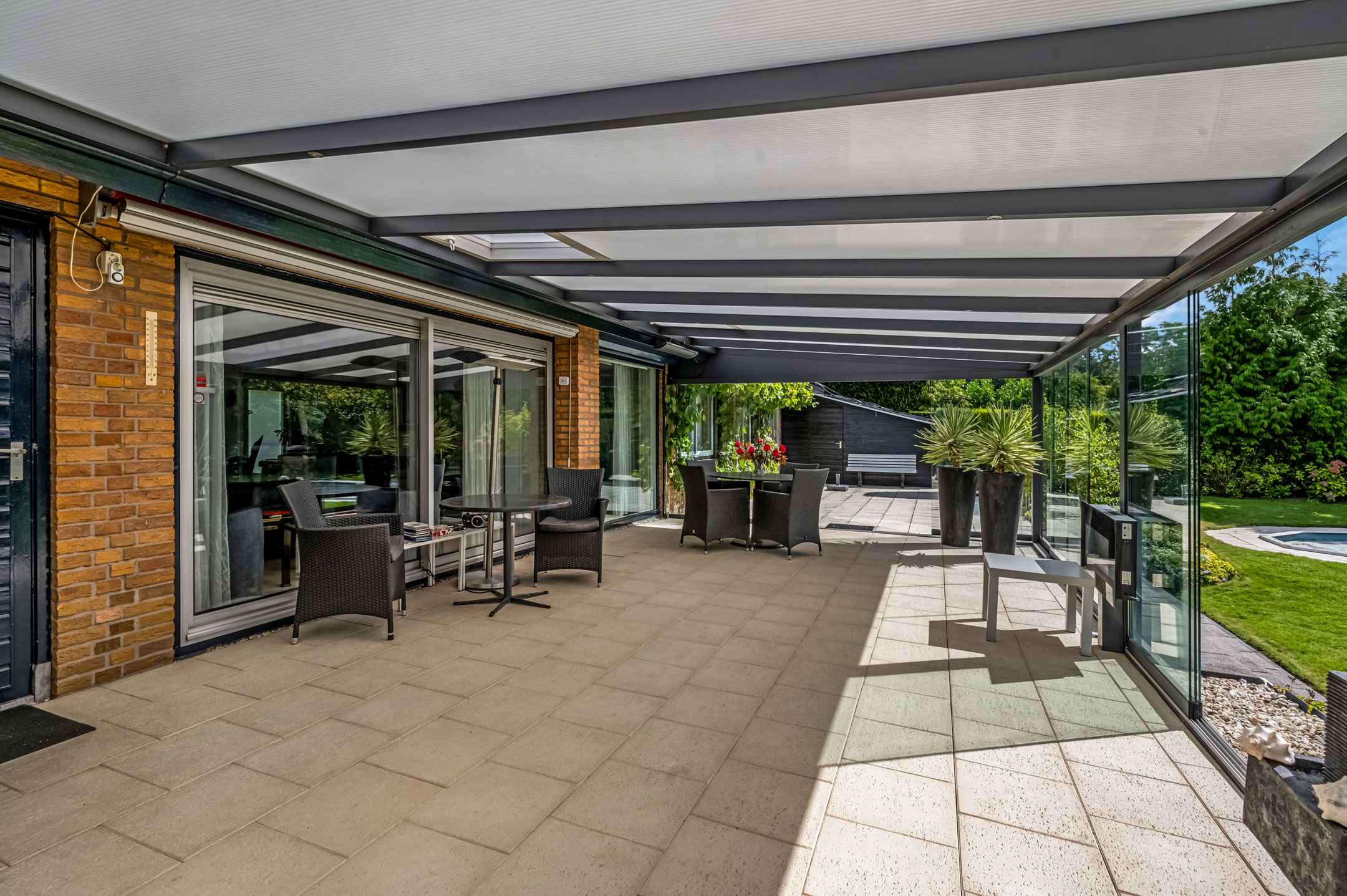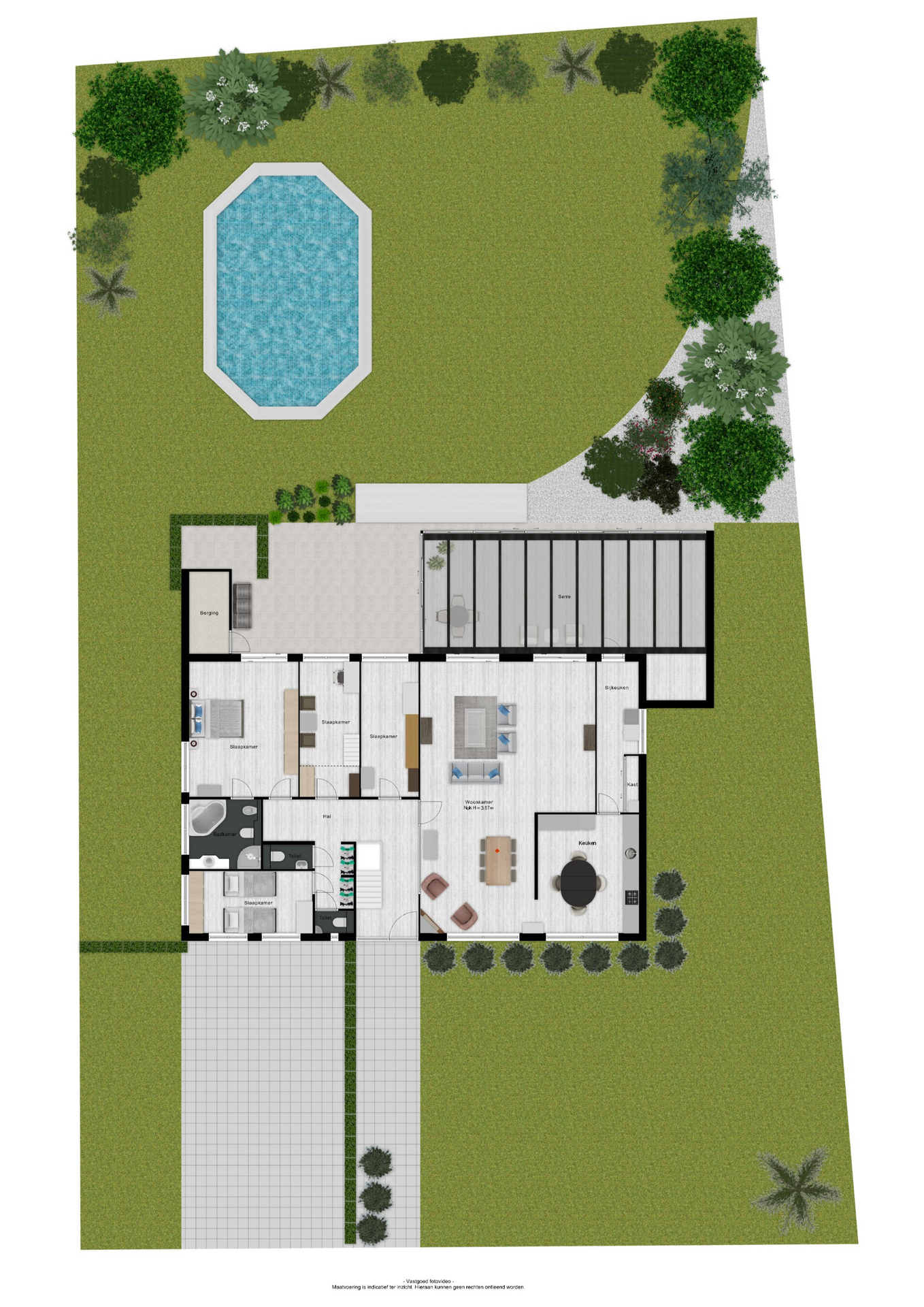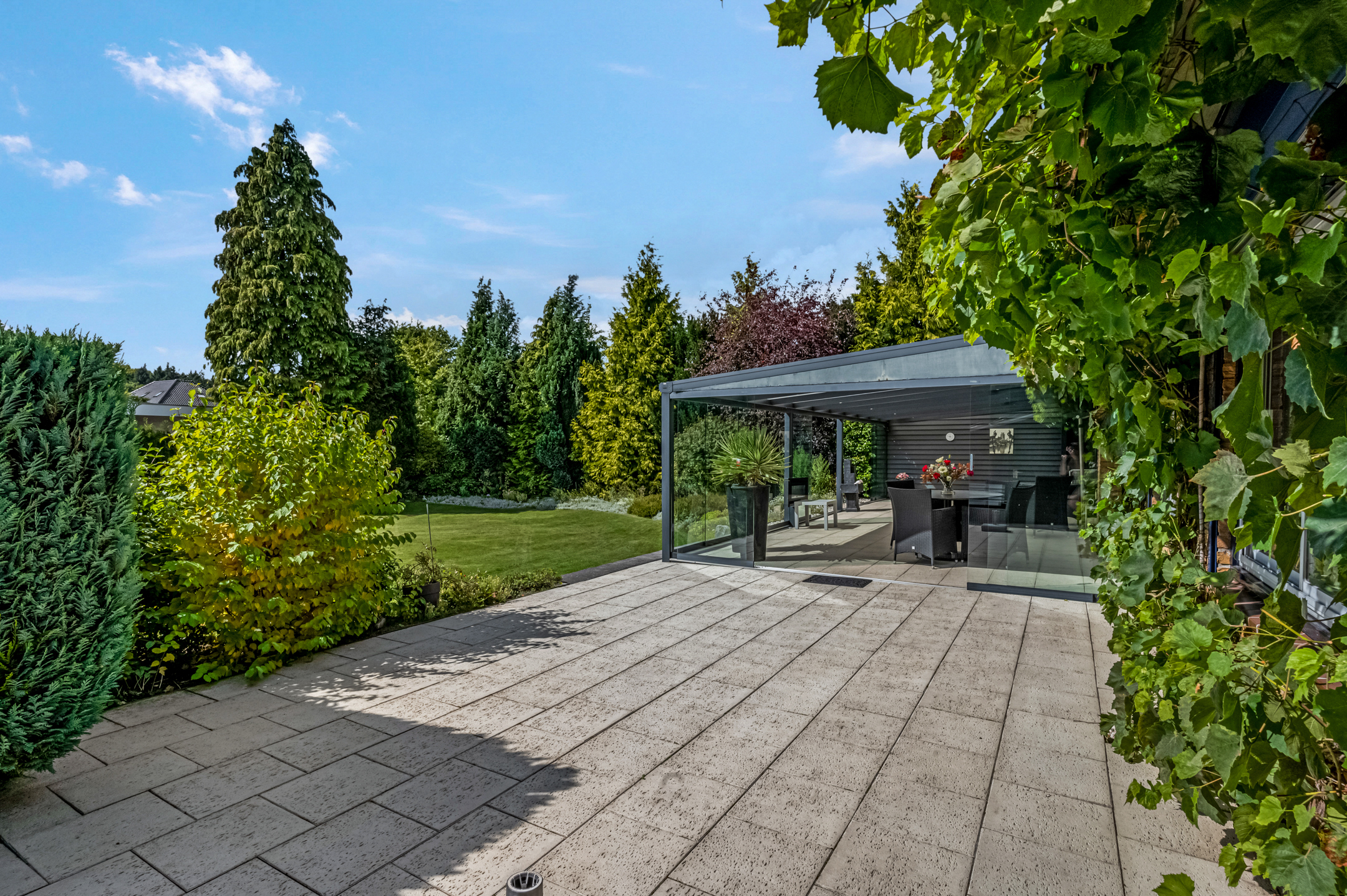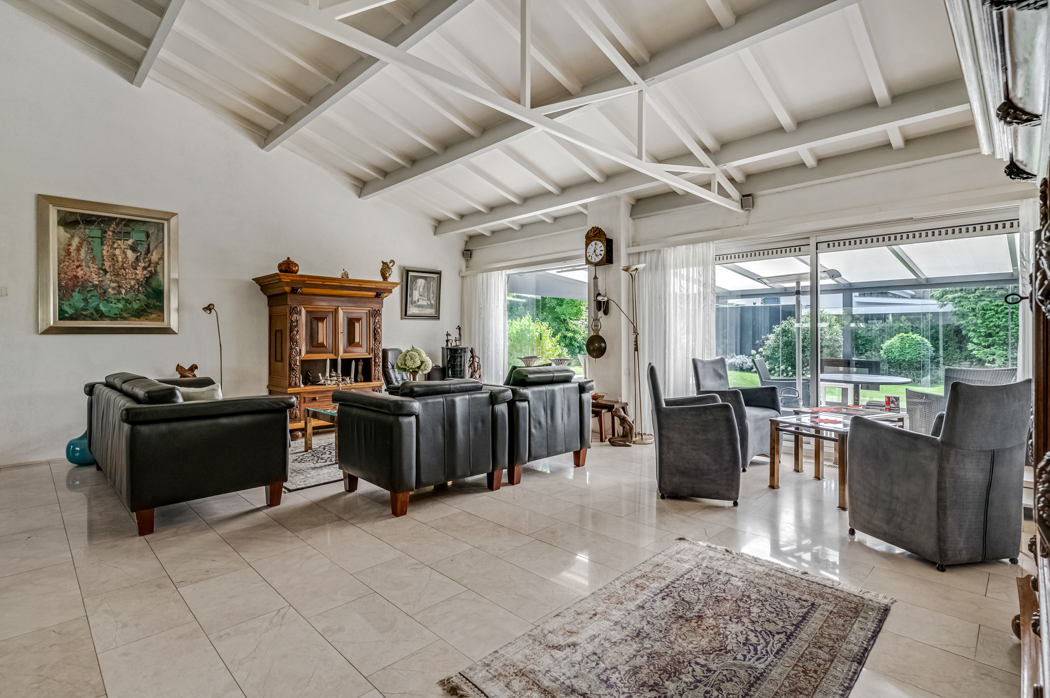 De tuin is een heerlijke plek. Dankzij de ligging op het zuidwesten vindt je altijd wel een plek in de zon. Aan de woning vast bevindt zich een fijne serre, waar je in alle seizoenen comfortabel kunt zitten met zicht op de tuin. Vanuit hier loop je via een paar tredes zo het royale grasveld op. Daar wacht de absolute eyecatcher: een ingebouwd zwembad. Een heerlijke plek om in de zomer af te koelen en dat echte vakantiegevoel te ervaren, gewoon in je eigen achtertuin. Aan de woning vind je nog een handige berging, voor bijvoorbeeld je seizoensspullen of andere tuin-/ en opbergspullen.