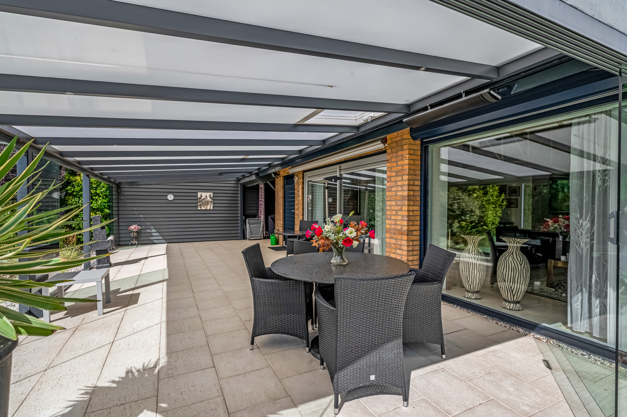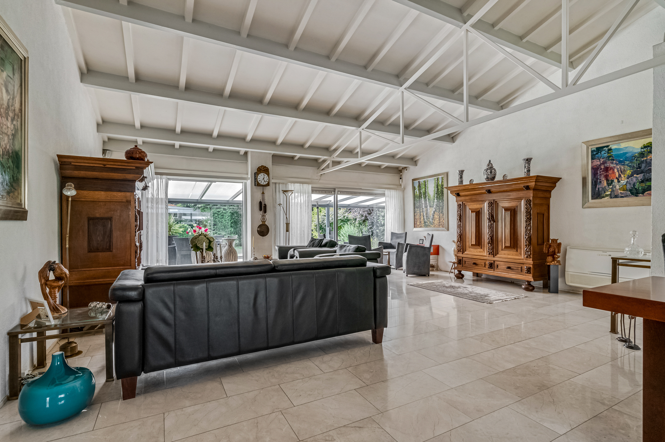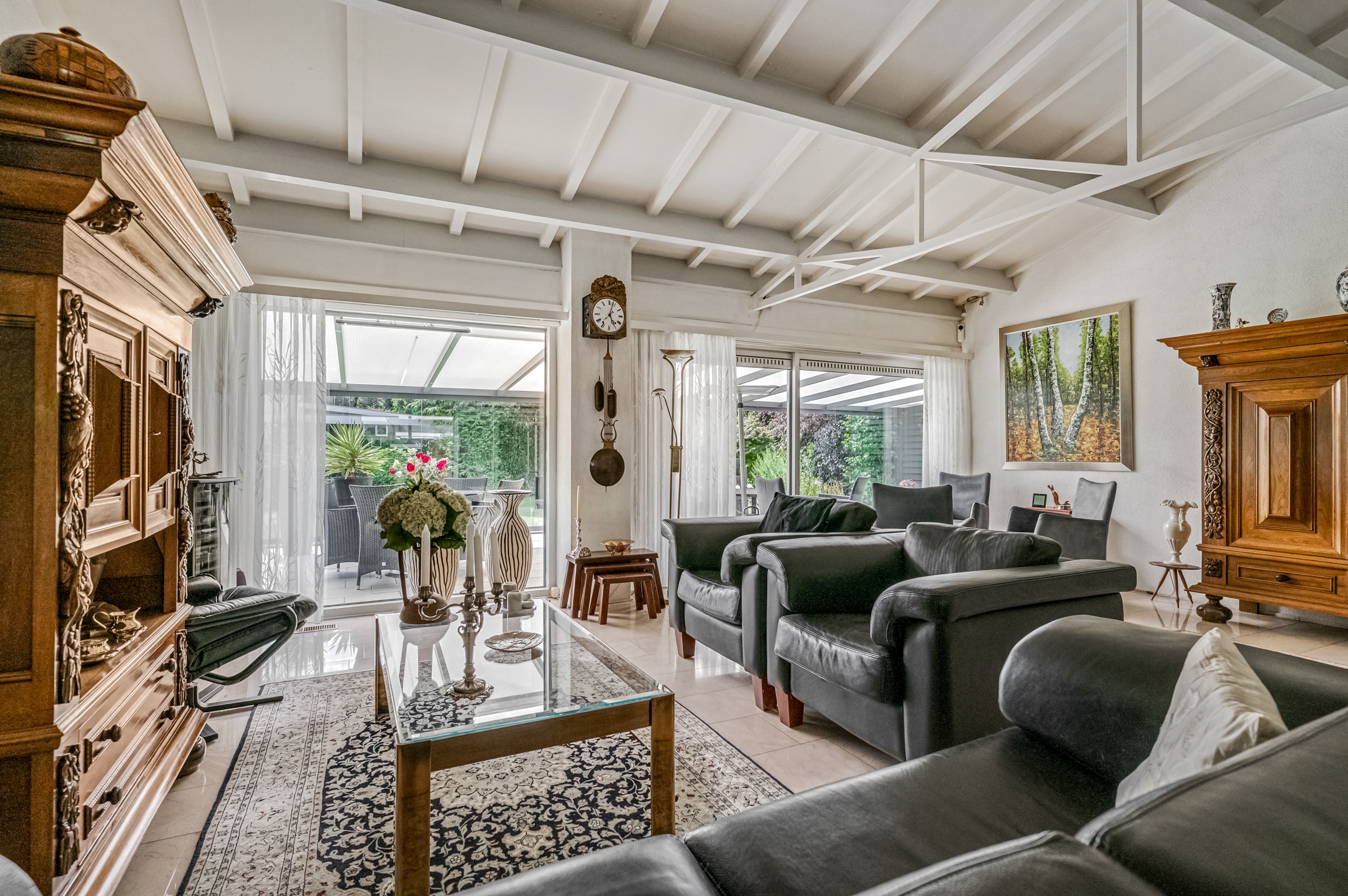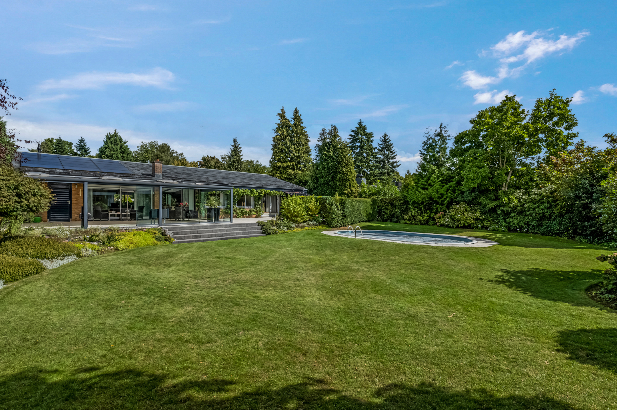 De tuin is een heerlijke plek. Dankzij de ligging op het zuidwesten vindt je altijd wel een plek in de zon. Aan de woning vast bevindt zich een fijne serre, waar je in alle seizoenen comfortabel kunt zitten met zicht op de tuin. Vanuit hier loop je via een paar tredes zo het royale grasveld op. Daar wacht de absolute eyecatcher: een ingebouwd zwembad. Een heerlijke plek om in de zomer af te koelen en dat echte vakantiegevoel te ervaren, gewoon in je eigen achtertuin. Aan de woning vind je nog een handige berging, voor bijvoorbeeld je seizoensspullen of andere tuin-/ en opbergspullen.