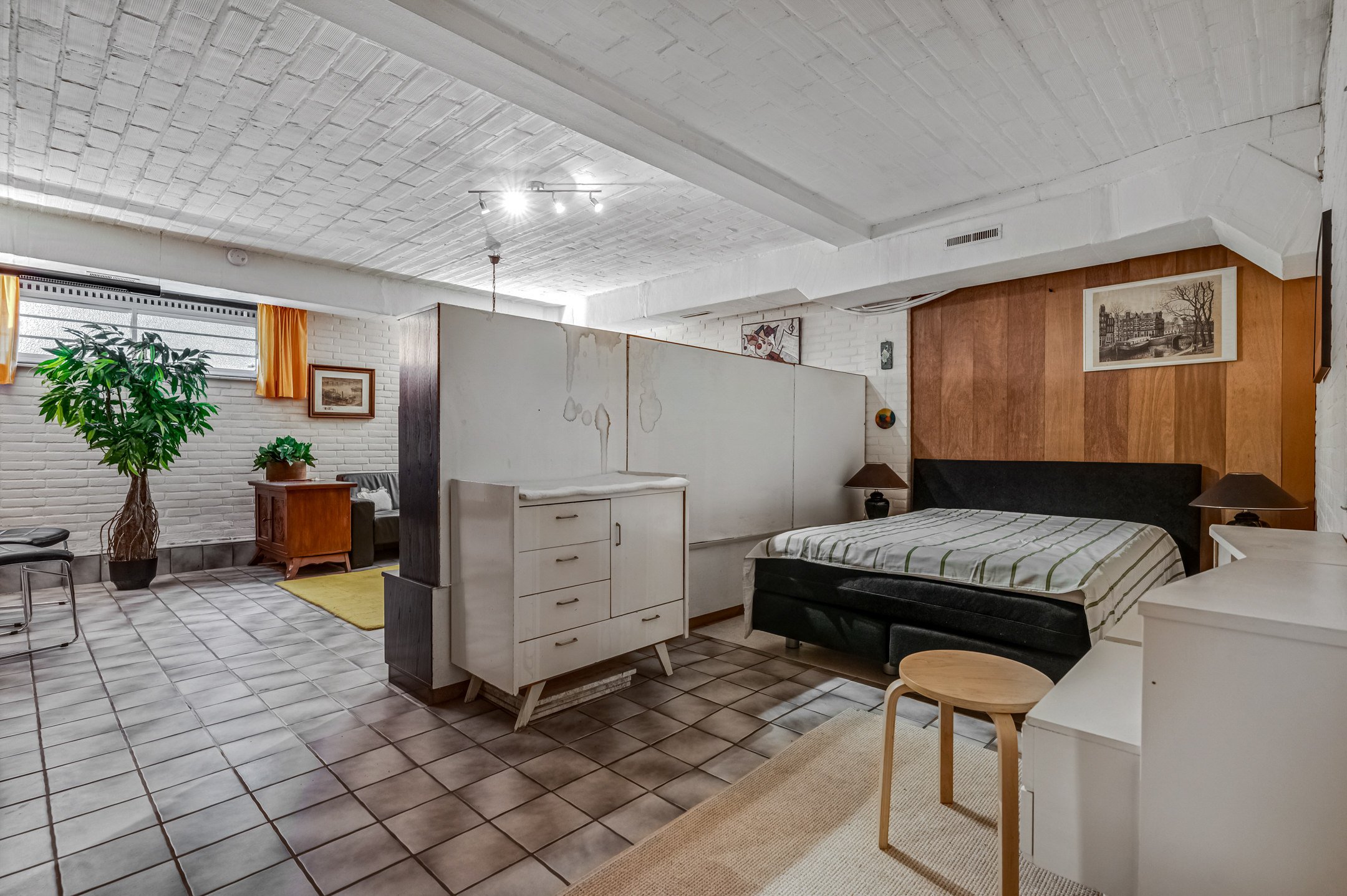 De kelder is veel meer dan alleen bergruimte, je vindt hier een complete extra woonlaag. In de kelder vind je twee kamers, waarvan één slaapkamer. De royale slaapkamer is voorzien van een slaap- en zitgedeelte. Ook vind je in deze kamer nog een extra badkamer, welke beschikt over een wastafelmeubel, ruime douche en toilet. De tweede kamer is ingericht met een sauna, ideaal om heerlijk te ontspannen. Daarnaast kan je van deze kamer ook een hobbyruimte, fitnessruimte of thuisbioscoop maken. Tot slot beschikt de kelder over een ruime garage met plek voor twee auto’s.