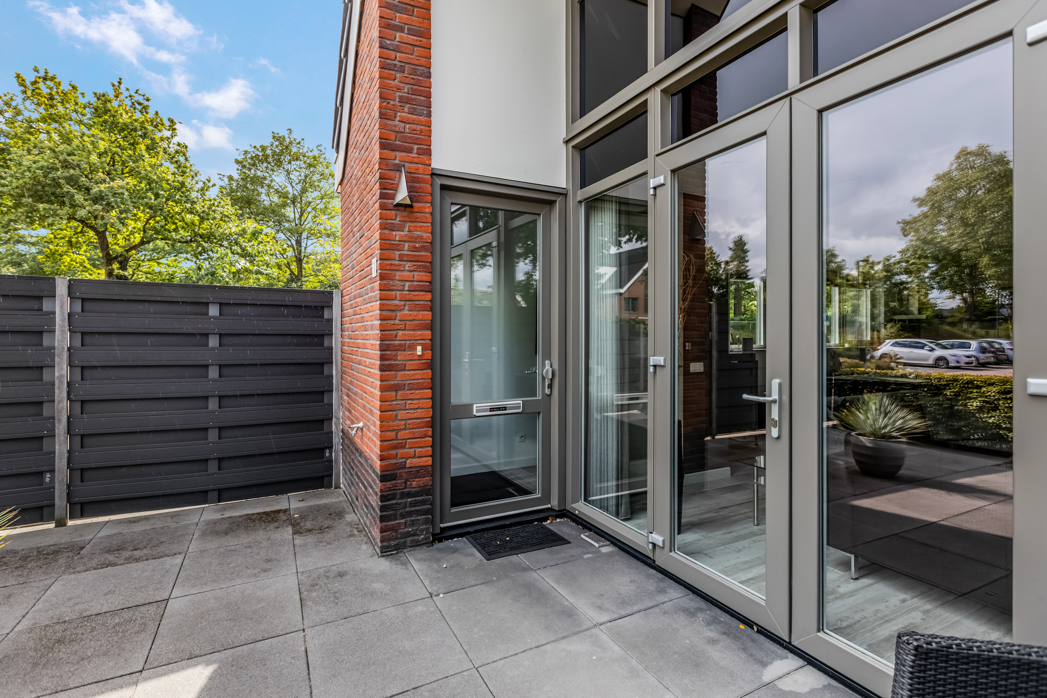 Via de voordeur en de openslaande deuren vanuit de woonkamer kom je in de tuin. In de, op het zuidoosten gelegen tuin, is voldoende ruimte voor een gezellige zithoek. Waar je tot in de late zomeruurtjes heerlijk kunt genieten van het buitenleven. Met een ligging op het zuidoosten kun je de hele dag door profiteren van de zon, ideaal voor een zonnig ontbijt of een ontspannen middag.