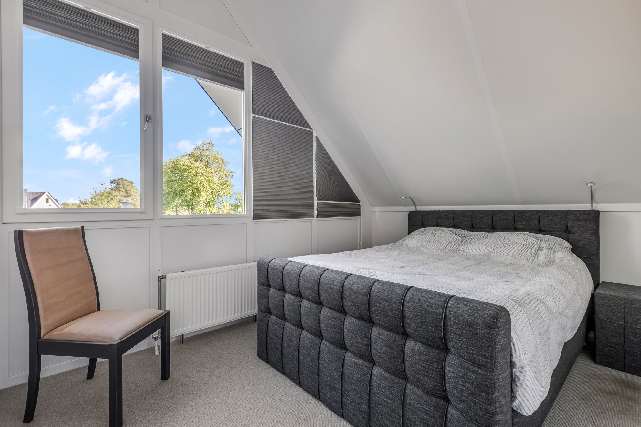Aan de voorzijde vind je de masterbedroom, welke is voorzien van een vliering. Een verrassende ruime opbergruimte die perfect is voor al je spullen die je netjes uit het zicht wilt houden. De tweede slaapkamer met dakkapel is aan de zijkant van de woning te vinden. Deze charmante ruimtes vallen meteen op door de grote raampartijen die heerlijk het daglicht binnenlaten, waardoor de kamer licht en ruim aanvoelt. Of je nu een extra slaapkamer nodig hebt of een sfeervolle werkplek aan huis wilt creëren, deze kamer biedt talloze mogelijkheden. In de slaapkamers en op de overloop ligt vloerbedekking.
