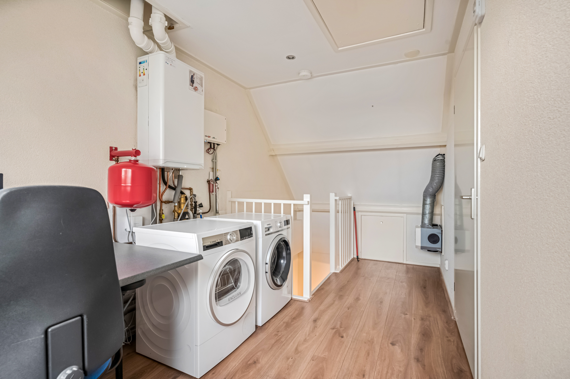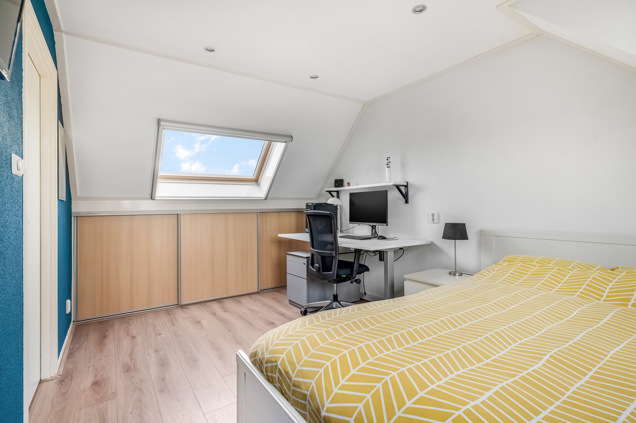De zolder verrast met een ruime vierde slaapkamer, voorzien van een kunststof dakkapel aan de achterzijde en een Velux dakraam aan de voorzijde. De ruimte is keurig afgewerkt met laminaatvloer en spachtelputz. Achter de knieschotten vind je handige bergruimte en op de voorzolder de aansluitingen voor de wasmachine en droger, de CV-ketel en de omvormer van de zonnepanelen.