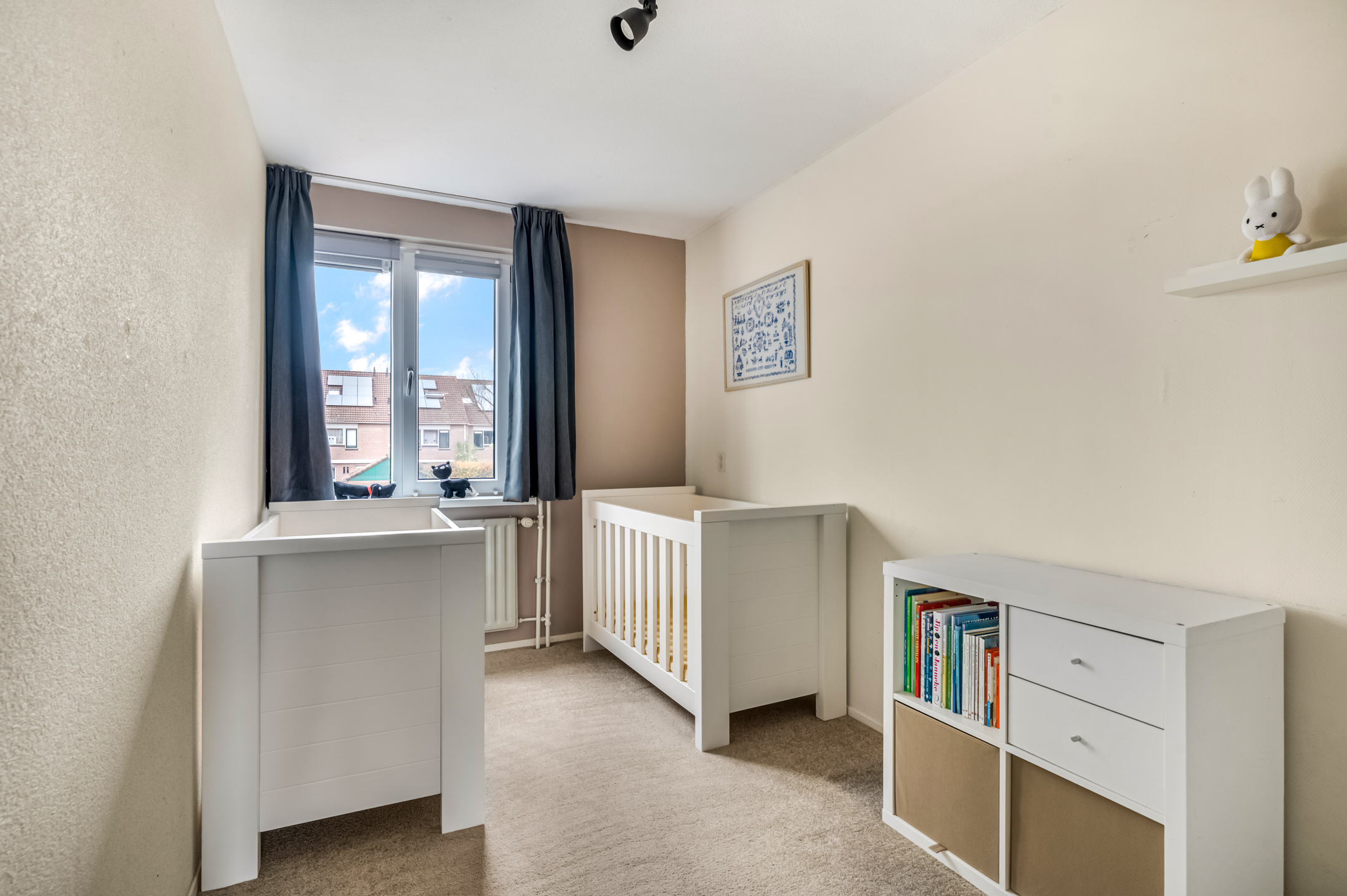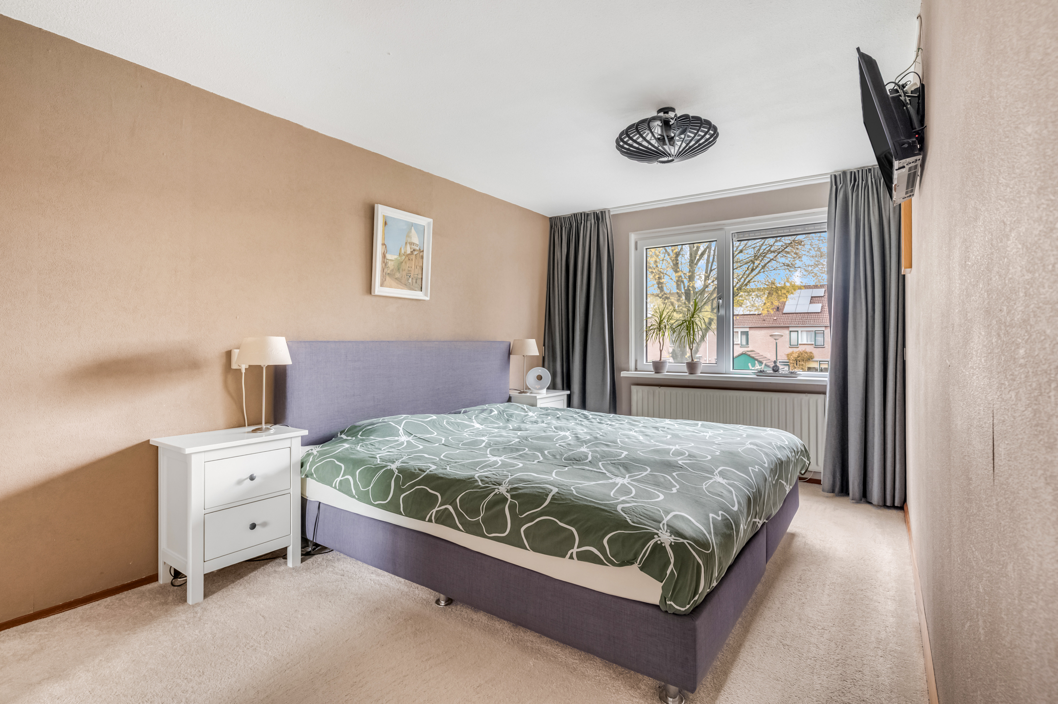 Op de eerste verdieping bevinden zich drie volwaardige slaapkamers, allemaal voorzien van kunststof kozijnen (2022) met horren bij de te openen ramen. De kamers zijn licht en praktisch ingedeeld, ideaal te gebruiken als slaap, werk- of hobbykamer. De badkamer is modern ingericht, met een inloopdouche, ligbad, designradiator en stijlvol houten wastafelmeubel. Ook is de badkamer voorzien van een Velux dakraam voor extra licht en natuurlijke ventilatie. De verdieping is voorzien van vloerbedekking.