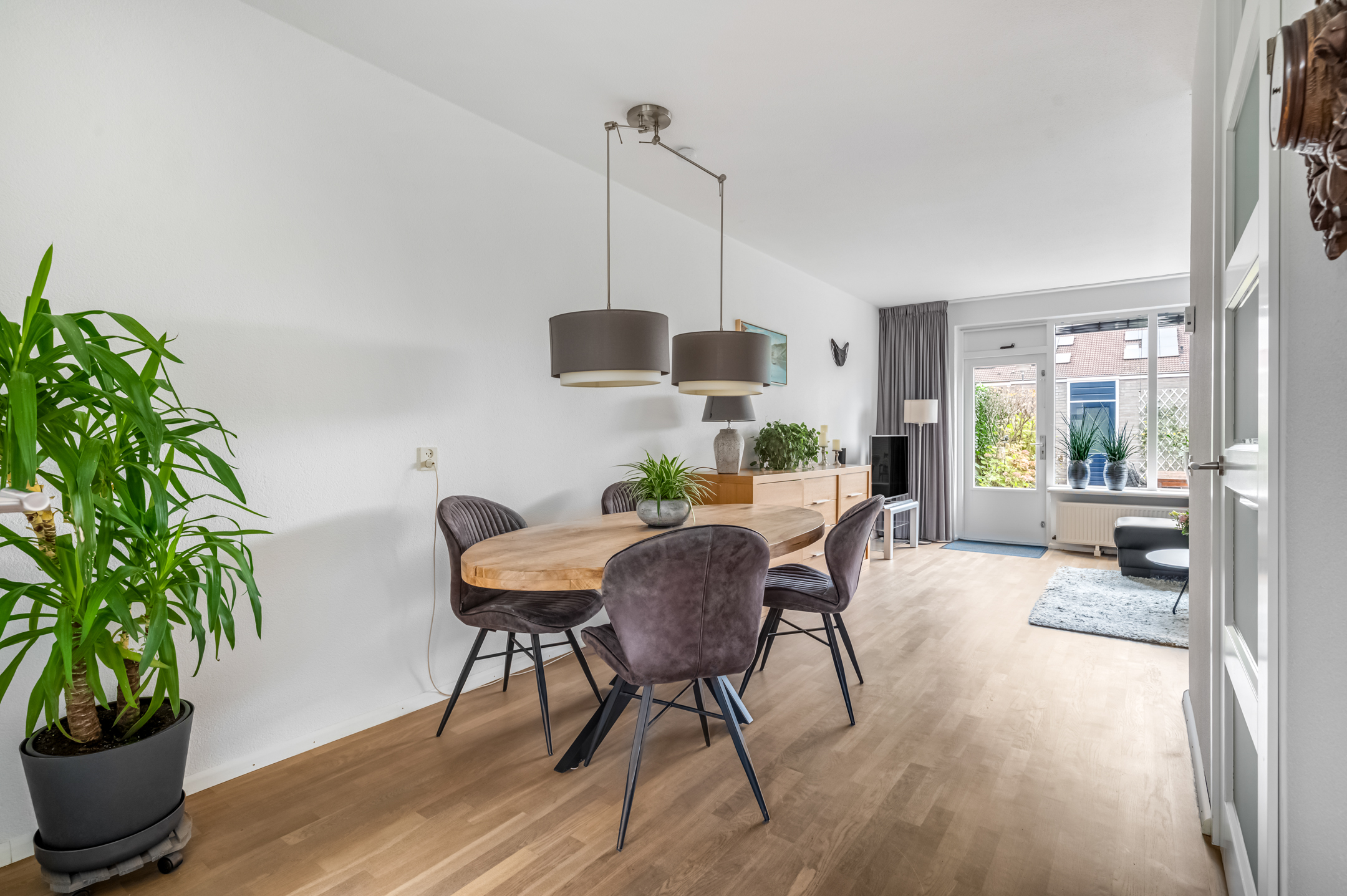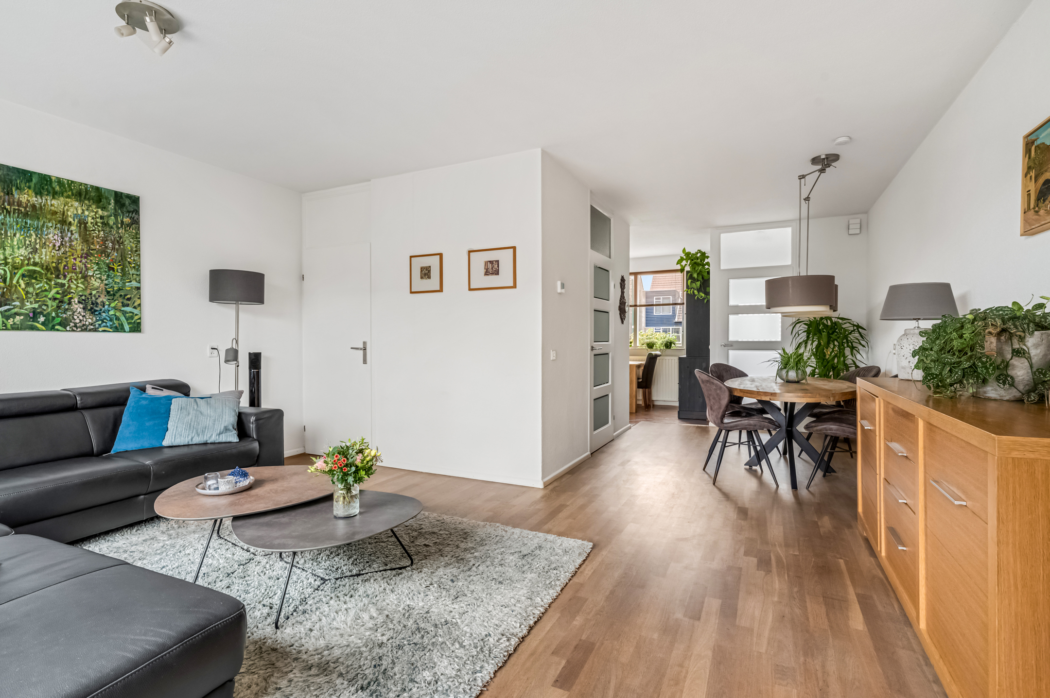 Bij aankomst valt direct de keurige voortuin en de prettige ligging aan de waterpartij op, wat zorgt voor rust en een ruimtelijk gevoel. Via de entree met meterkast en garderobe, stap je de lichte en gezellige woonkamer in. Deze is voorzien van een royaal zitgedeelte, voorzien van praktische trapkast en loopdeur naar de tuin. De grote raampartijen zorgen voor een fijne lichtinval en door de massieve houten vloer ervaar je een warme sfeer.
