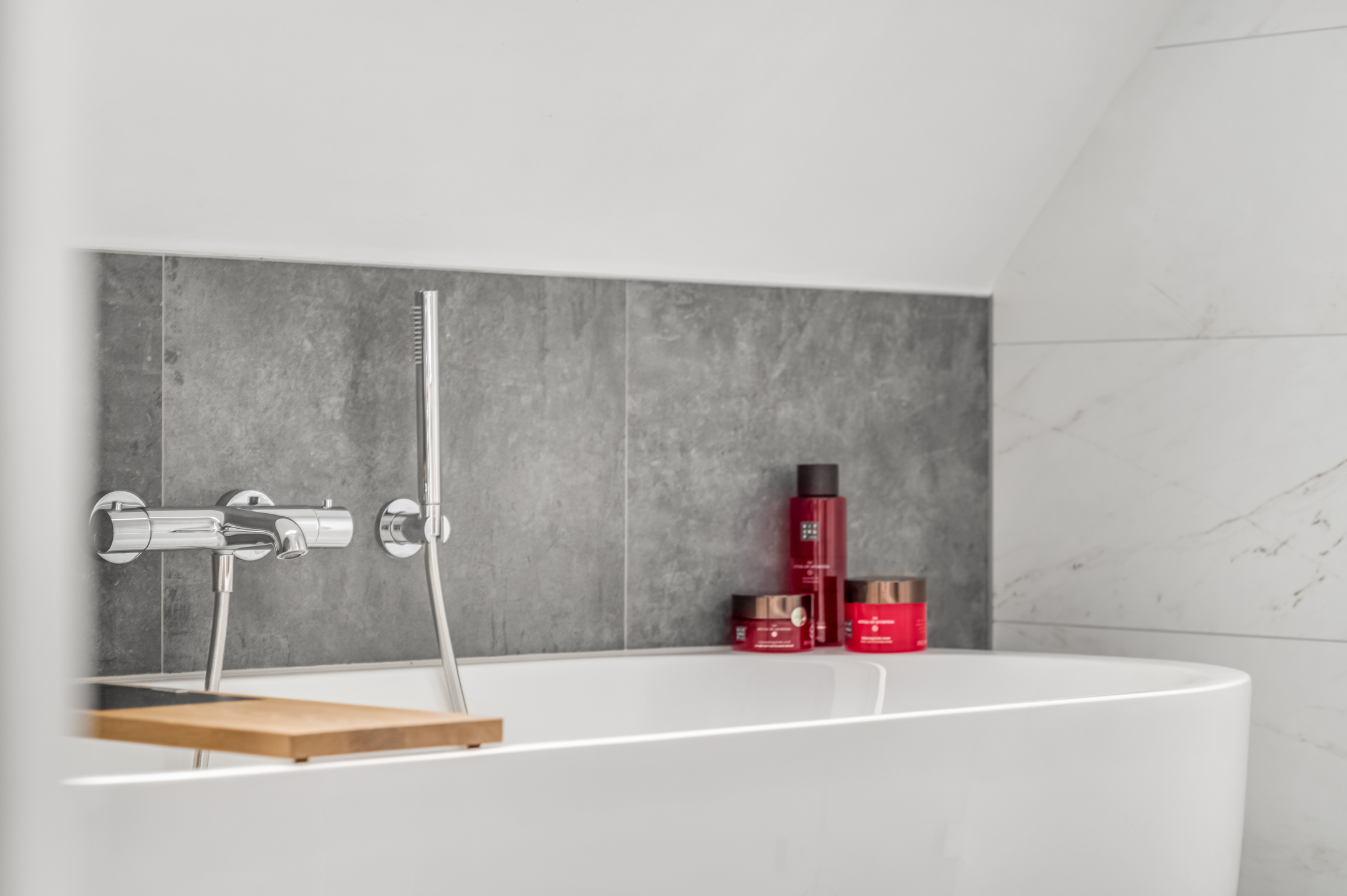 - Badkamer voorzieningen Ligbad, toilet, douche, dubbele wastafel