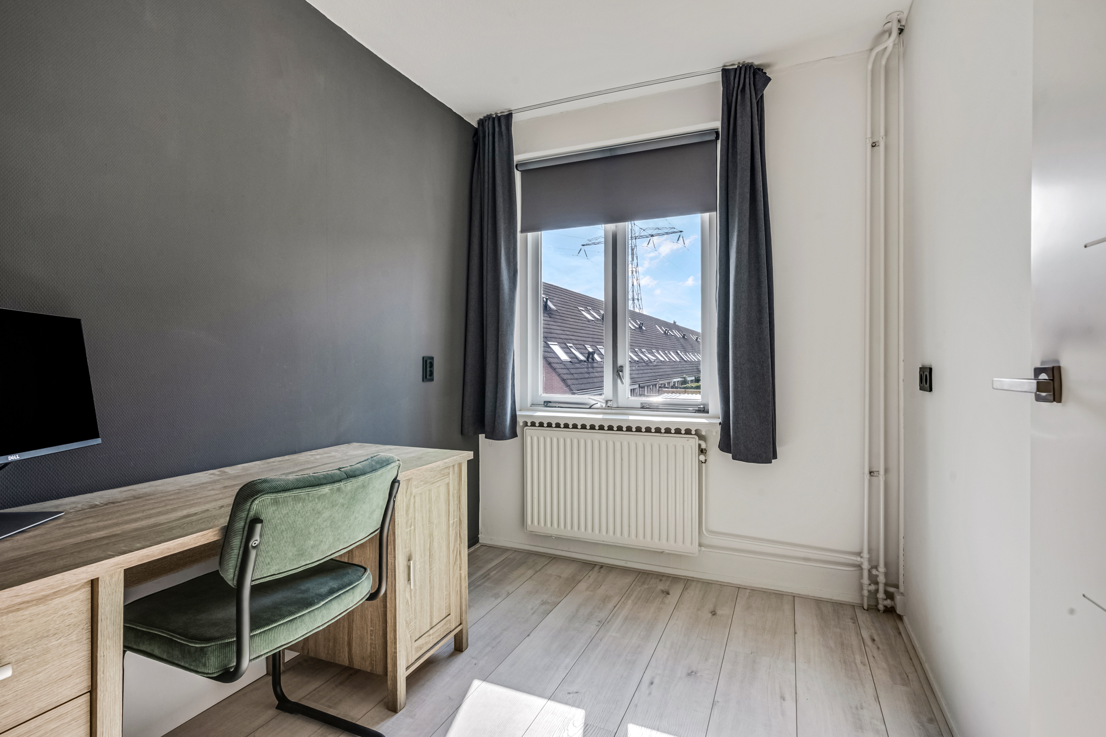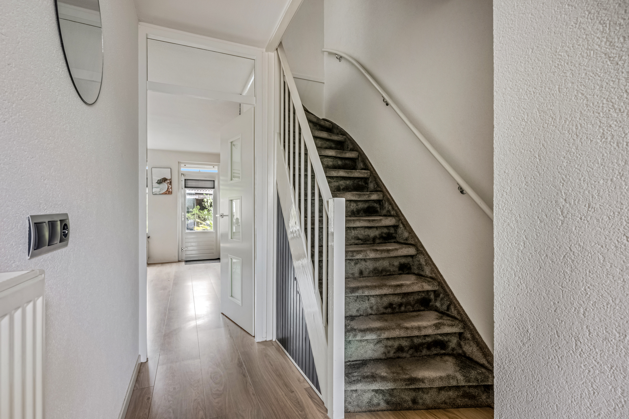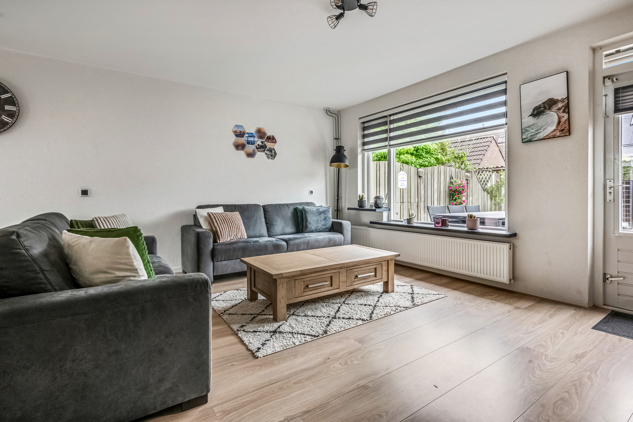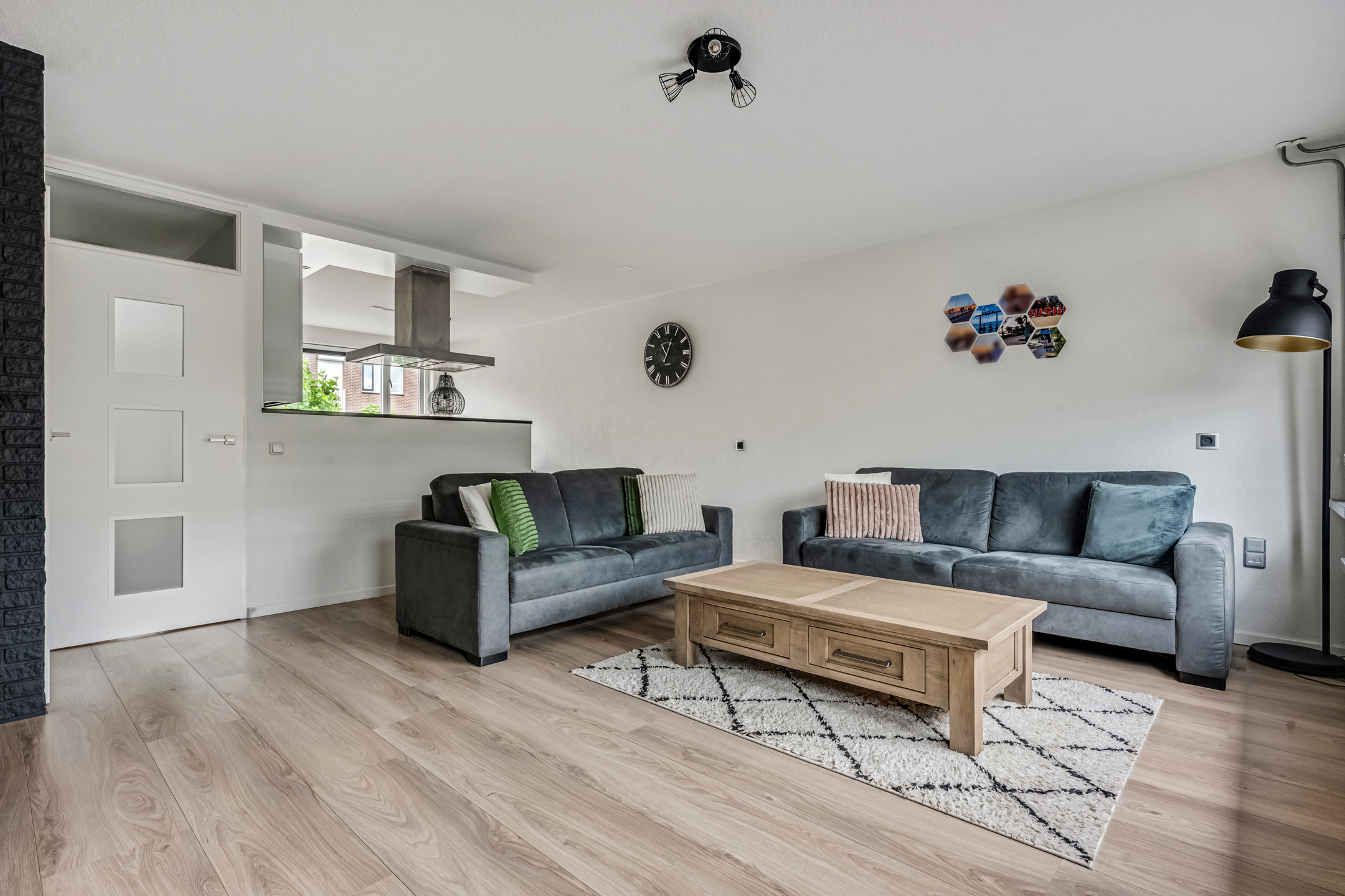 De woonkamer voelt direct ruim en licht aan, dankzij de grote raampartijen aan zowel de voor- als achterzijde. Er is voldoende plek voor een comfortabele zithoek en eventueel een speelhoek voor de kinderen. De praktische trapkast biedt extra opbergruimte, ideaal voor spullen die je snel bij de hand wilt hebben. Via de loopdeur aan de achterzijde heb je direct toegang tot de achtertuin.