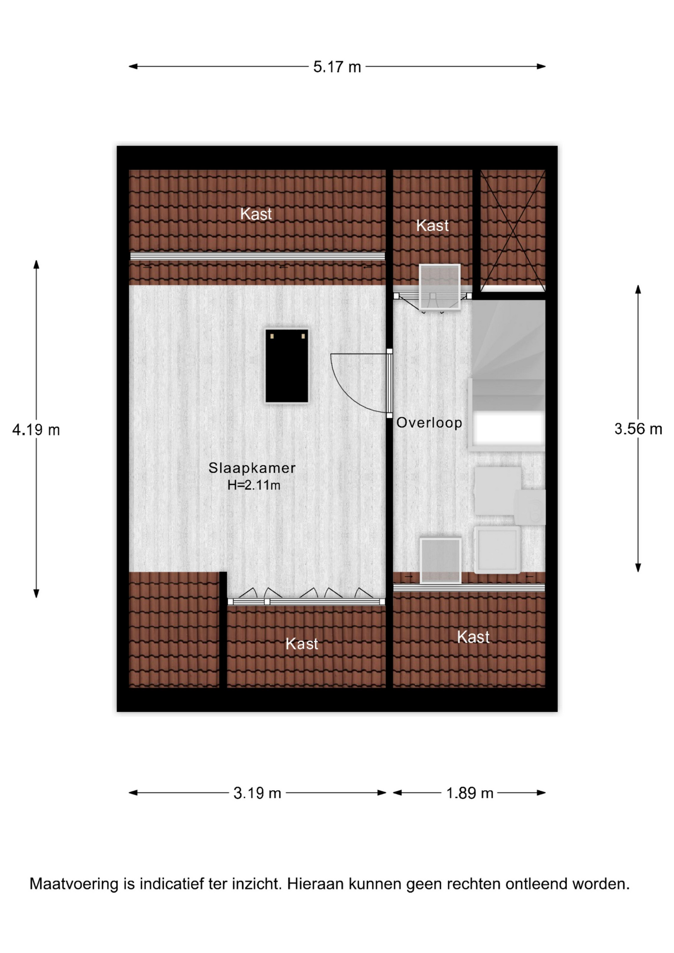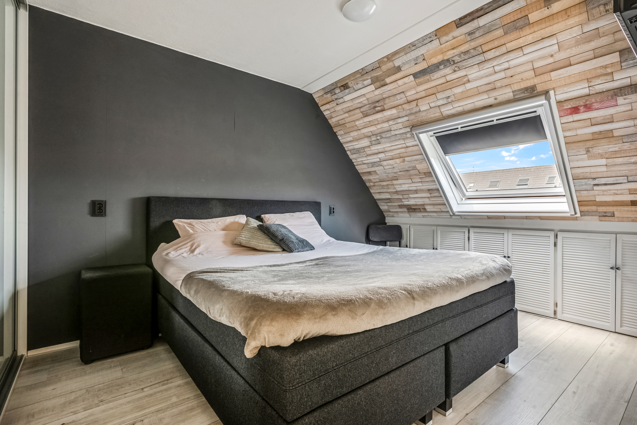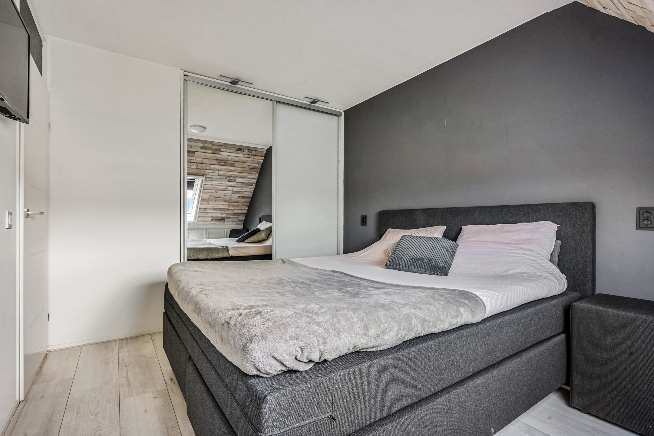 Via de vaste trap bereiken we de voorzolder van de tweede verdieping. Hier bevindt zich een berging met de CV-ketel en de aansluitingen voor de wasmachine en droger. Daarnaast vind je hier slaapkamer nummer vier welke is voorzien van twee grote dakramen en opbergruimte achter de knieschotten.